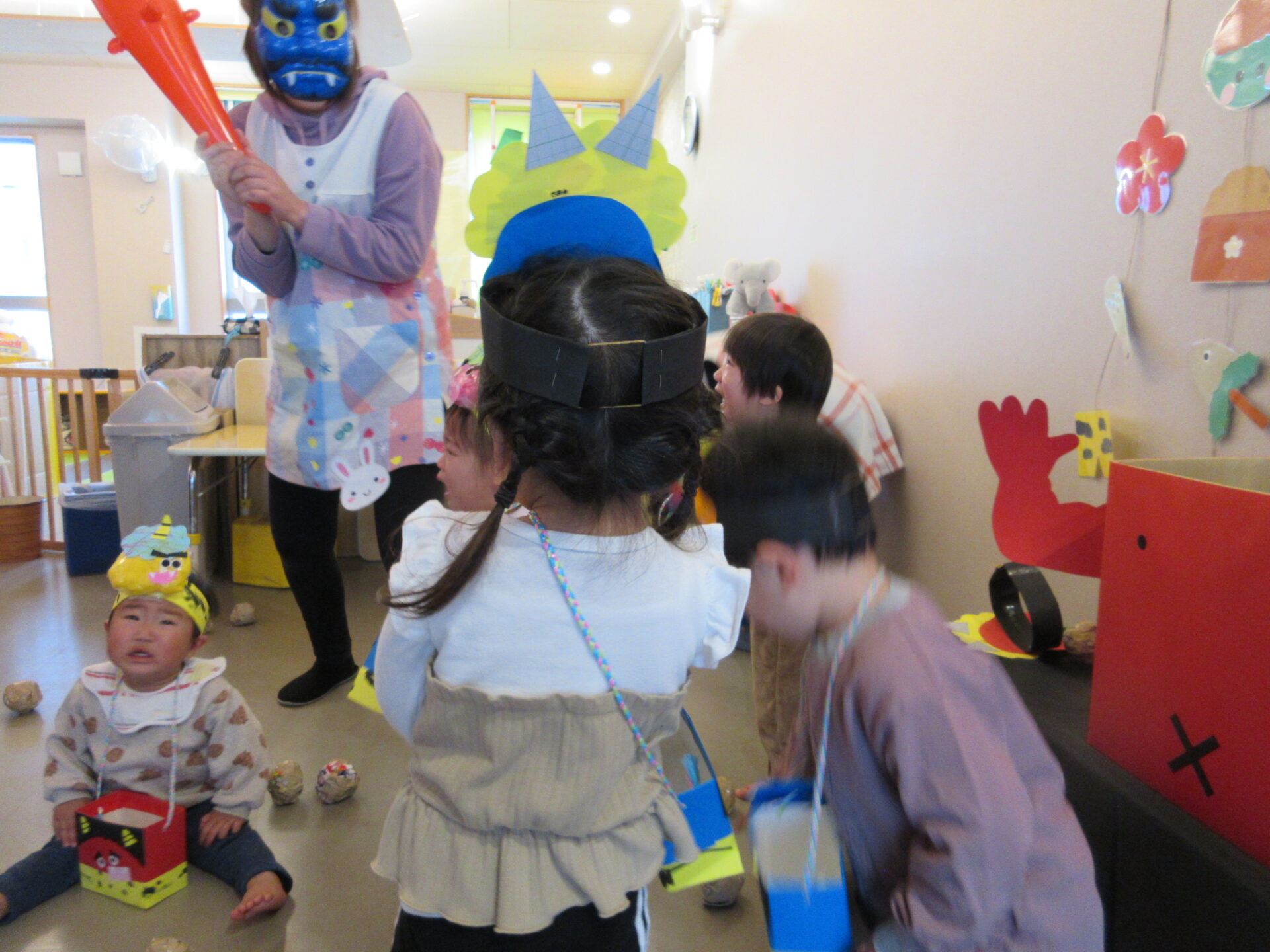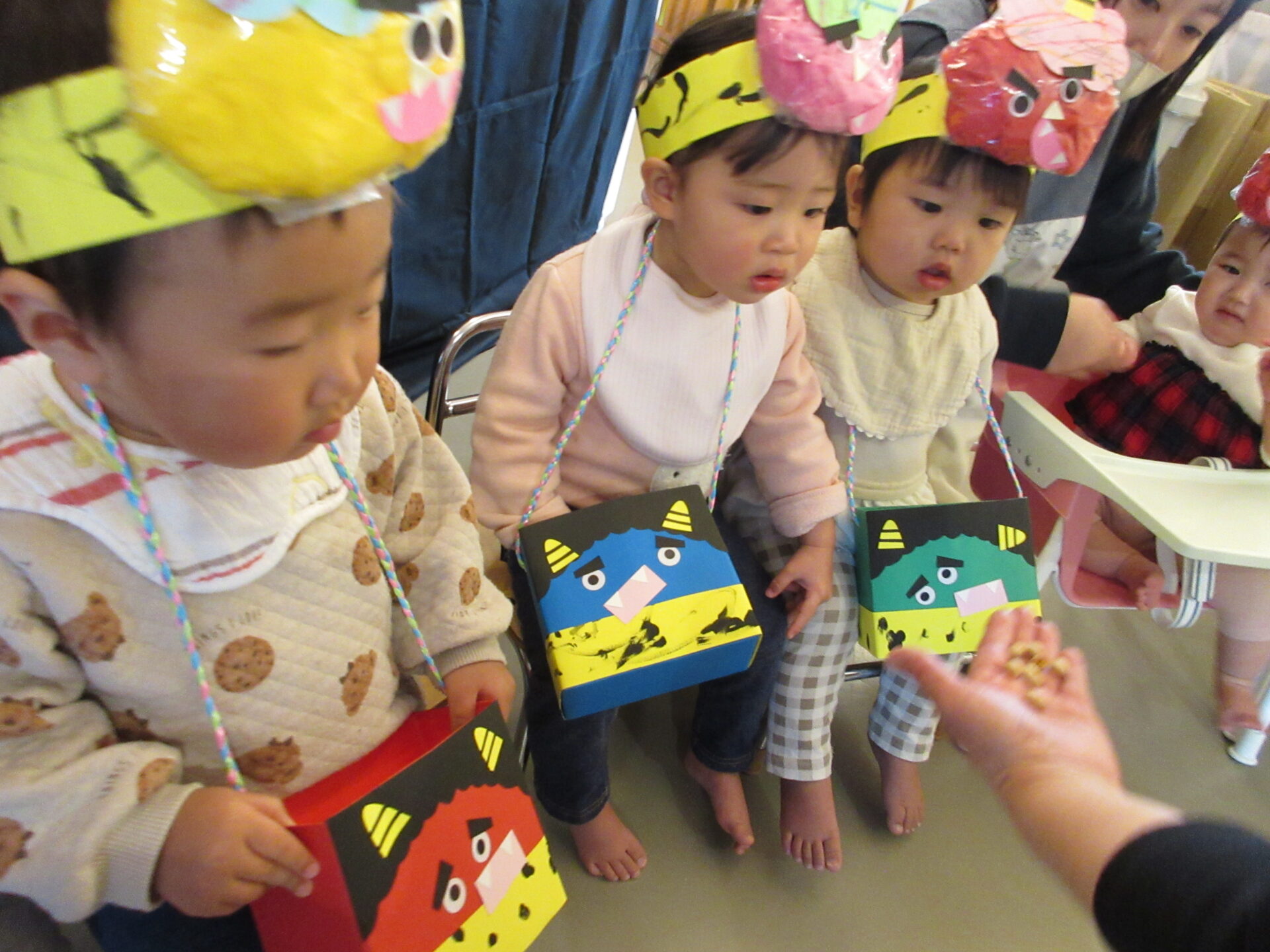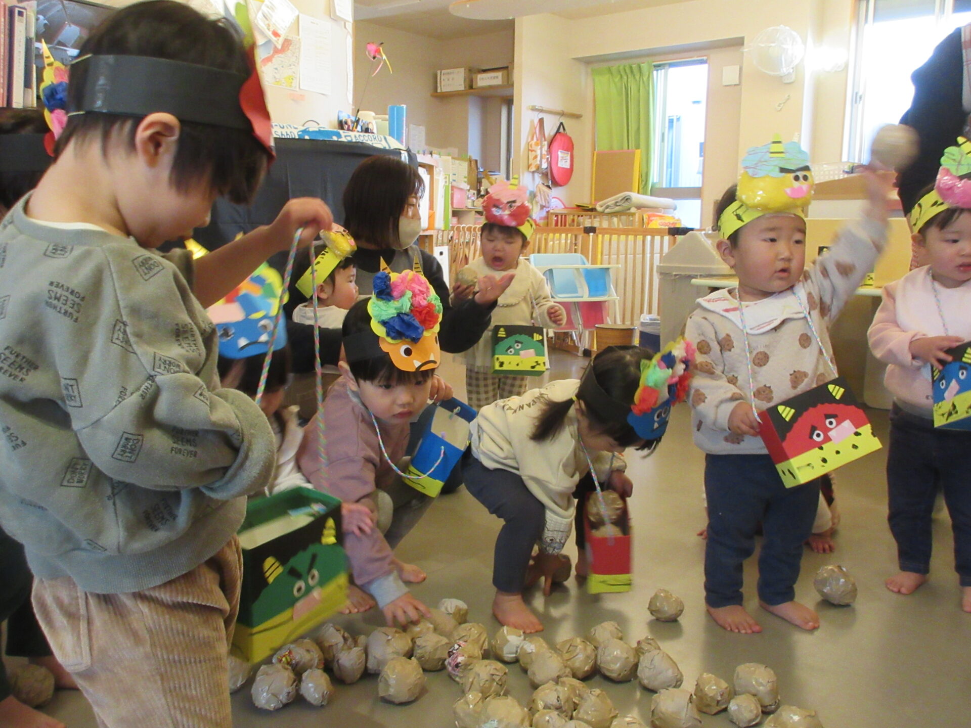 暦の関係で例年よりも1日早い節分でしたが、園では月曜日の3日に豆まきをしました。
