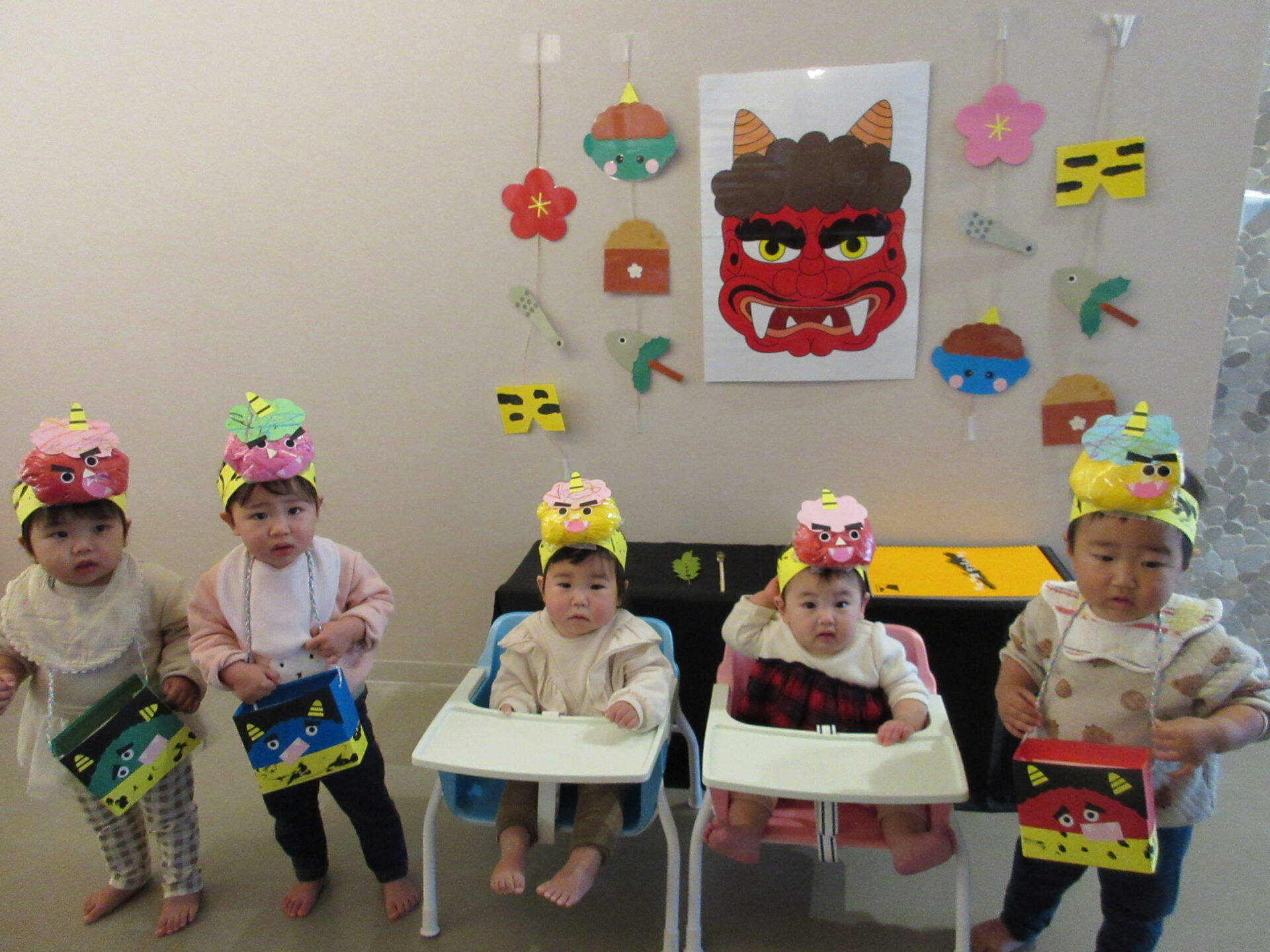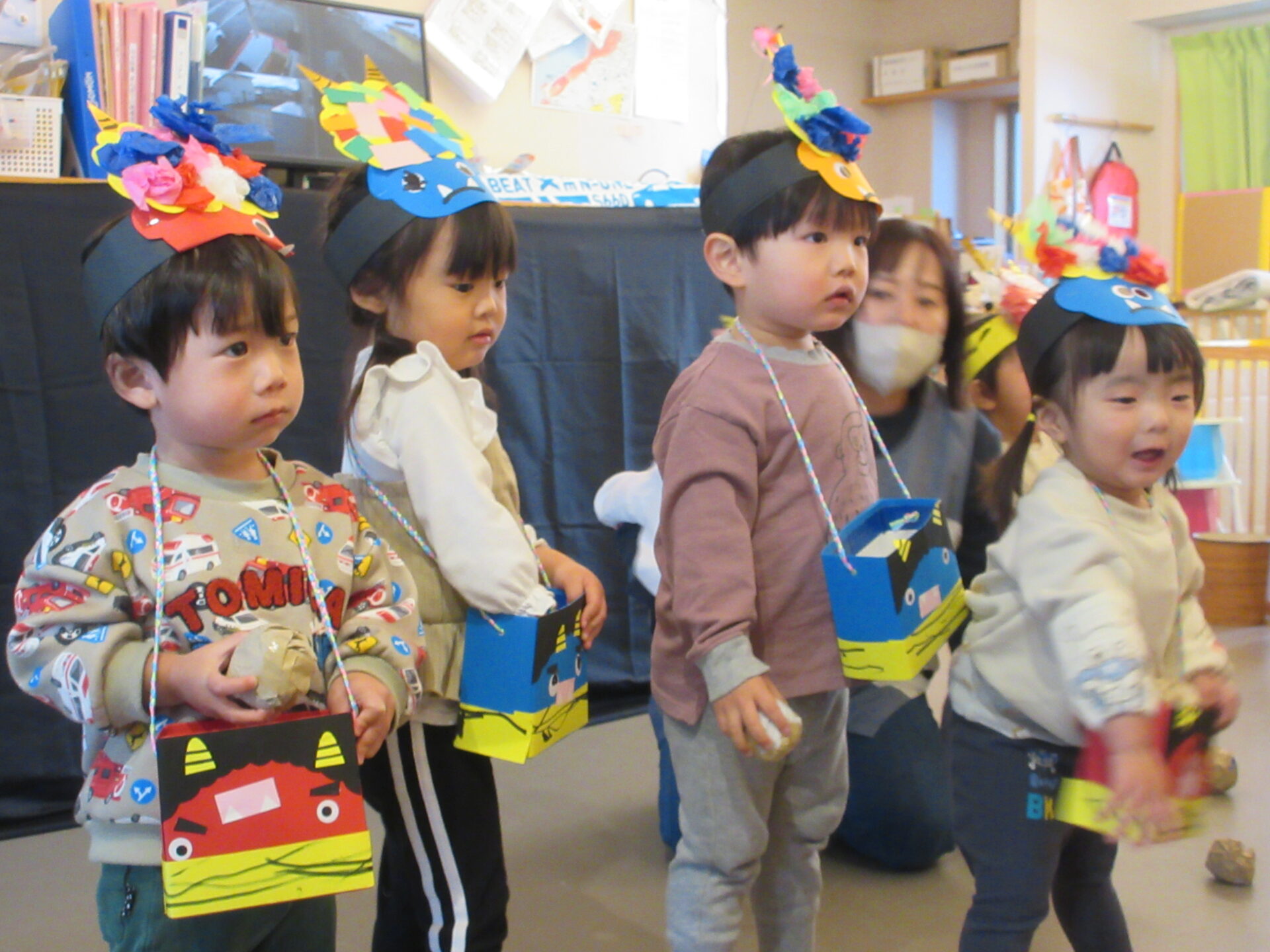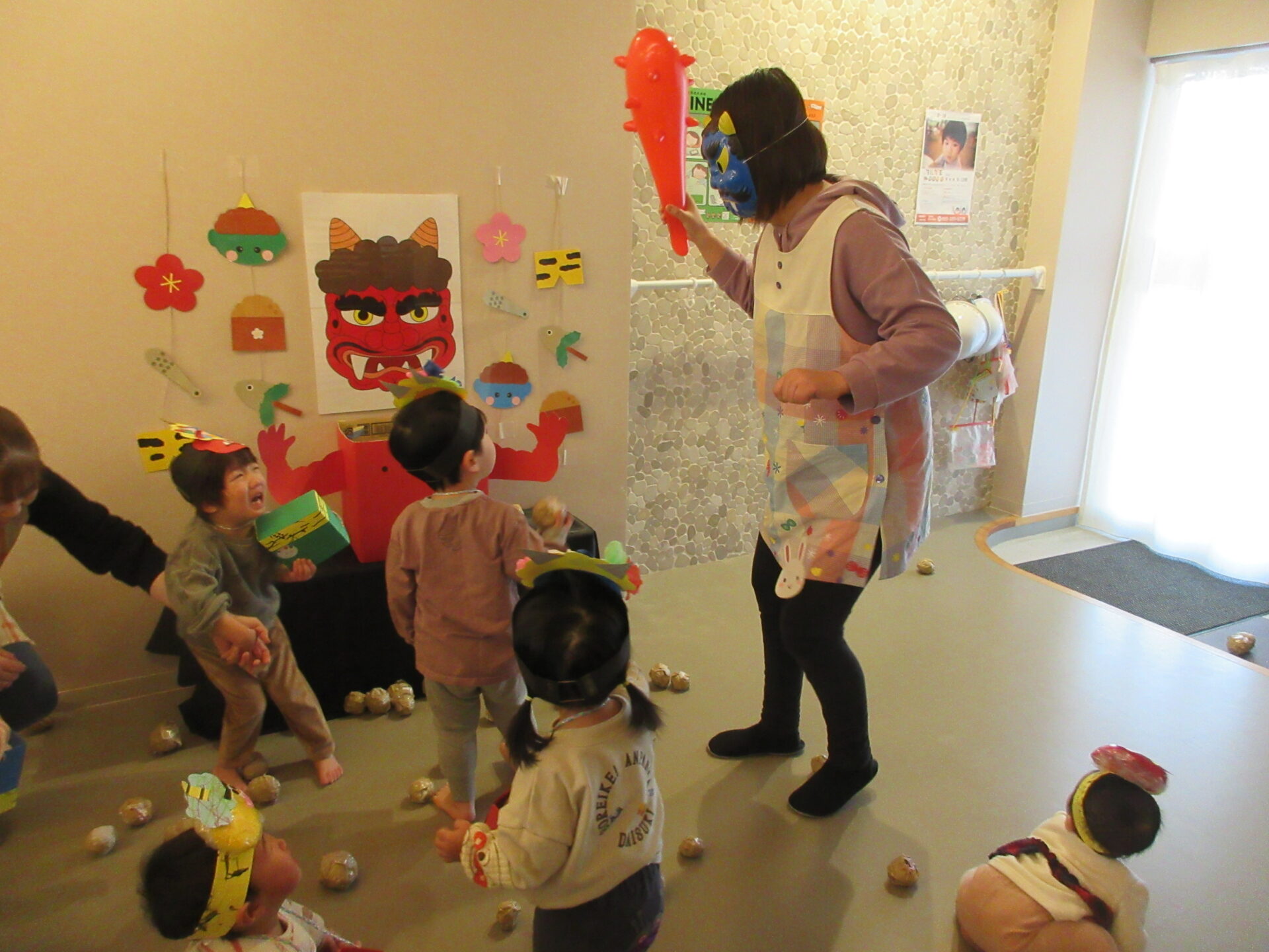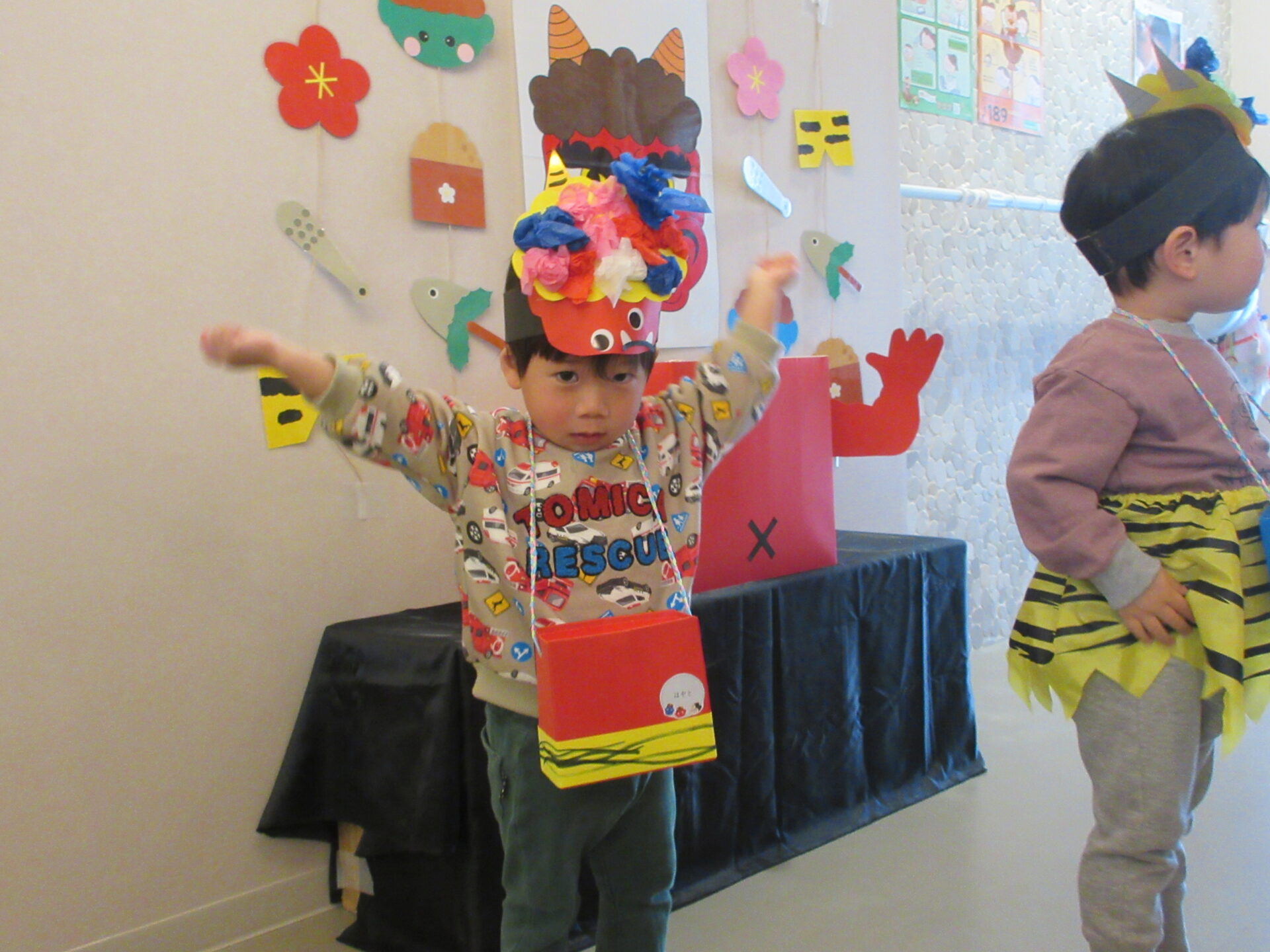 暦の関係で例年よりも1日早い節分でしたが、園では月曜日の3日に豆まきをしました。