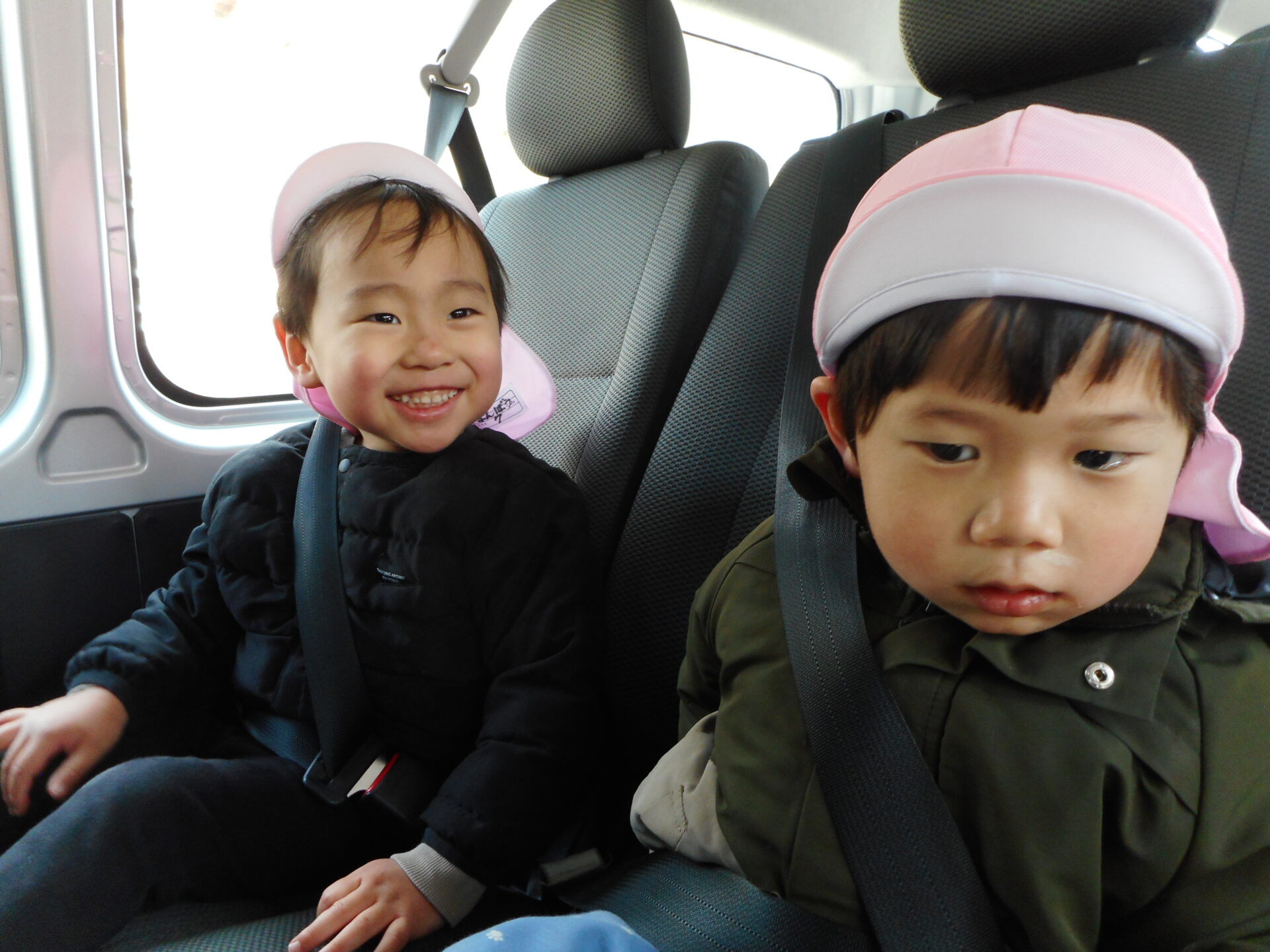 いつもと違う乗り物に、ドキドキしている子や笑顔いっぱいの子と反応はいろいろでした。