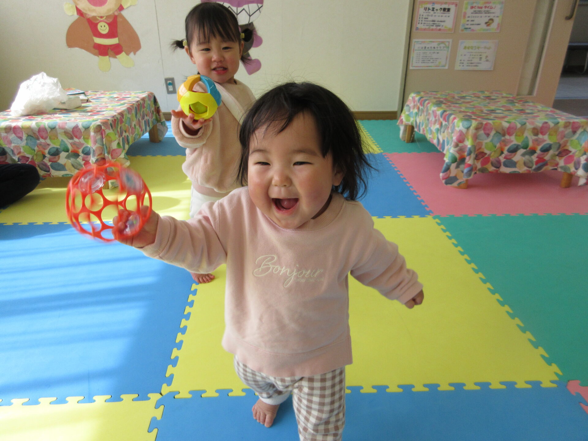 保育園にはない玩具に大喜びで夢中で遊んでいました。