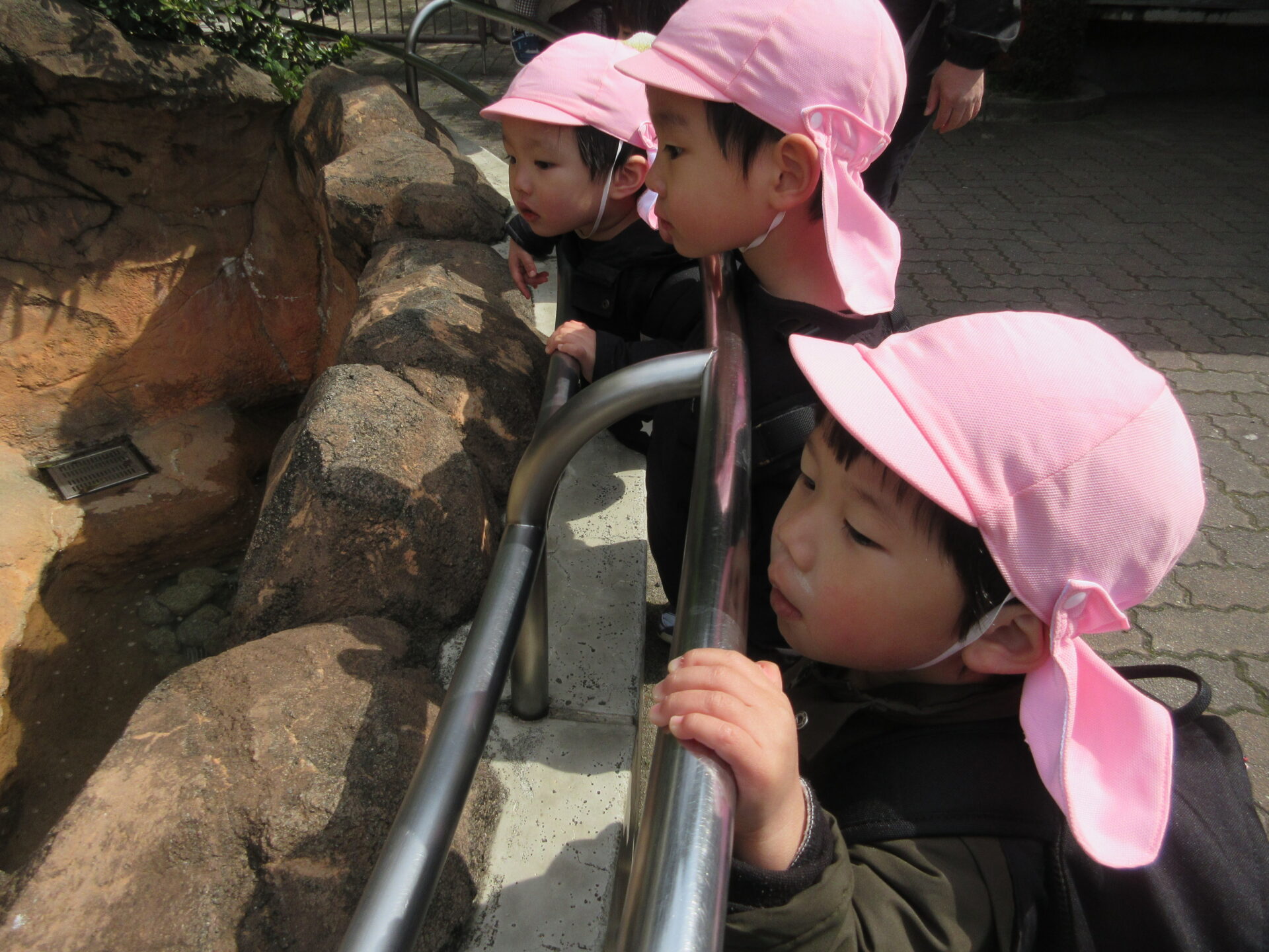 ぞうを見ている時に、偶然にぞうが大量のおしっこをしました。子どもたちは、その量と時間の長さにくぎ付けになっていました。