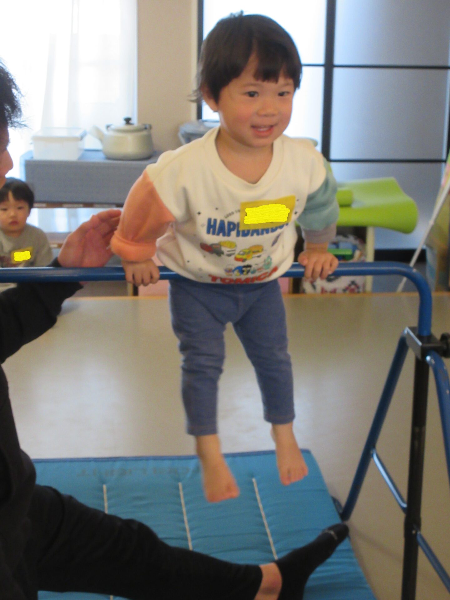 4月当初は、恥ずかしかっていた子、保育士のそばから離れず遠くから体操教室に参加していた子どもがいました。