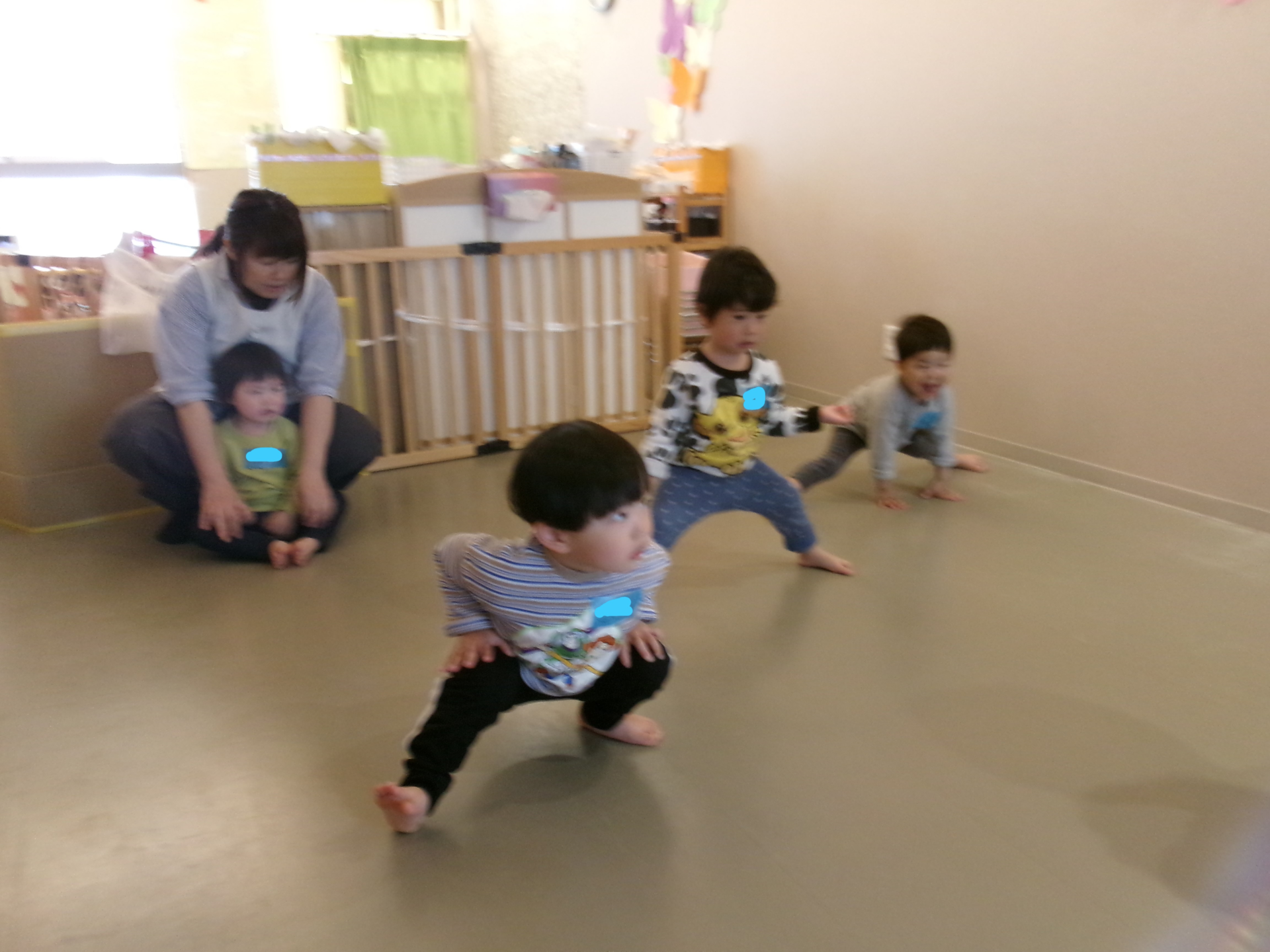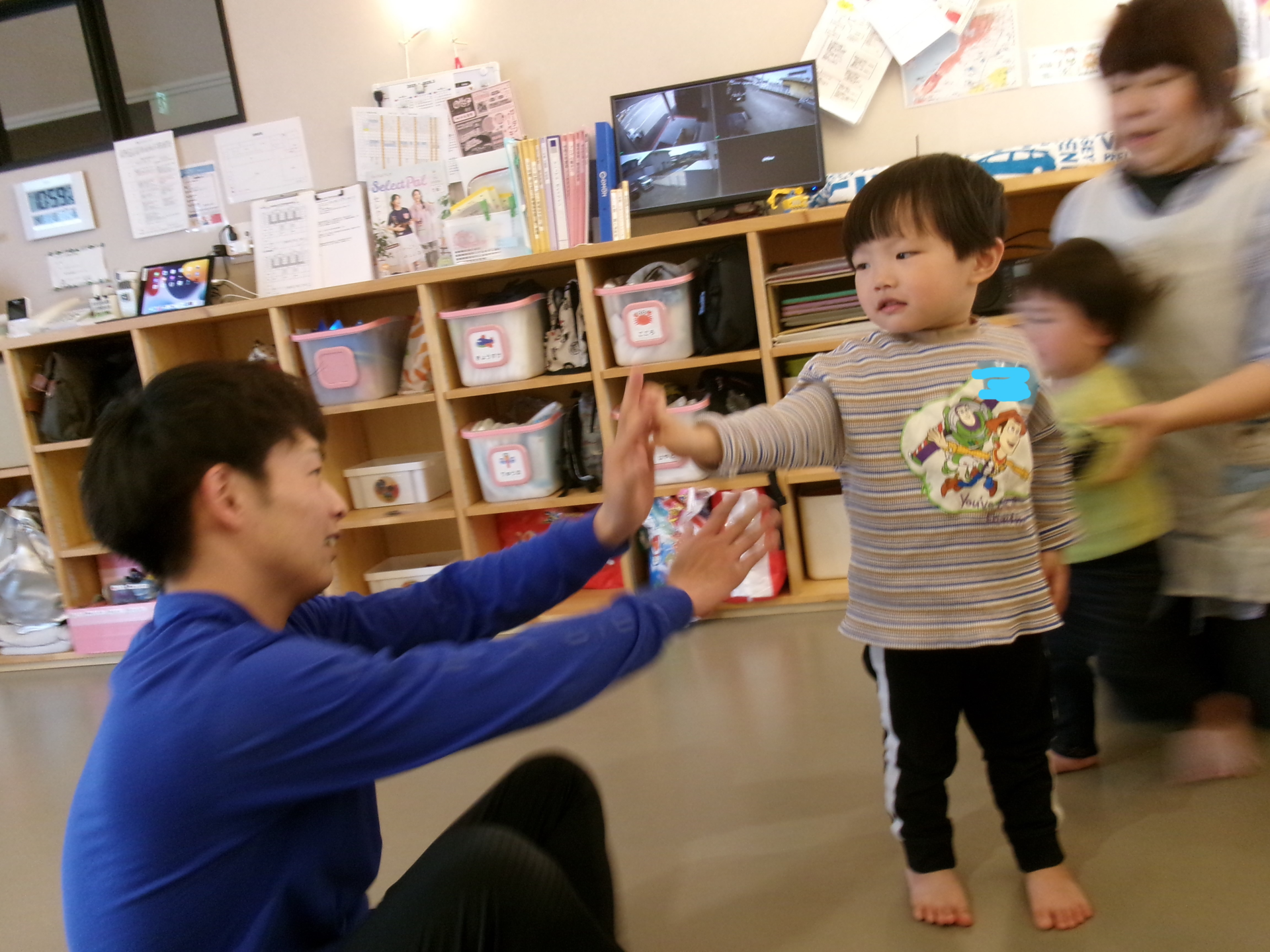 4月からの新入園児さんにとっては初めての体操教室で、緊張気味だったり尻込みしたりすることもありましたが、昨年度からしている在園児さんがリードしてくれたので、緊張もほぐれたようでした。