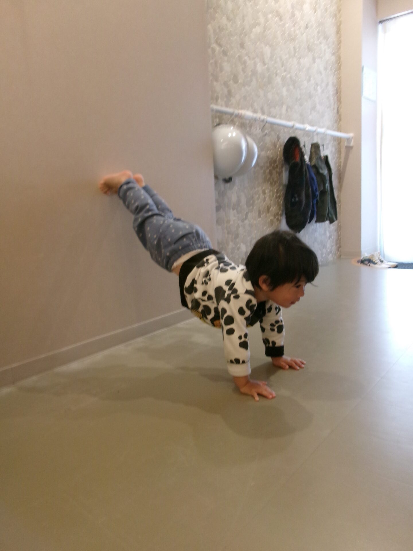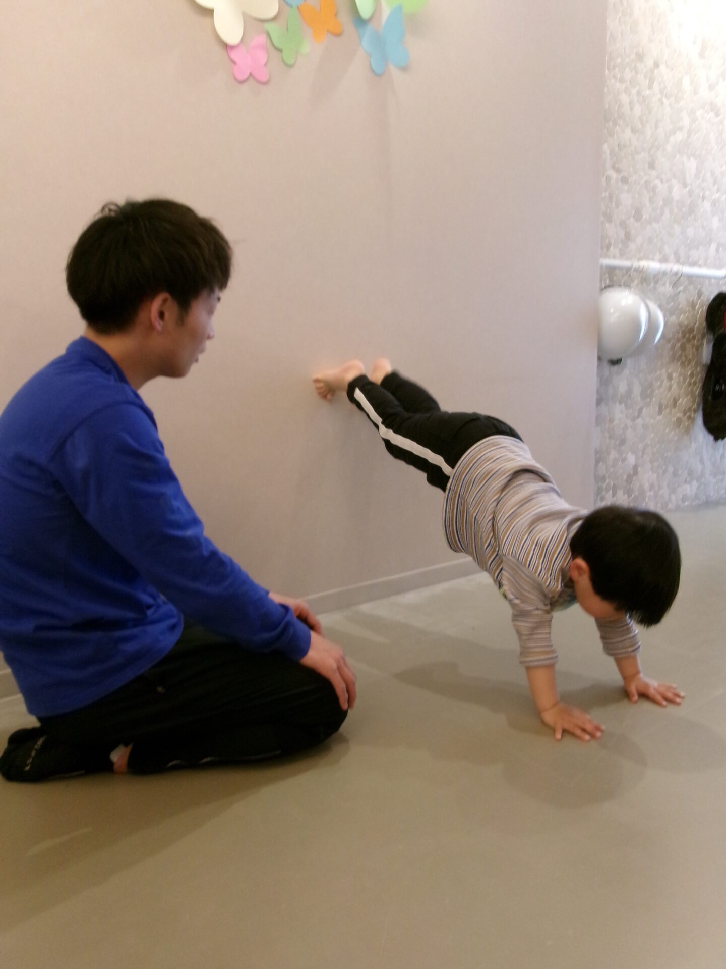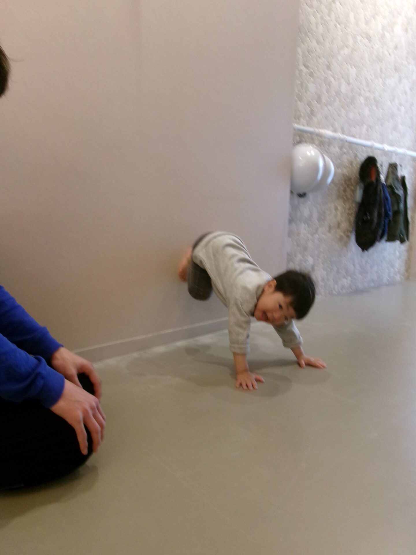 初めて倒立をするお友だちも、見ながら真似ていました。