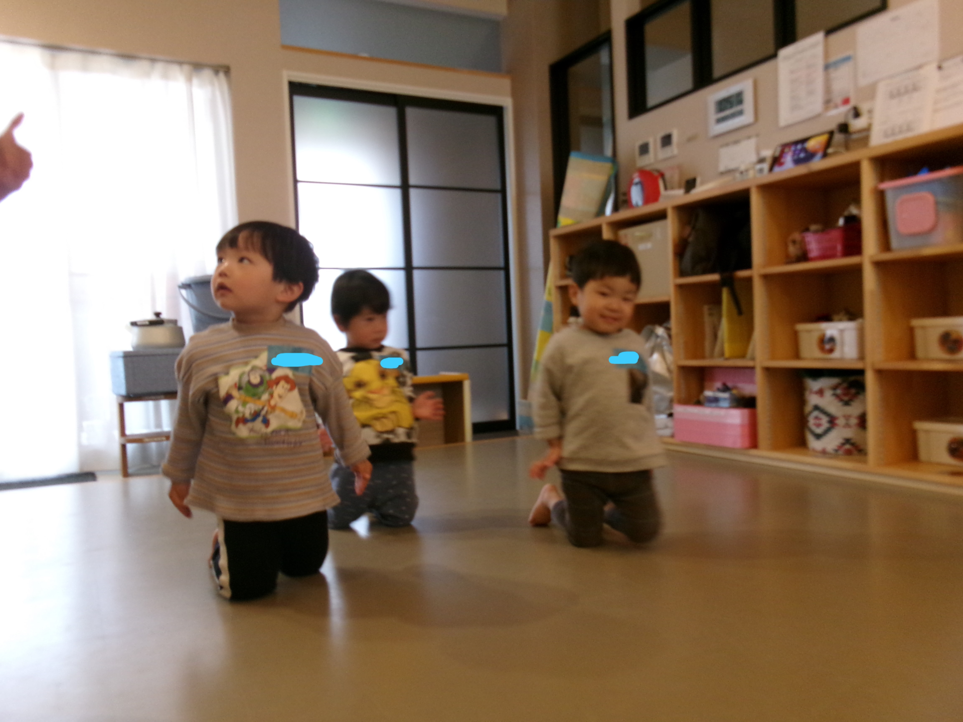 まだ、恥ずかしいお友だちは、保育士と一緒に頑張りました😊