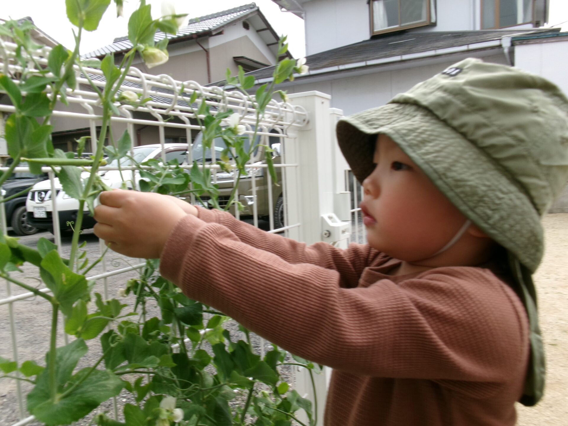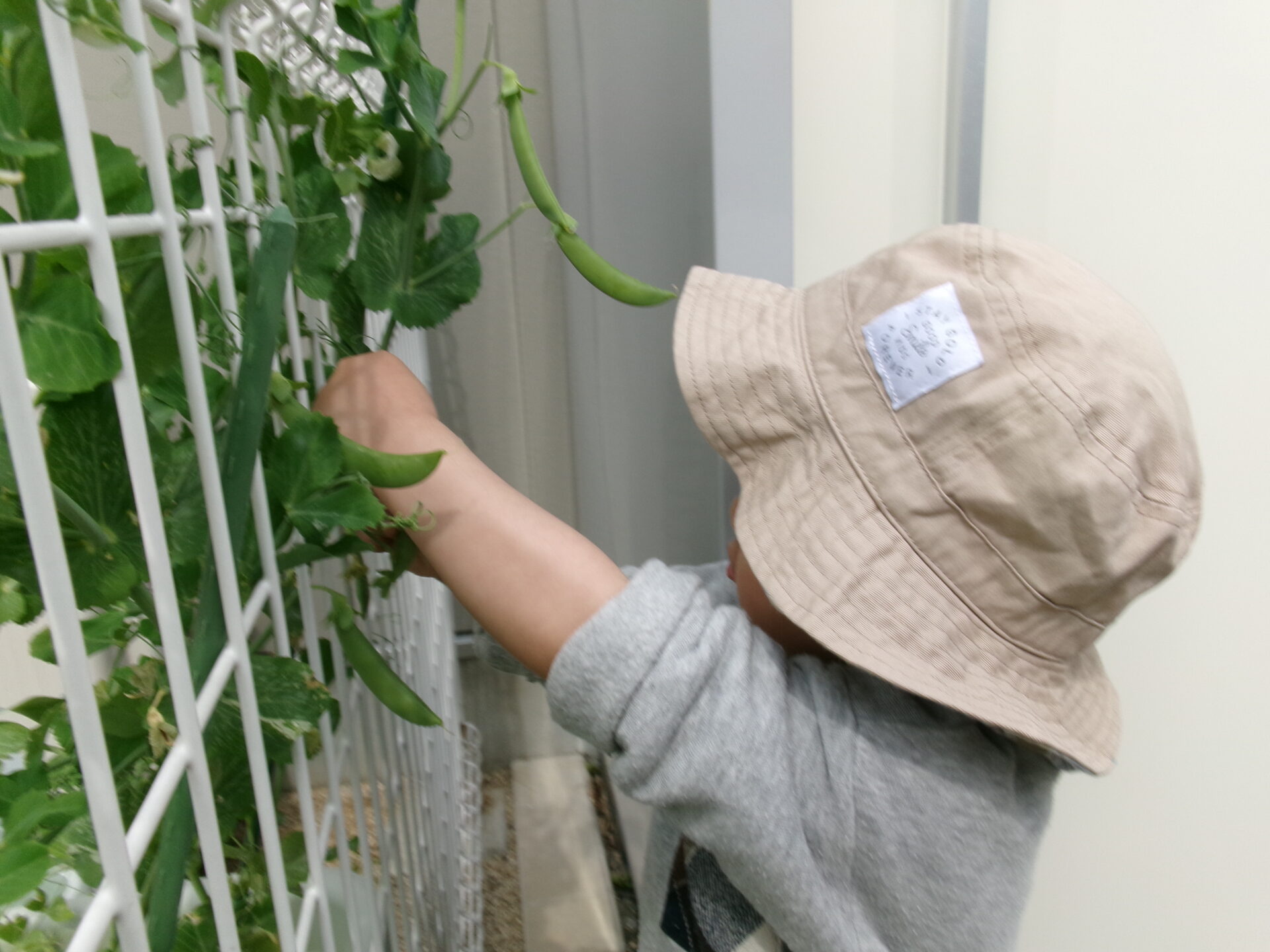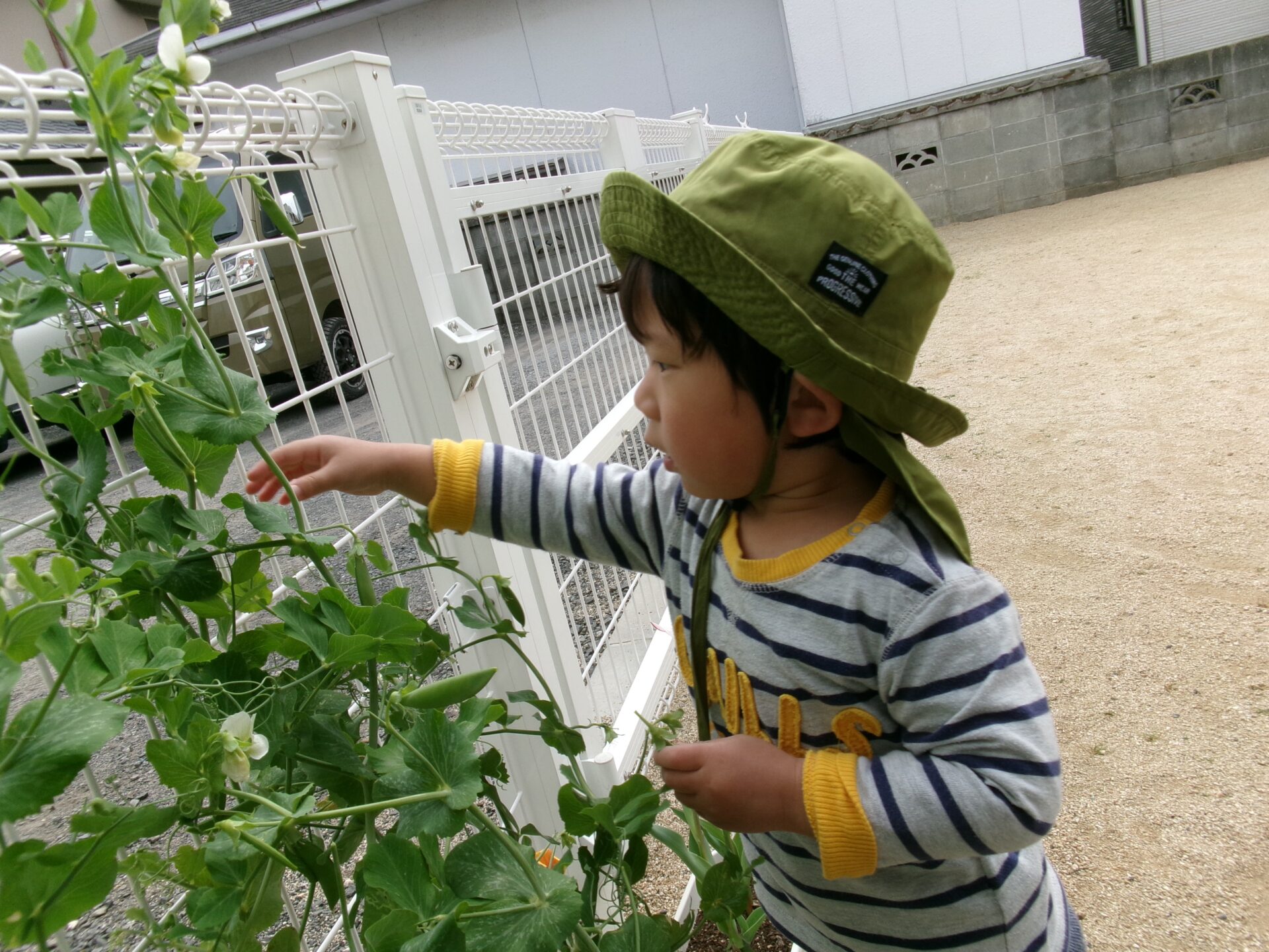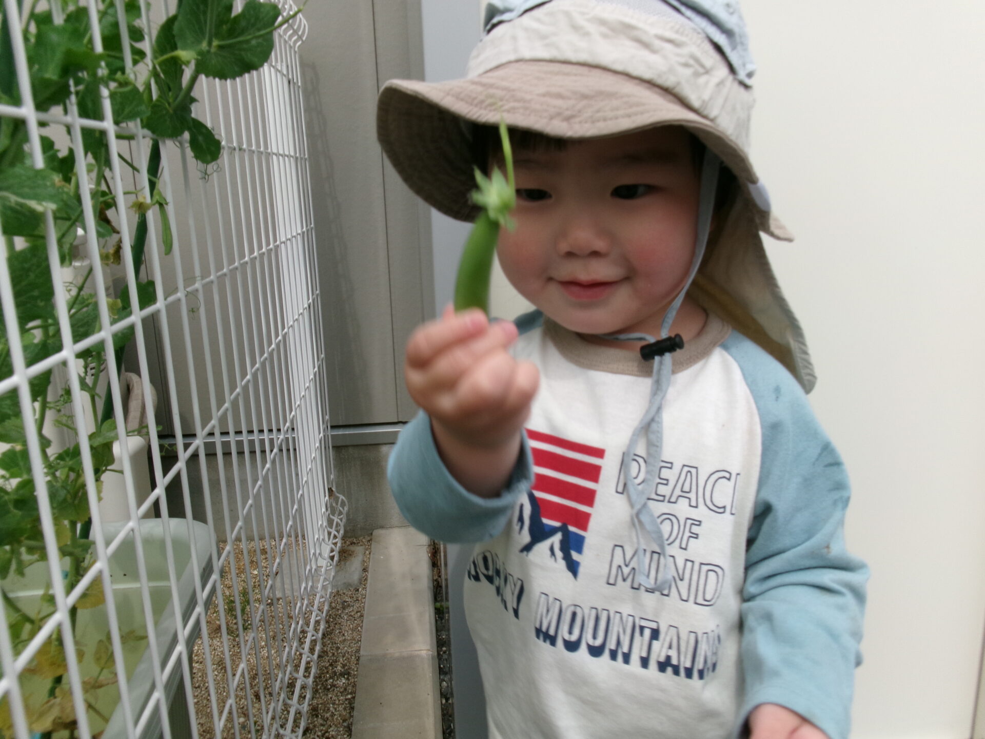 スナップエンドウの収穫😊(2歳児)