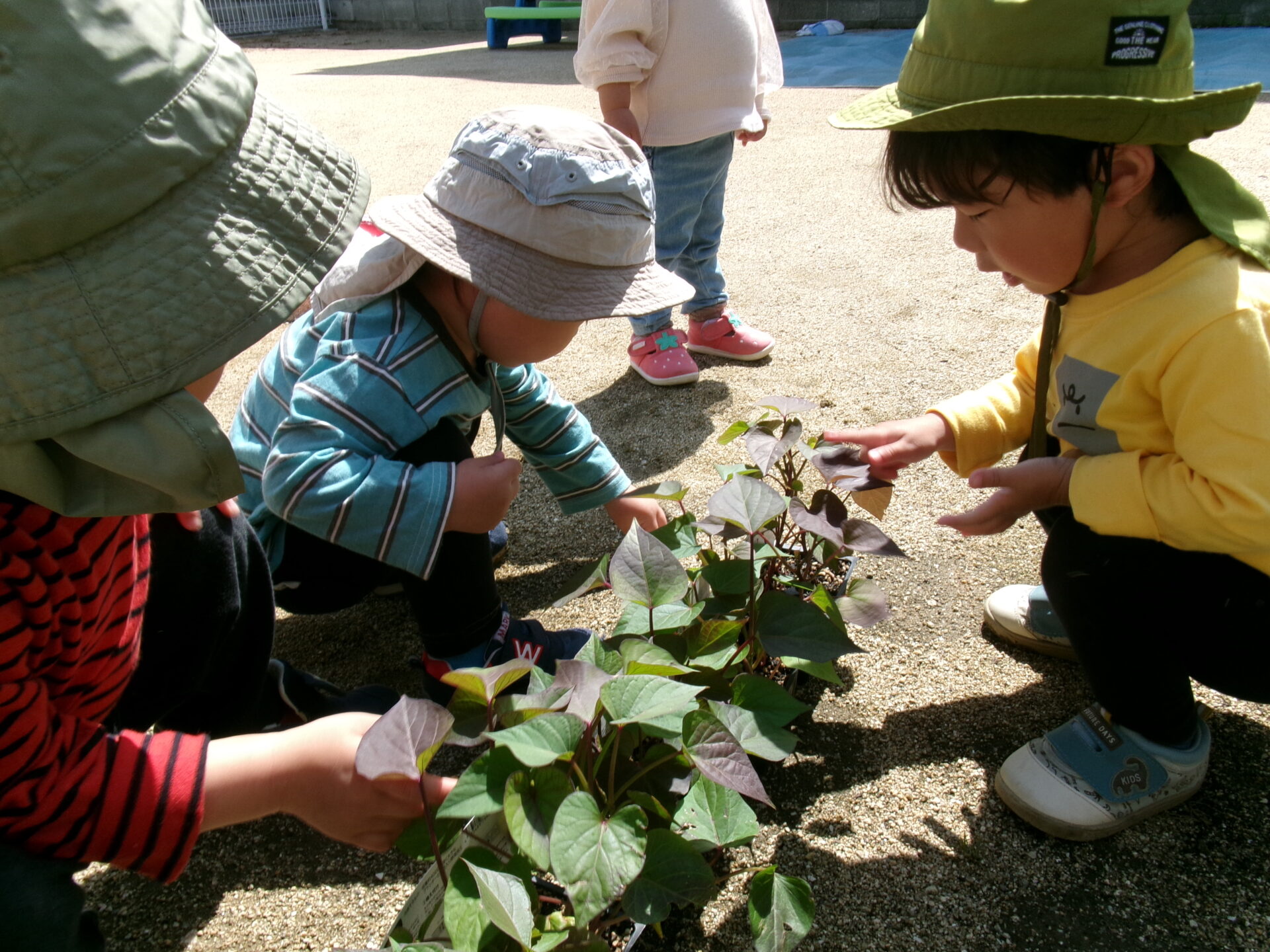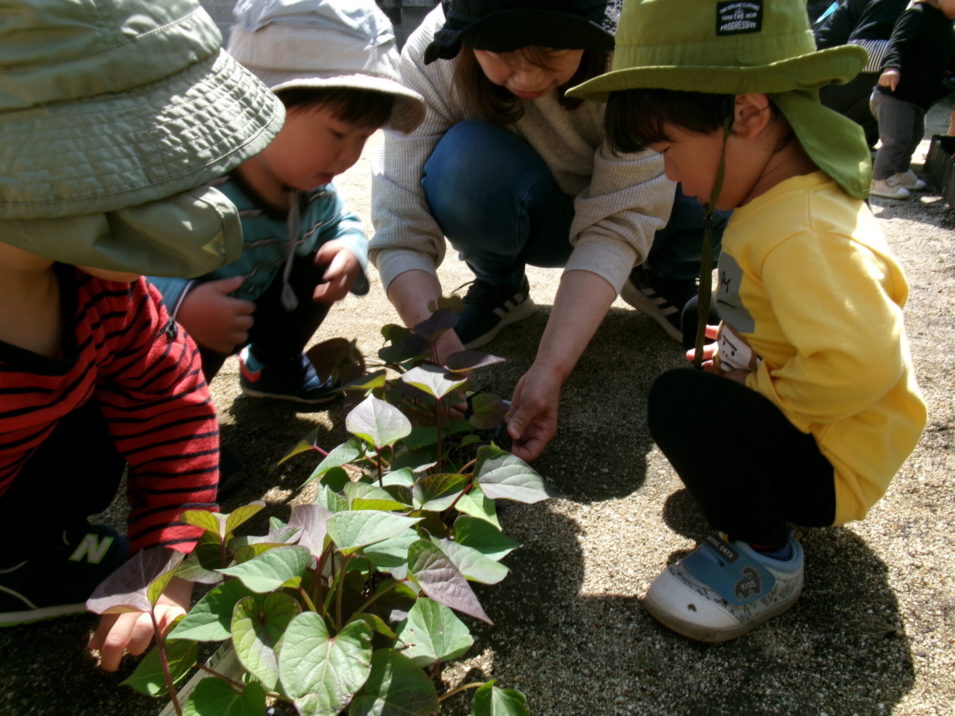 どんどん大きくなってくる苗を観察しながら、秋にはおいしいお芋を収穫できることを祈りたいと思います。