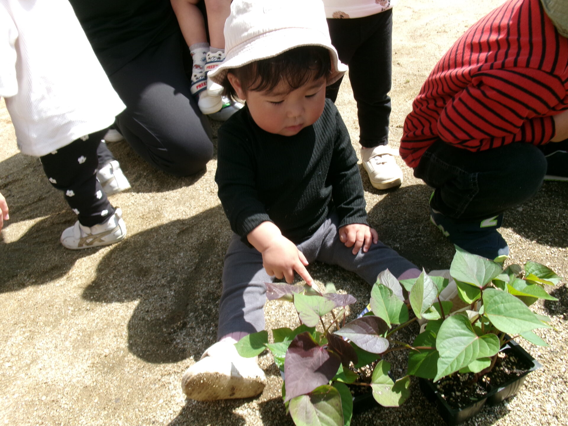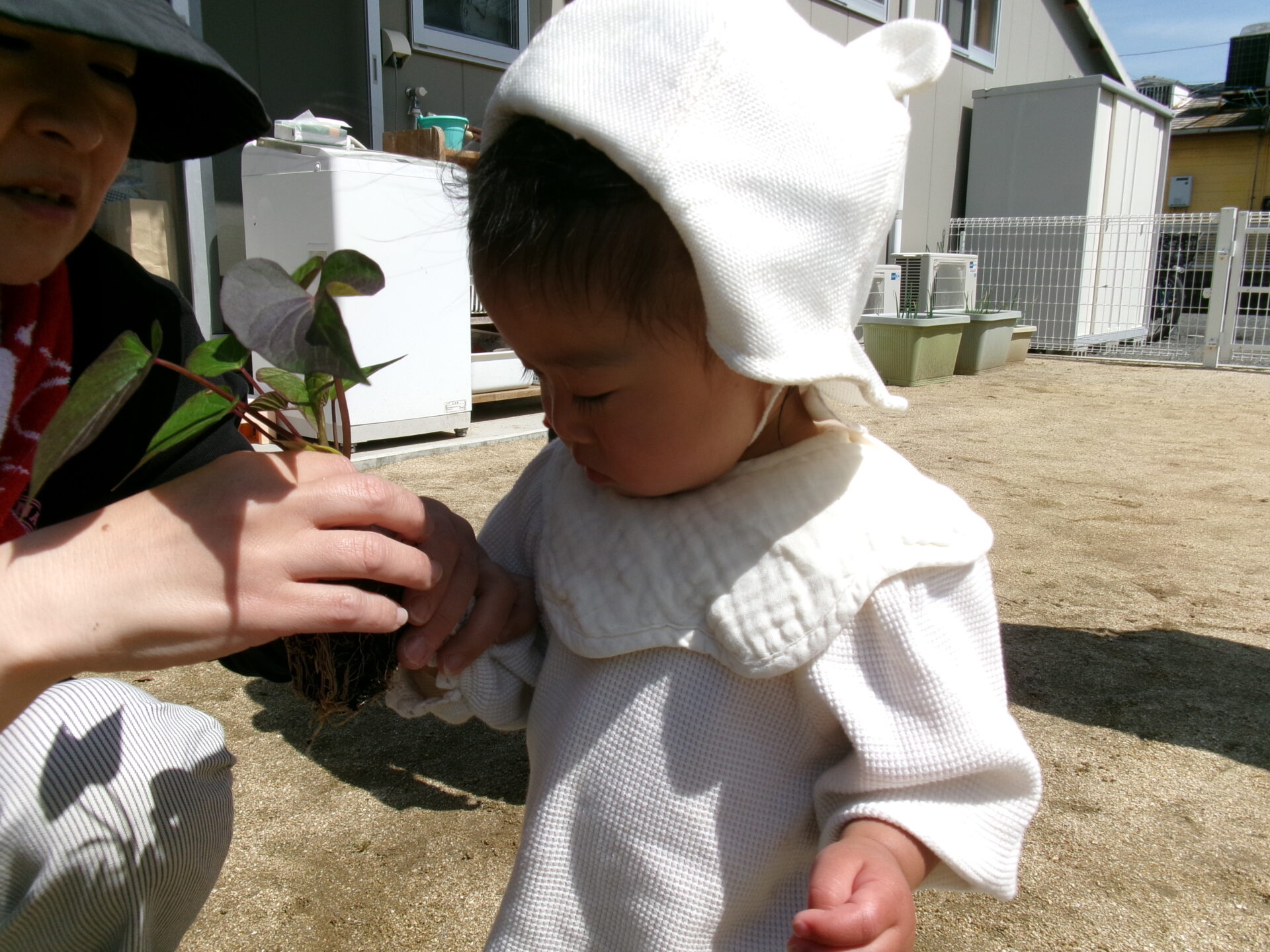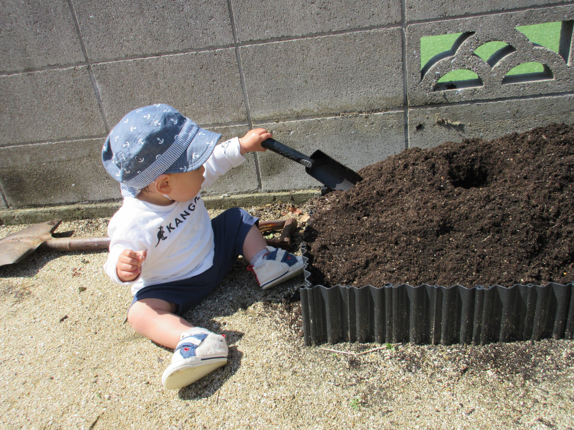 園庭の小さな畑(⁉)に上手く植えることができるかなぁ⁉