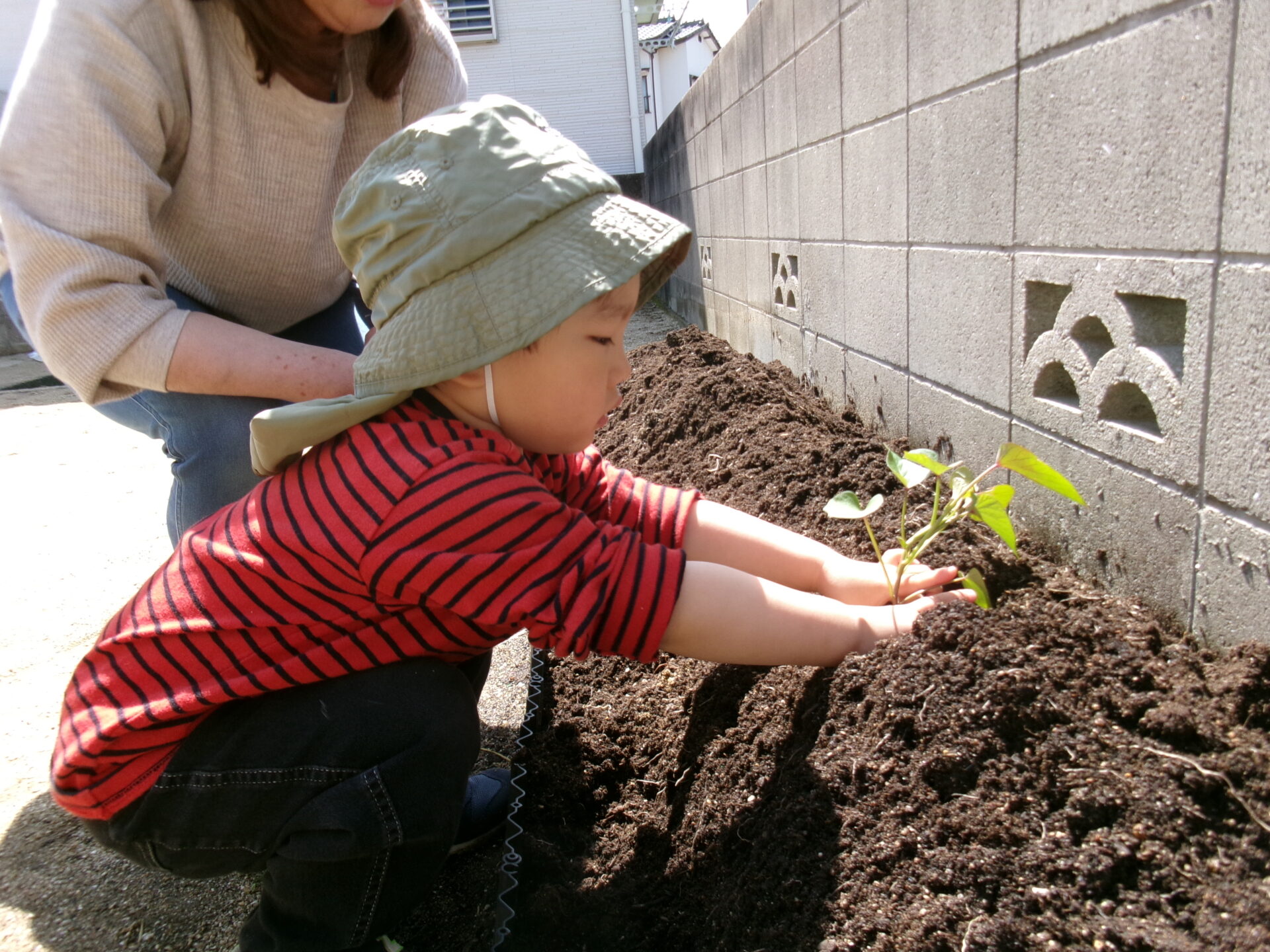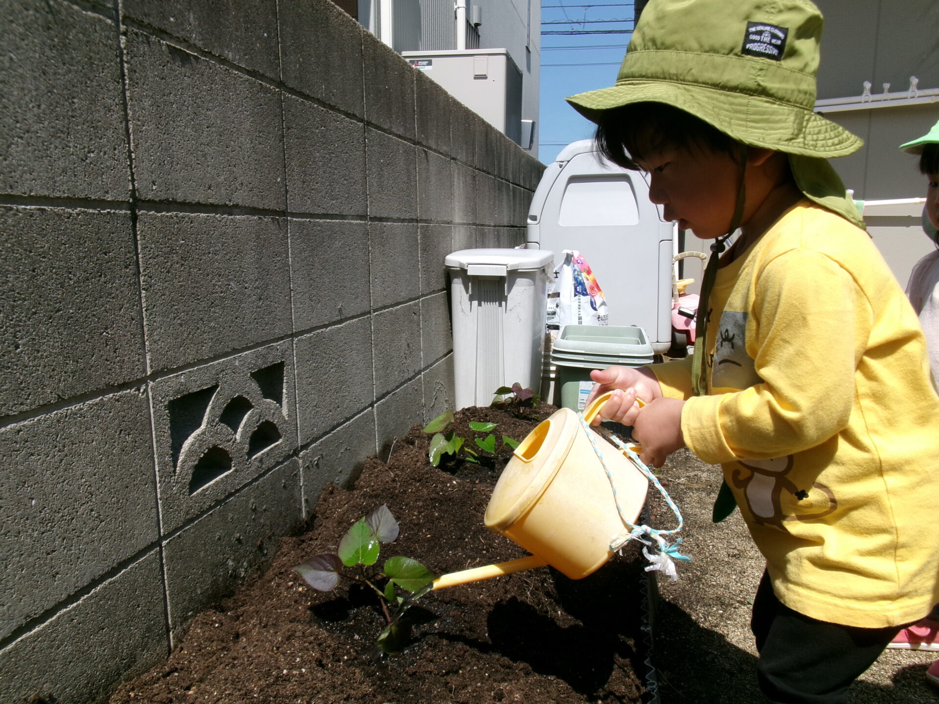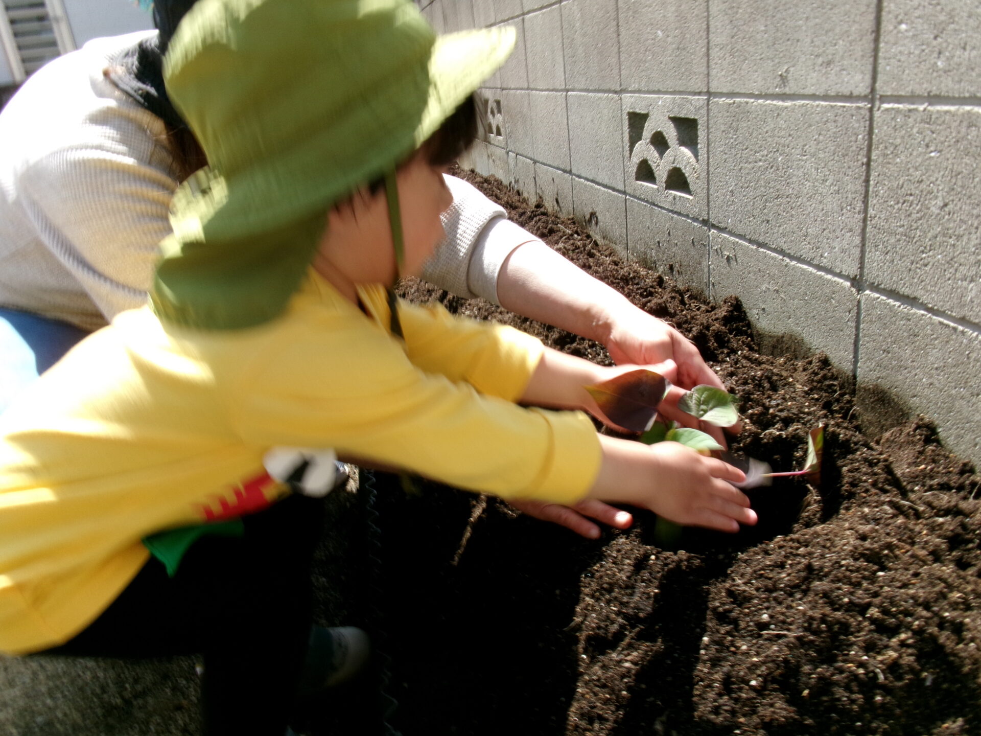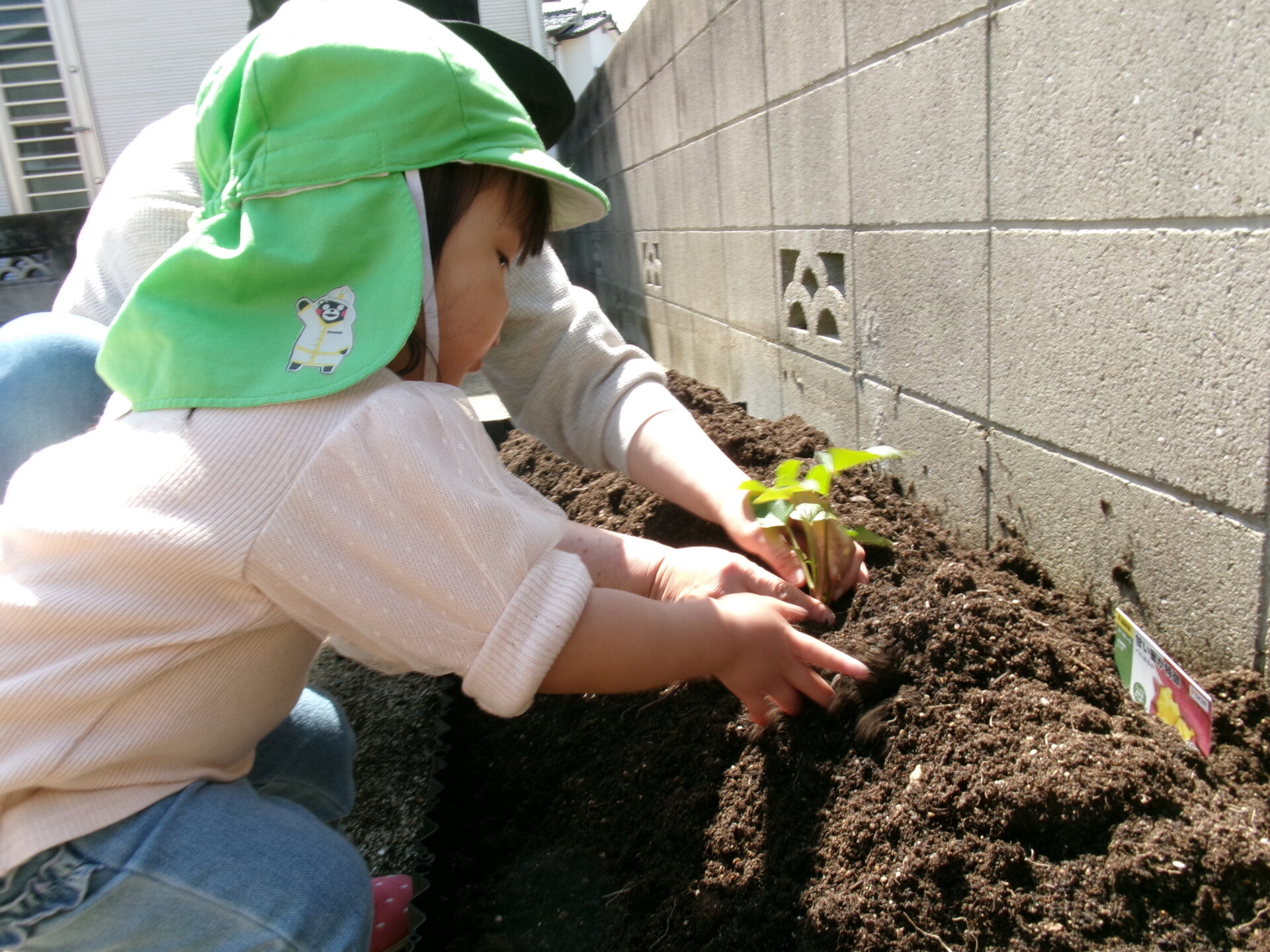 そうっと苗を持ち慎重に植える子、手が汚れることを気にして、なかなか持とうとしない子…と様々でしたが、無事に植えることができました。