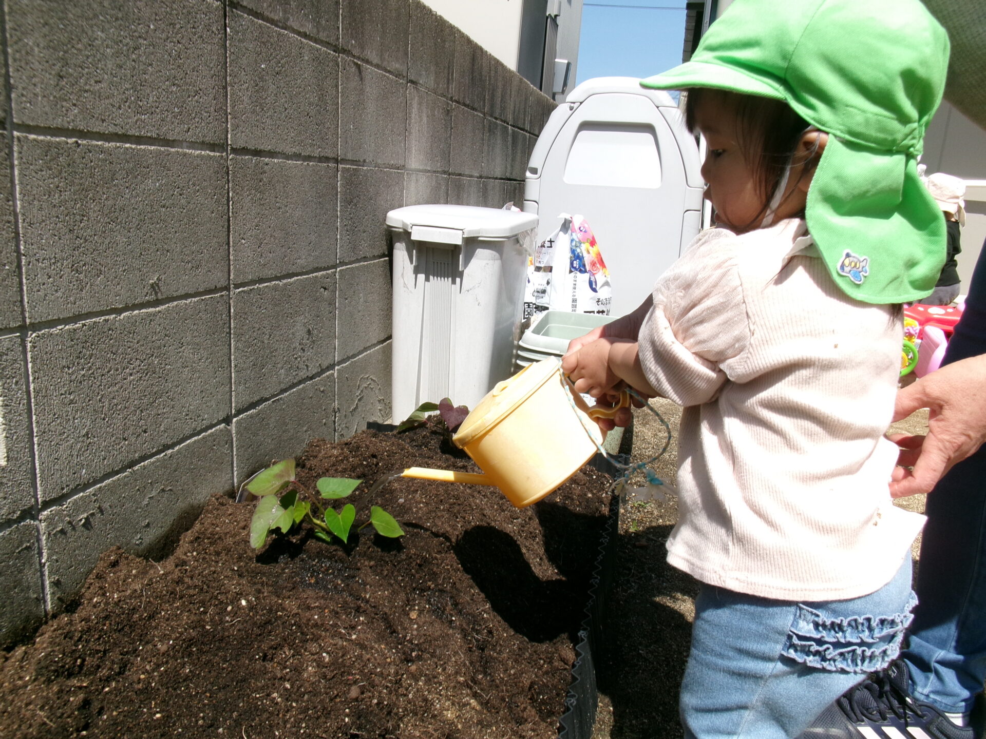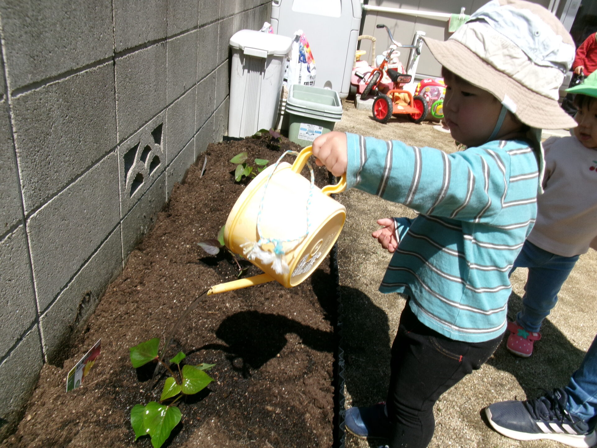 「大きくなってね!」「たくさんお芋ができますように!」と願いを込めて、たっっぷりとお水をあげました。