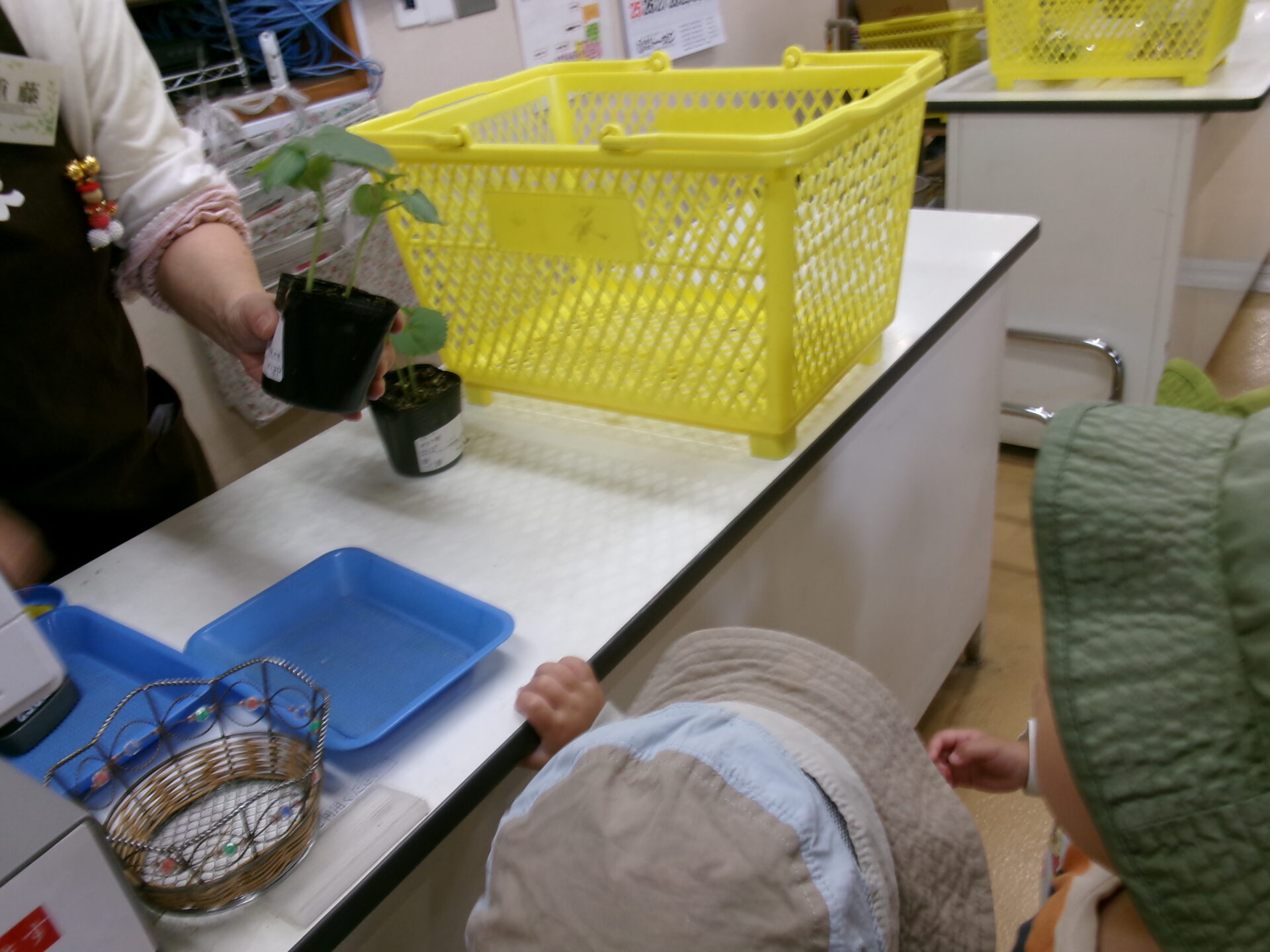「どれにしようかな⁉」「これにする?」と相談しながら、オクラの苗を買うことにしました。