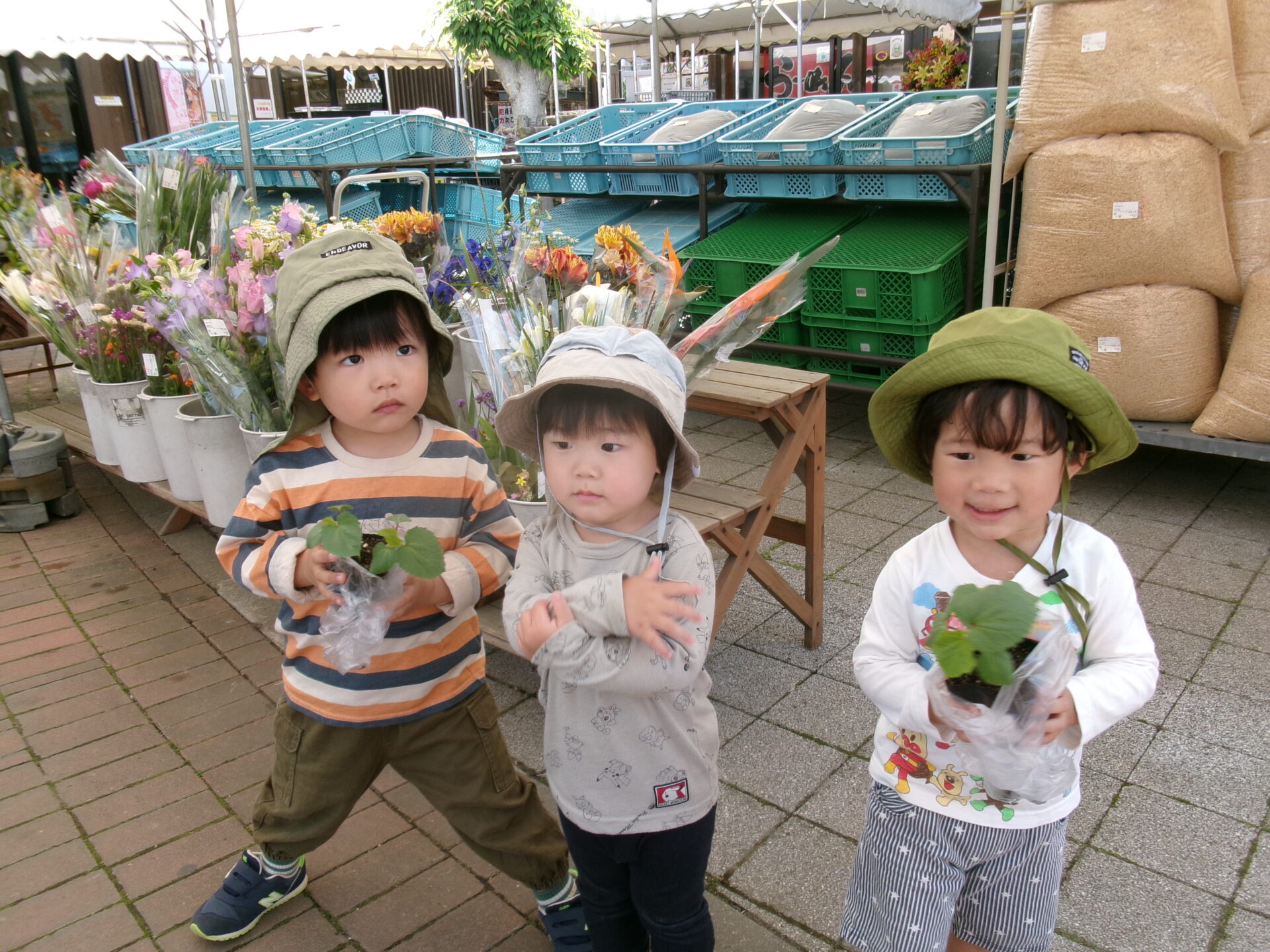 町家まで散歩がてら、みんなで苗を買いに行きました。