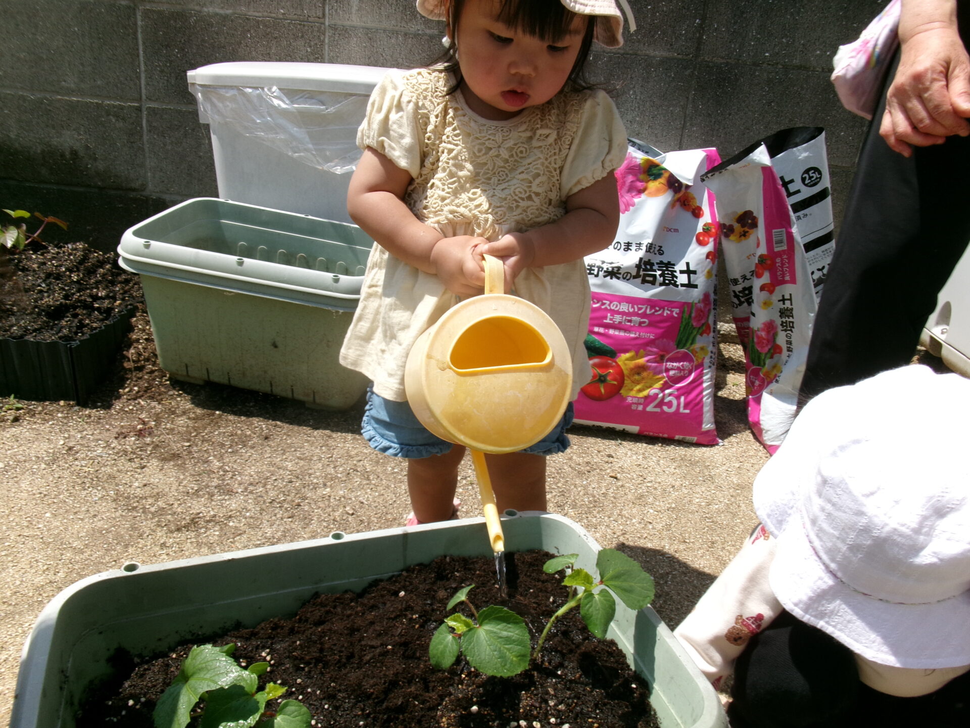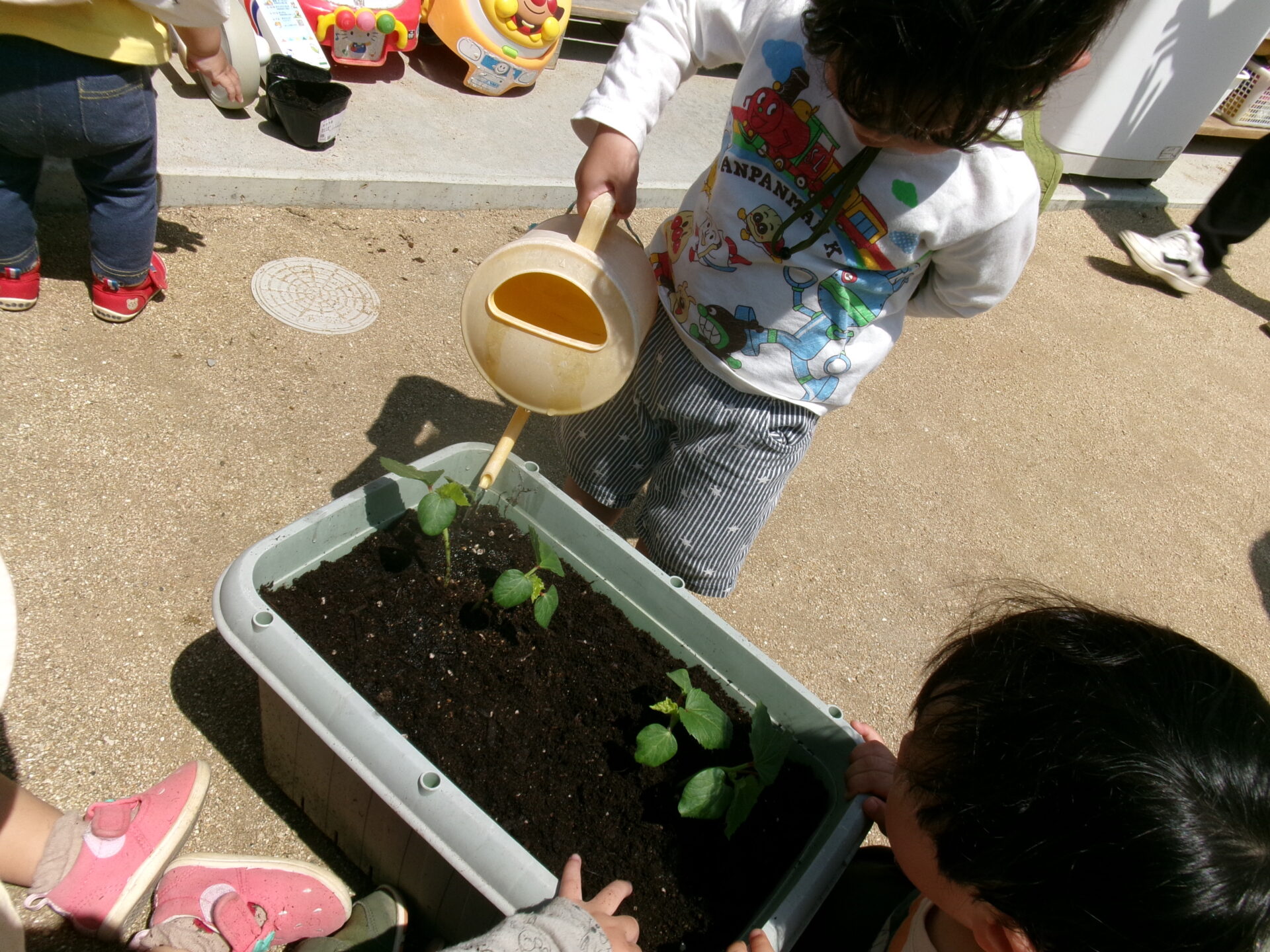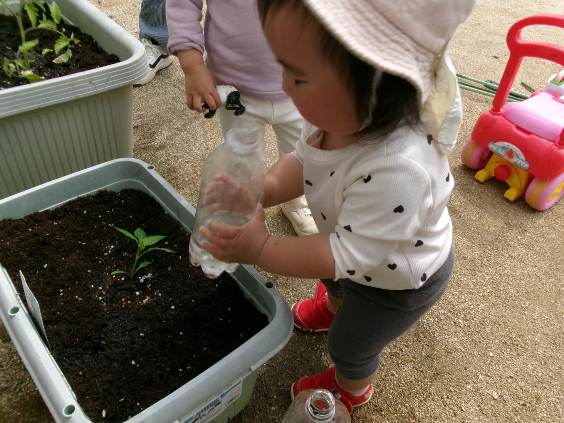 そら組(1歳児)さんも水やりの応援です!