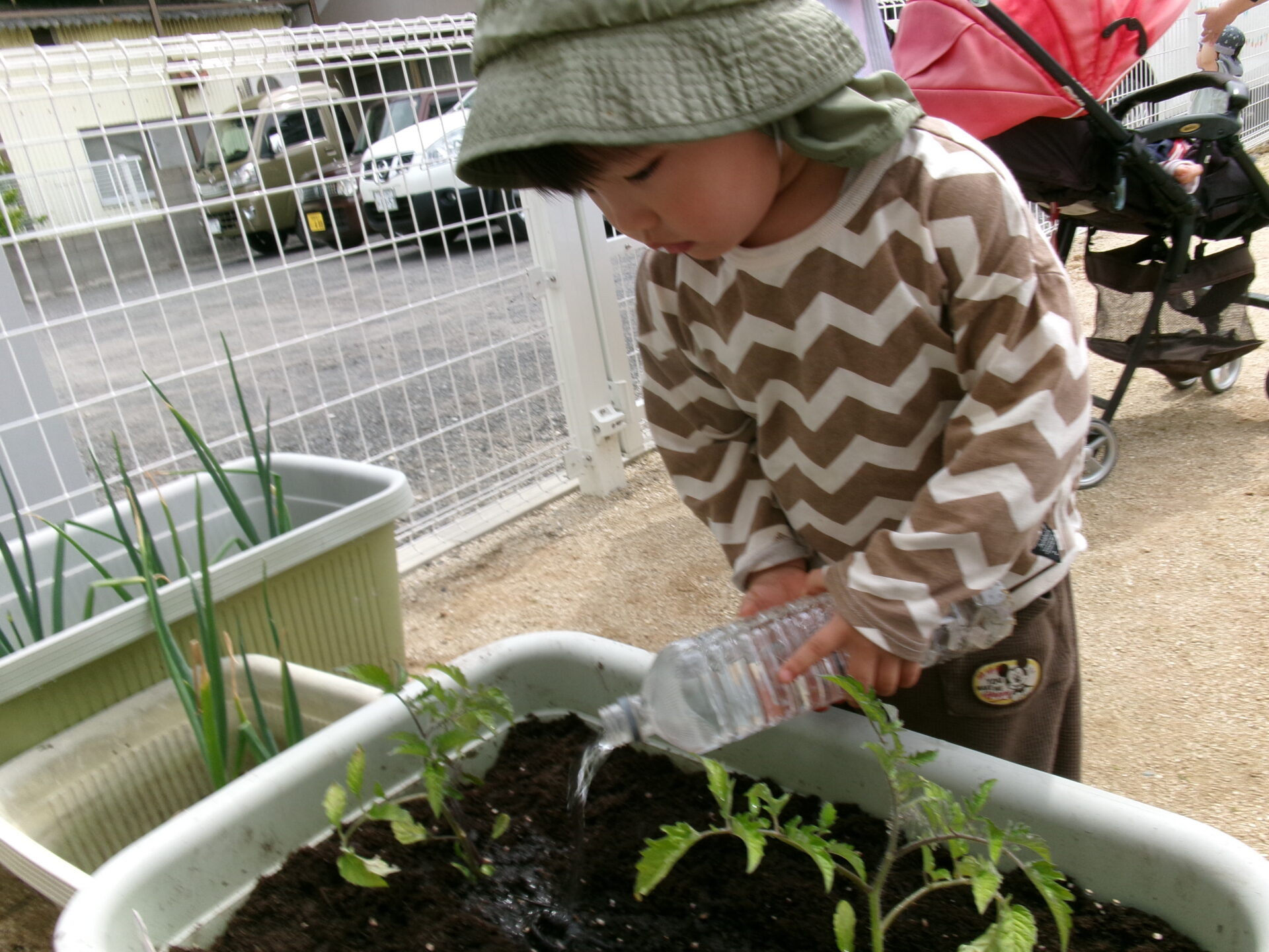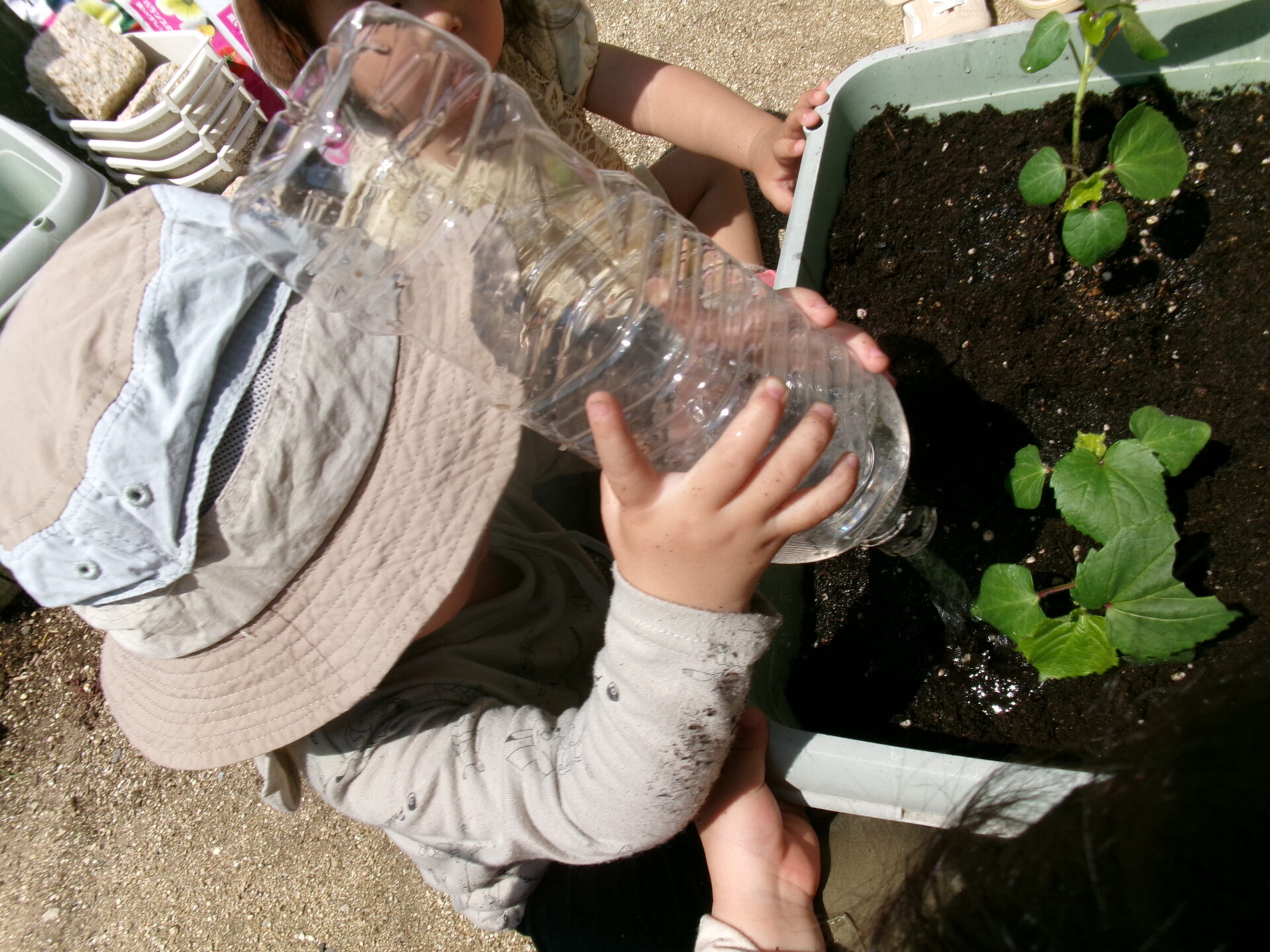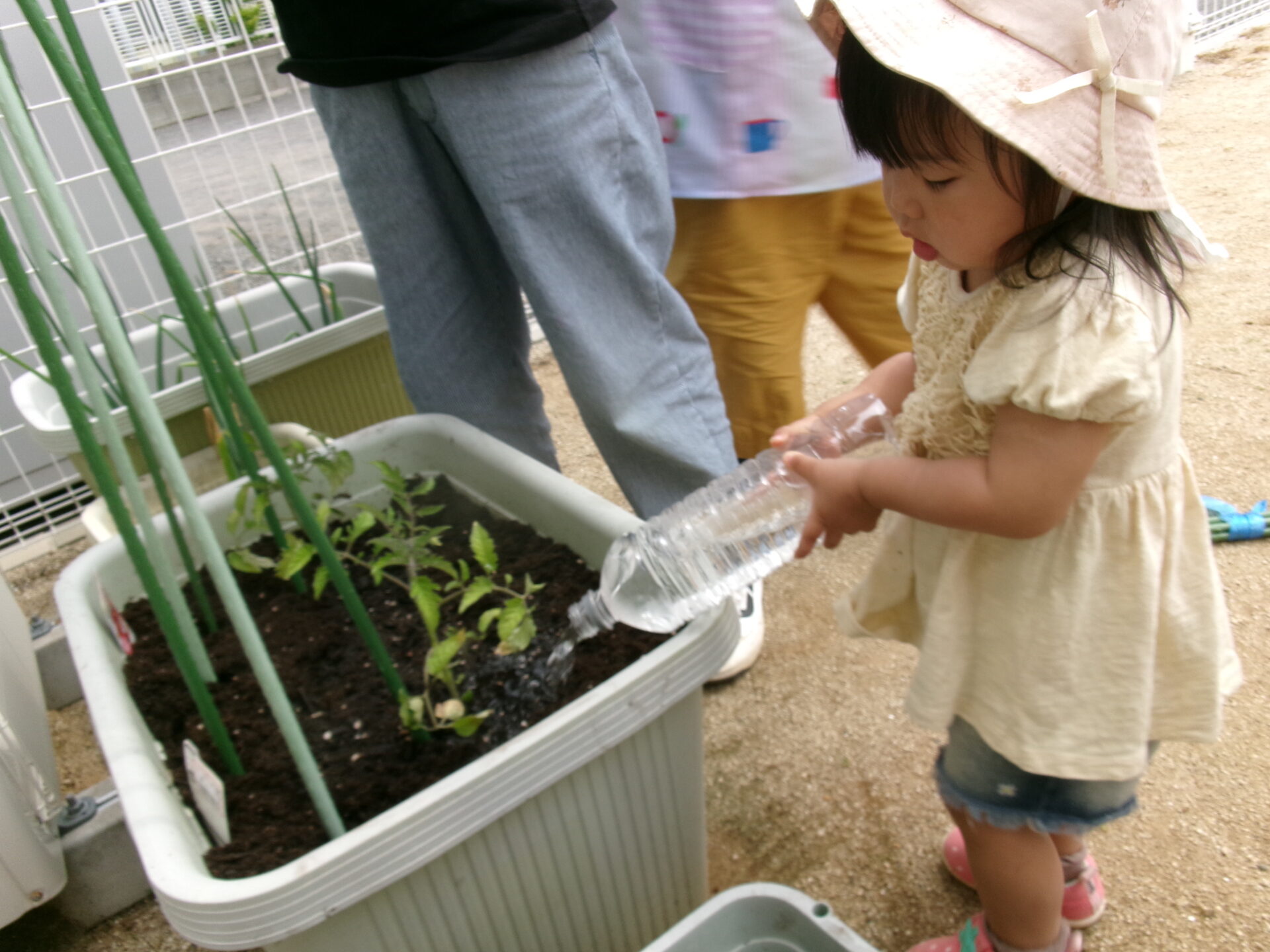 そら組(1歳児)さんも水やりの応援です!