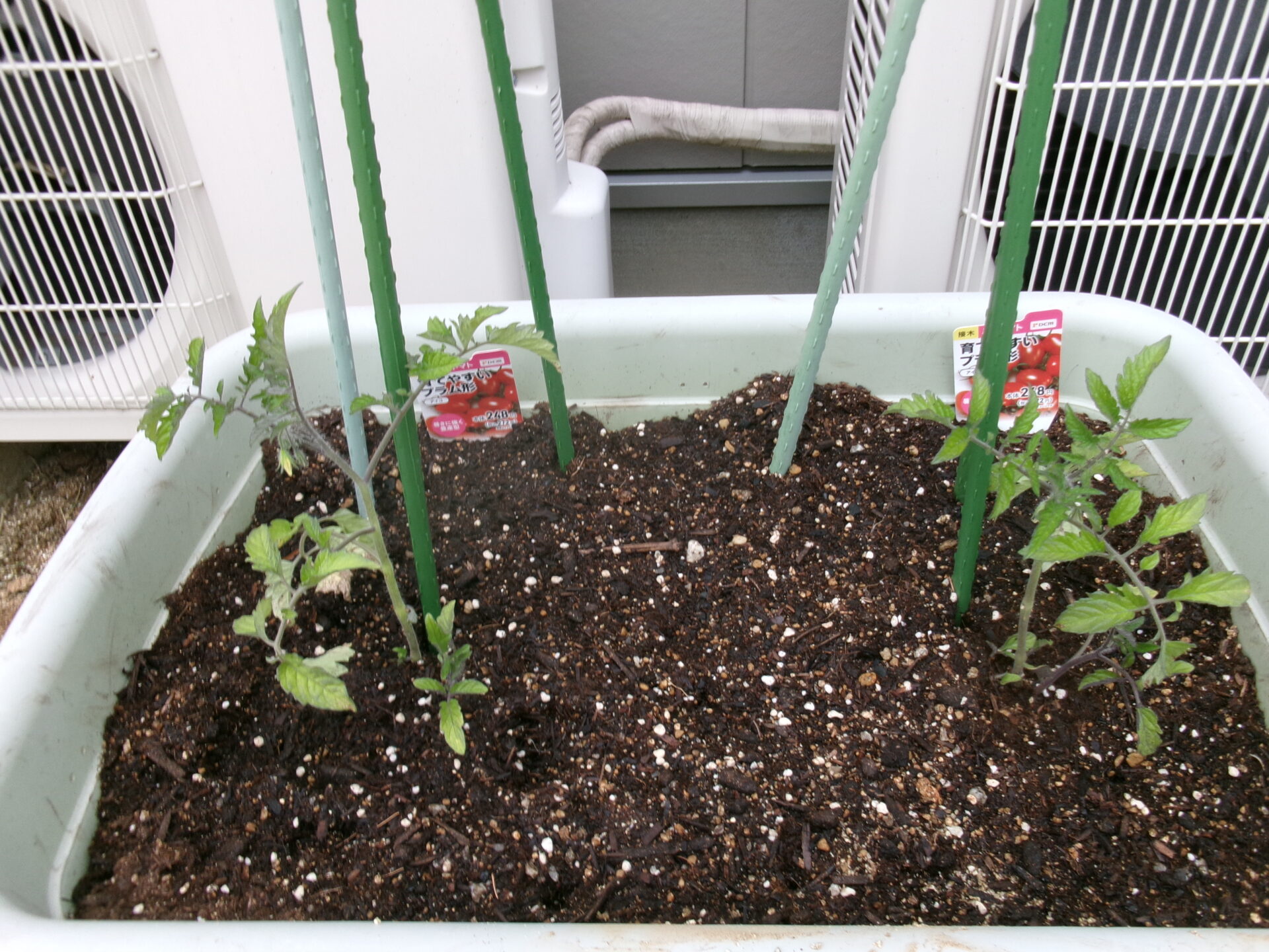 次の日はミニトマトとピーマンの苗も植えました。
