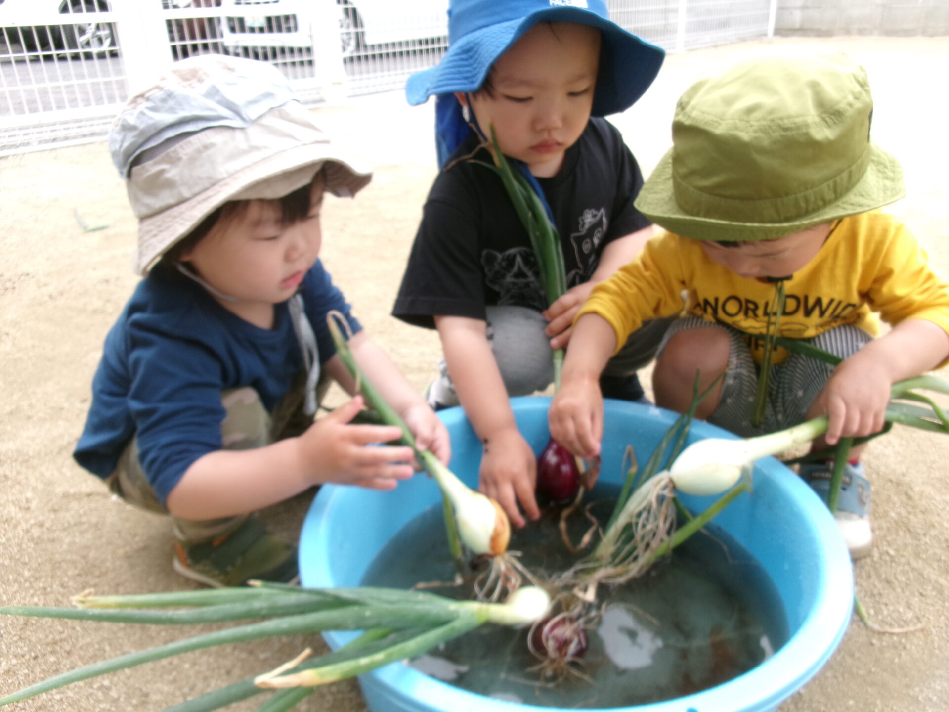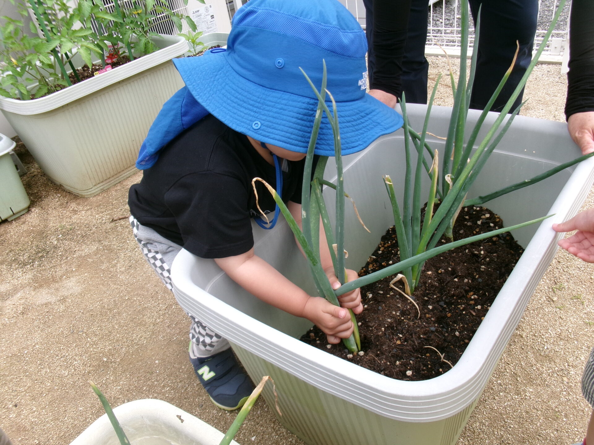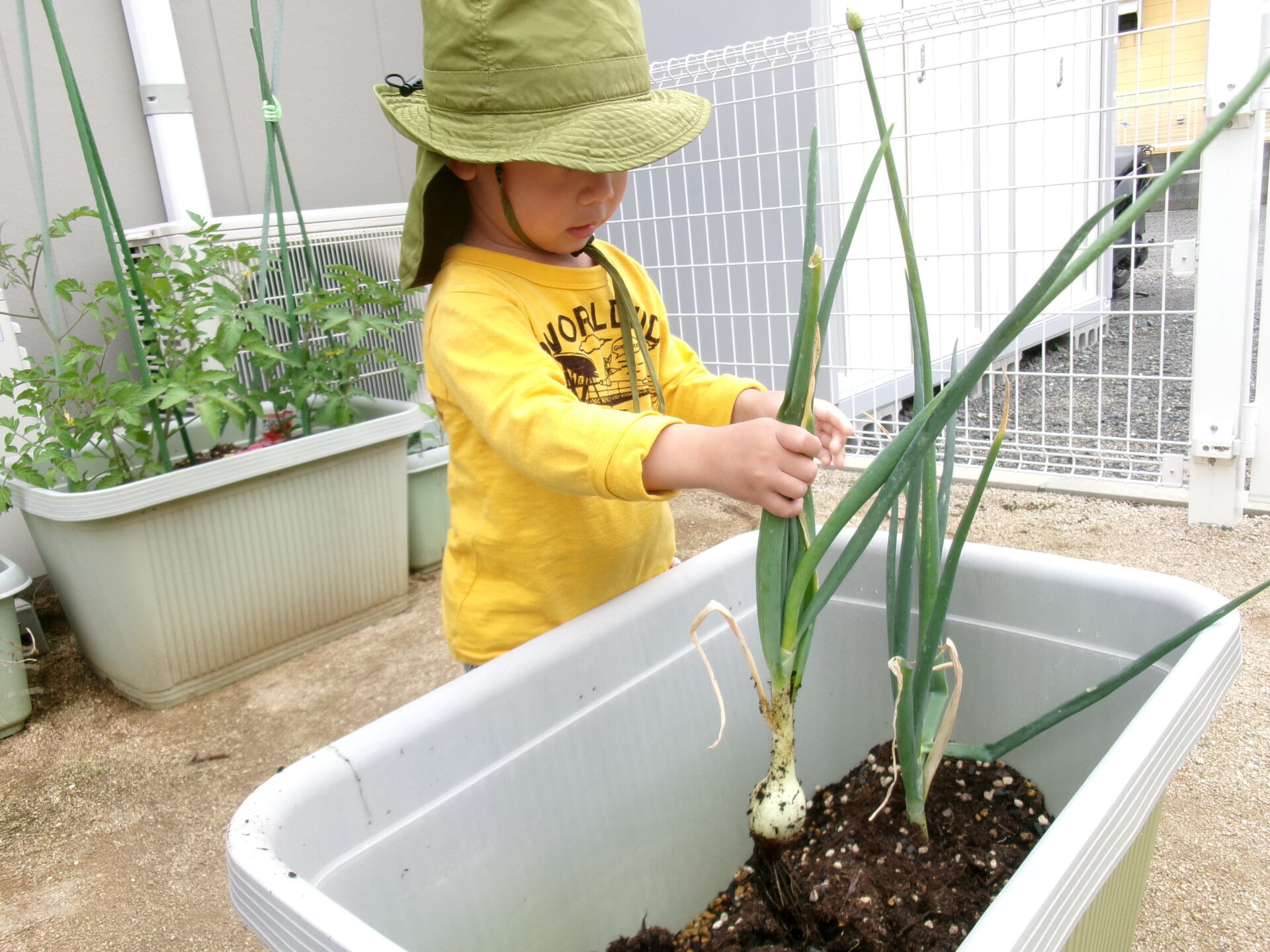子どもたちにとって、「玉ねぎができているよ…」と話していても、土の中でどんなものができているのかピンときていないようでした。