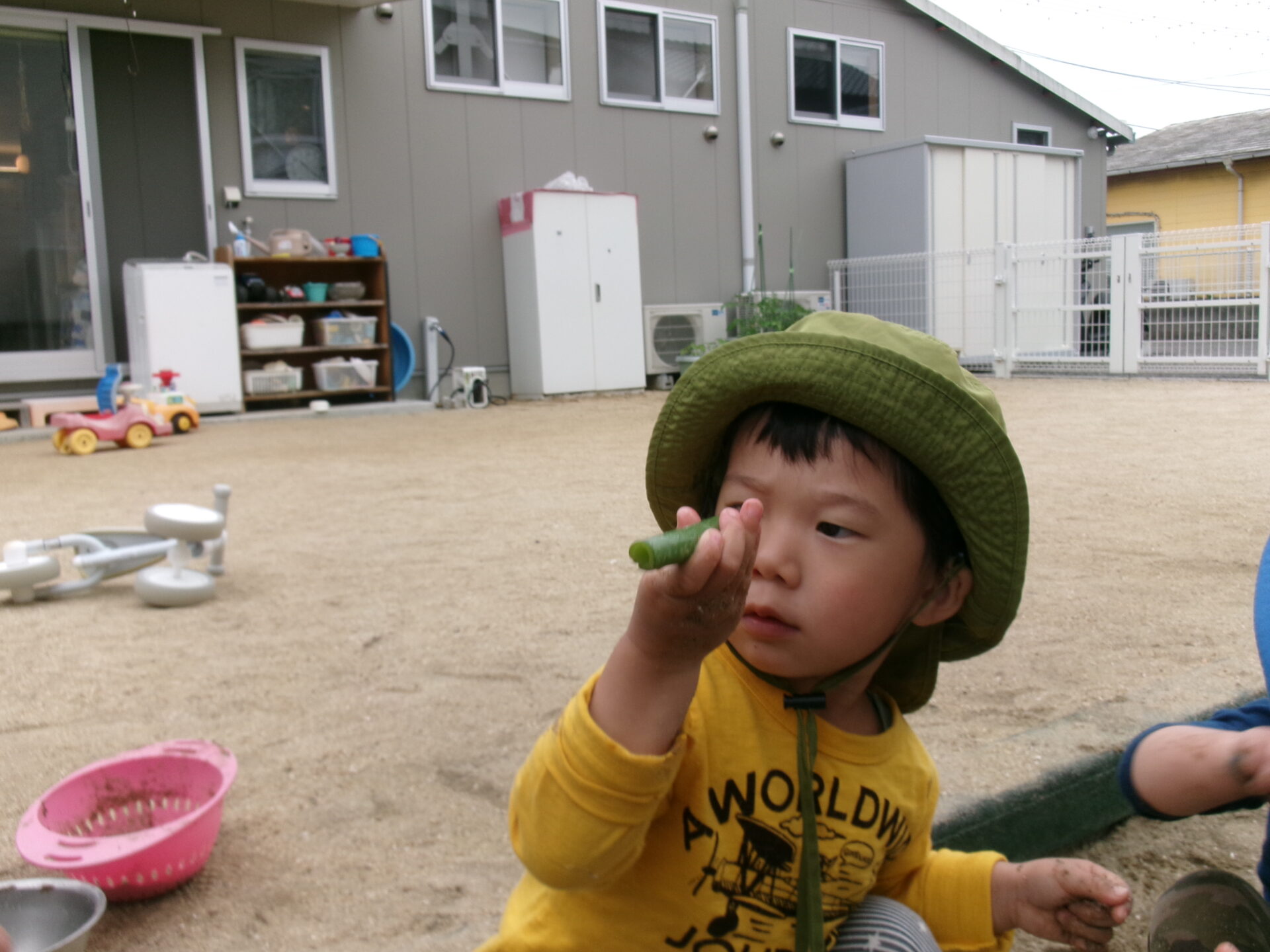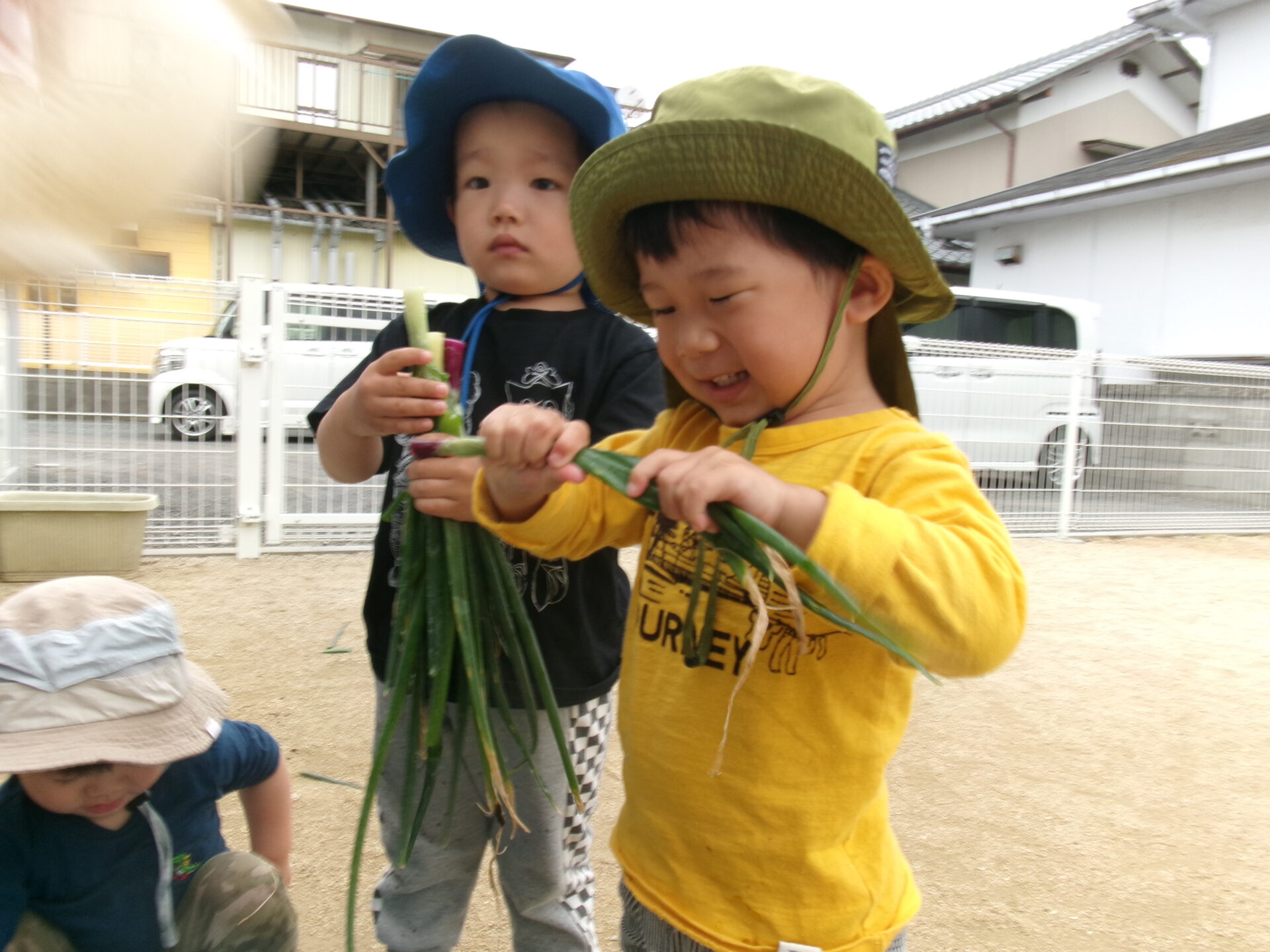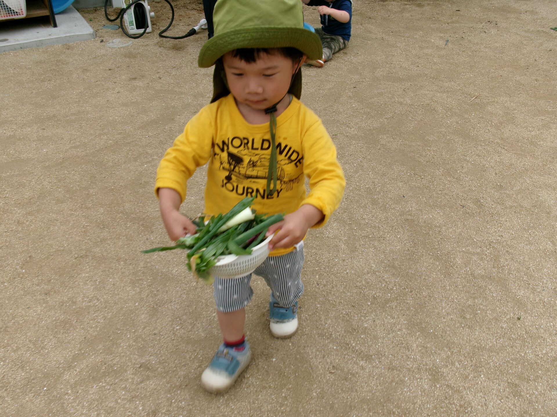 「うんとこしょ!!で抜いてみるよ」「どんなのが出てくるかなぁ?」と根元をしっかり持って、一人ずつ抜いてみました。