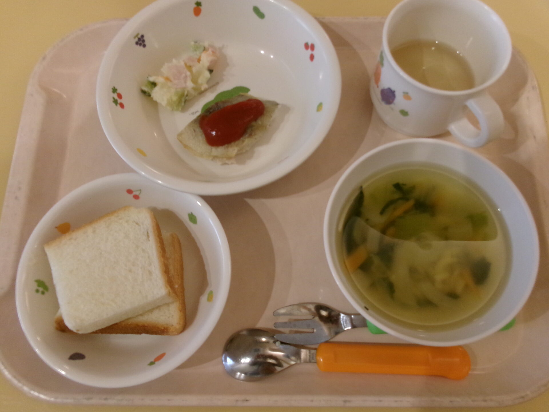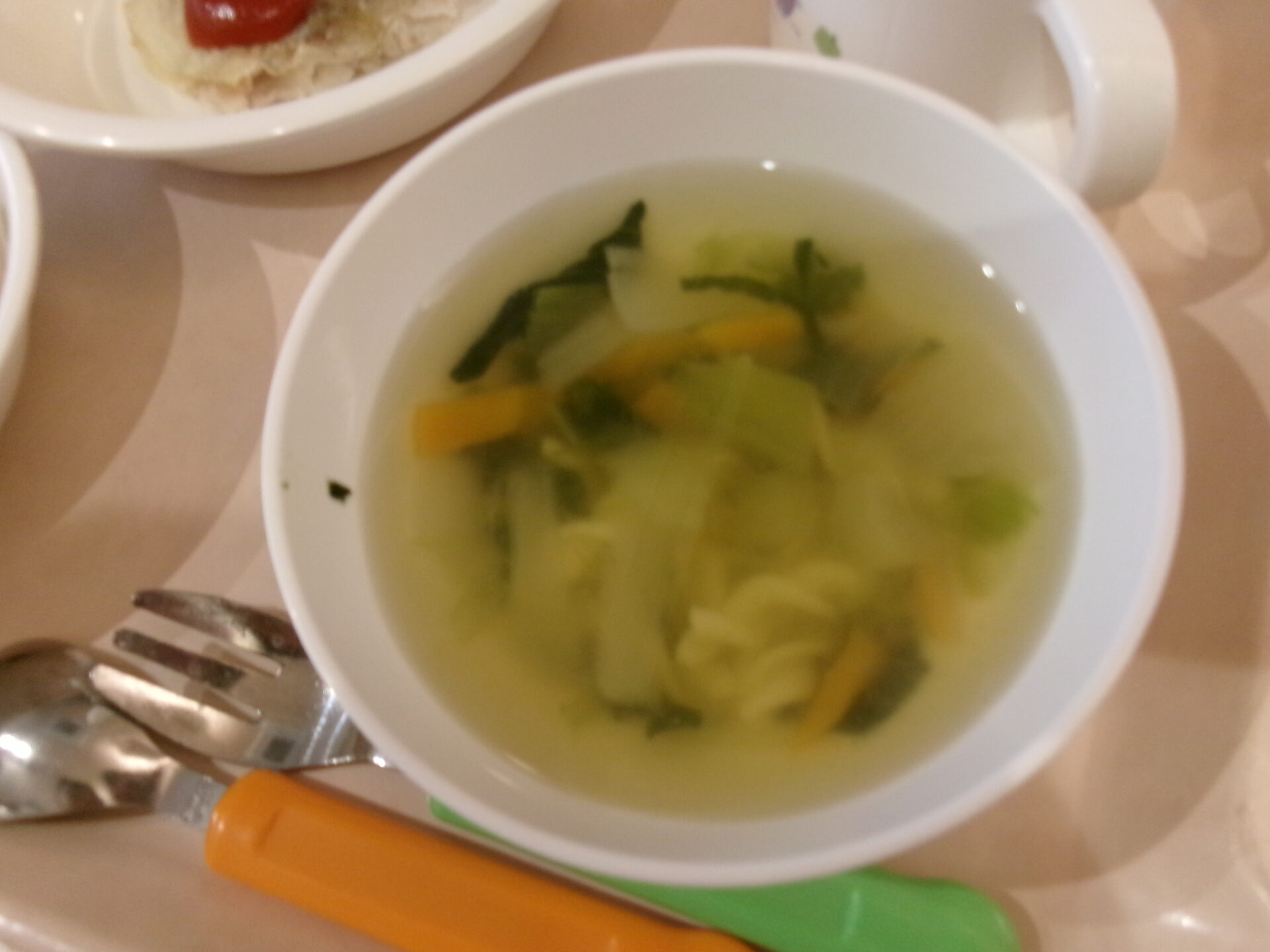 収穫した玉ねぎは、給食室にお願いして、スープの中に入れてもらいました。