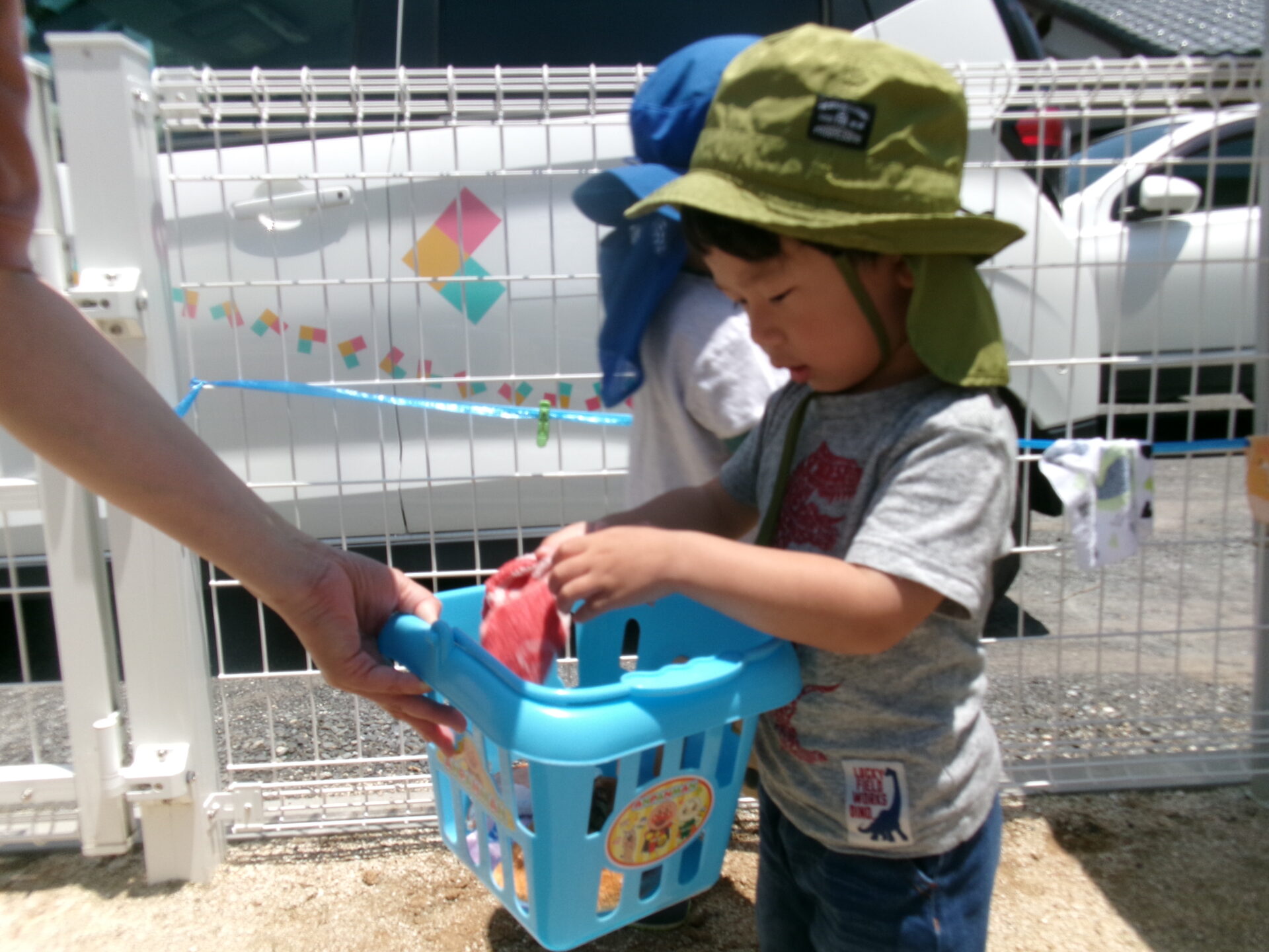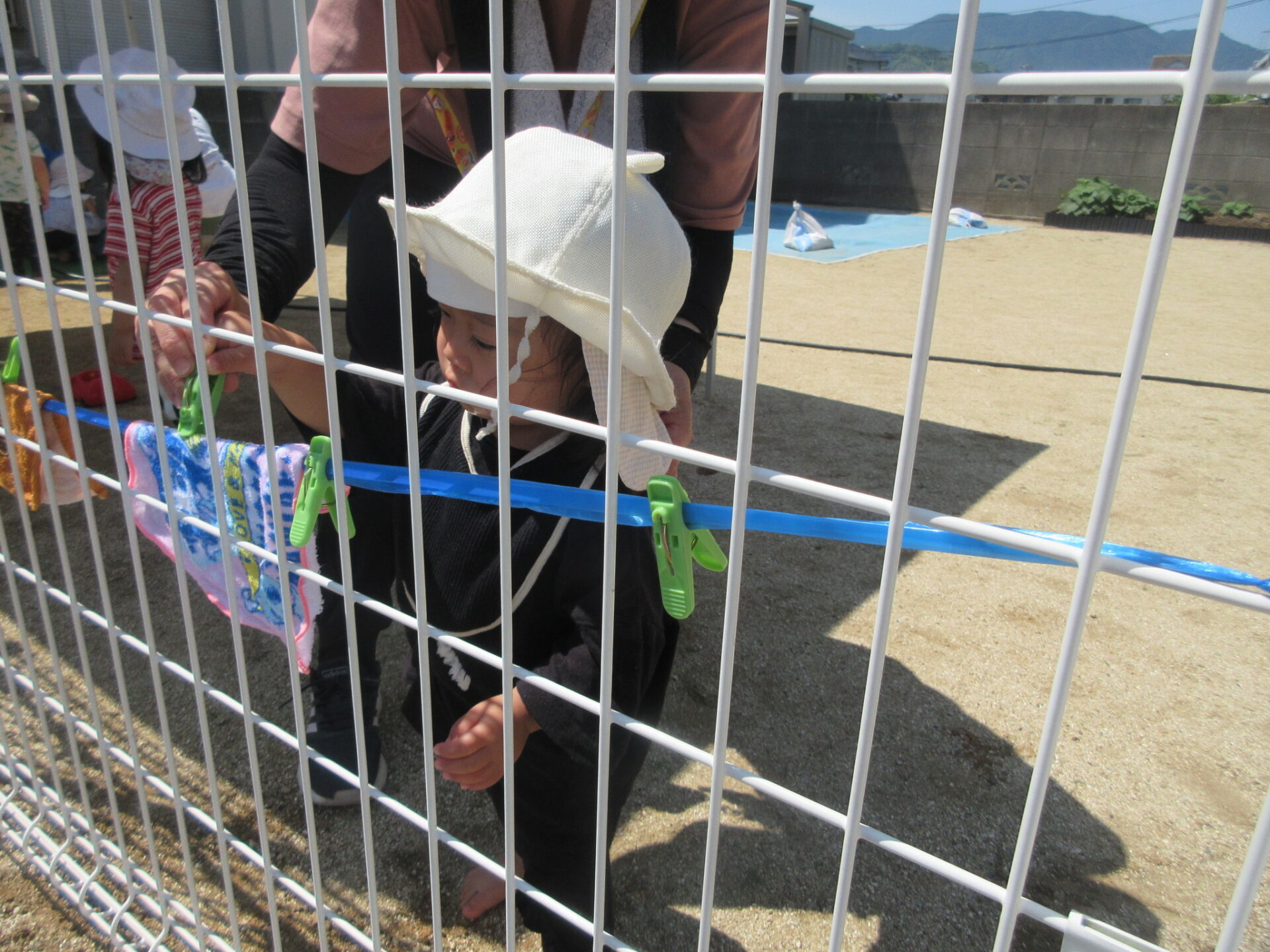 まんぼう組(2歳児)さんは洗濯ばさみで止めるのもスムーズにできましたよ。さすがですね😊