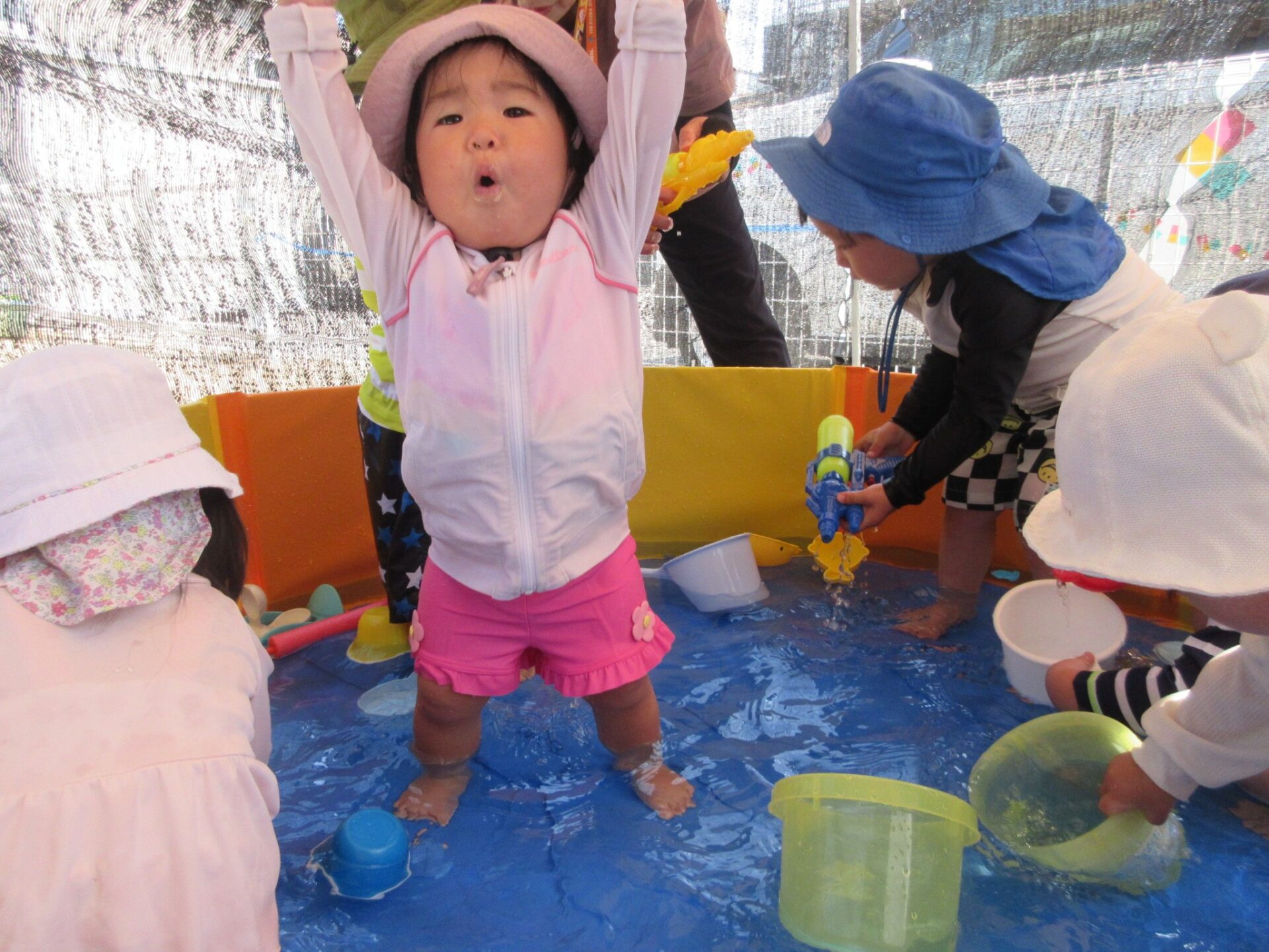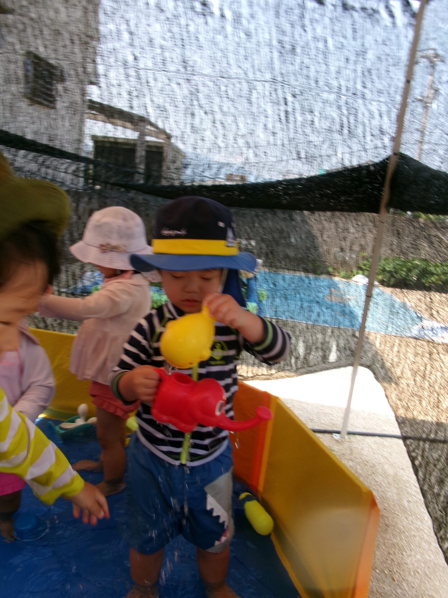 ニヤッと笑っては、水を飛ばしてきて保育者も水びたしでした(笑)