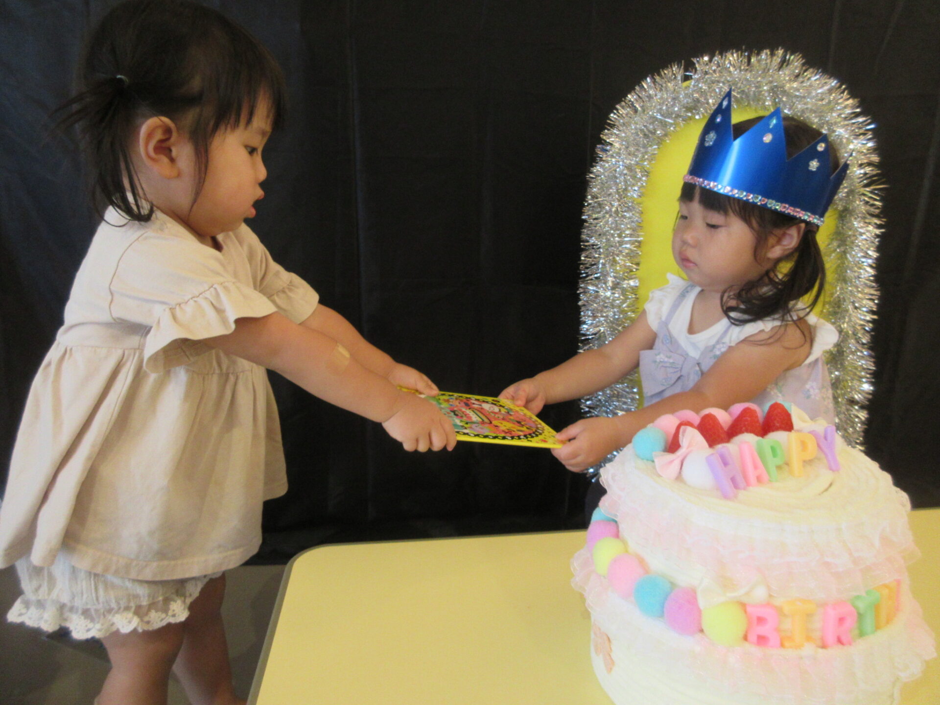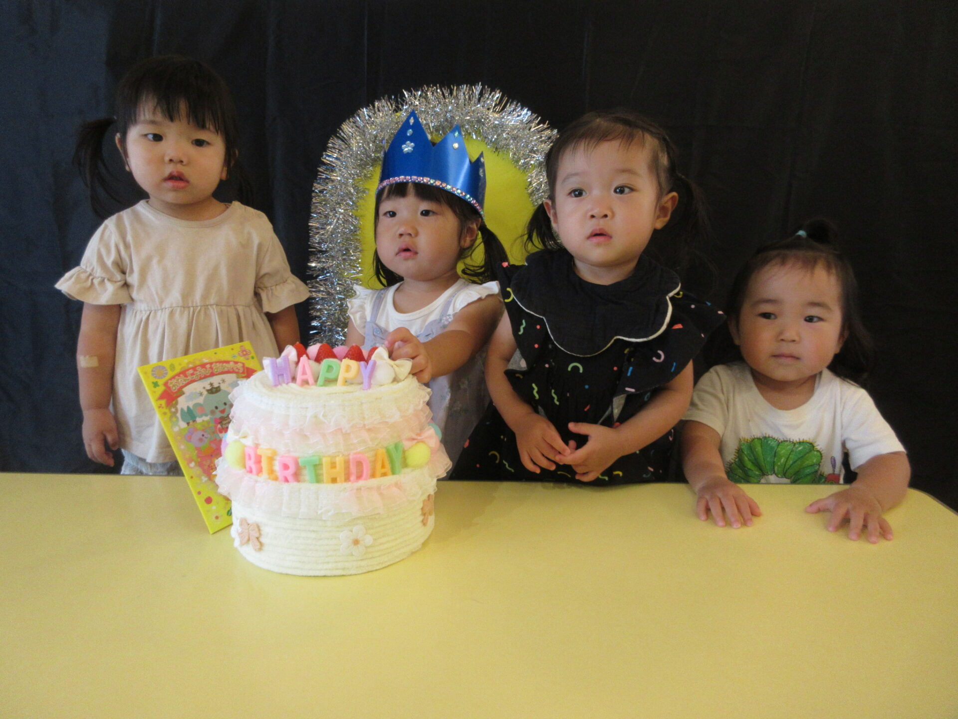 最後はそら組のお友達と写真を撮り、みんなで「ハッピーバースデー」の歌をうたうと、ニコニコしながら手拍子をしてくれて、ほっこりした時間になりました。