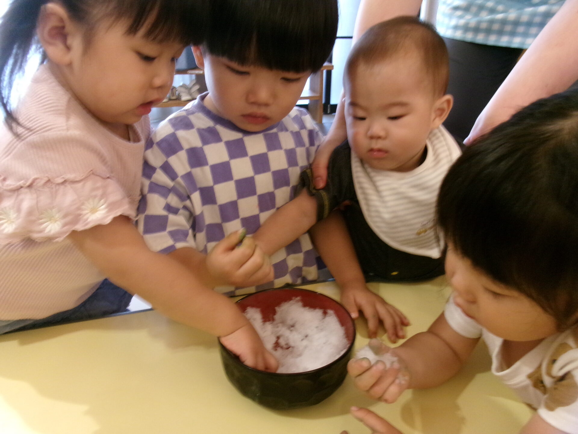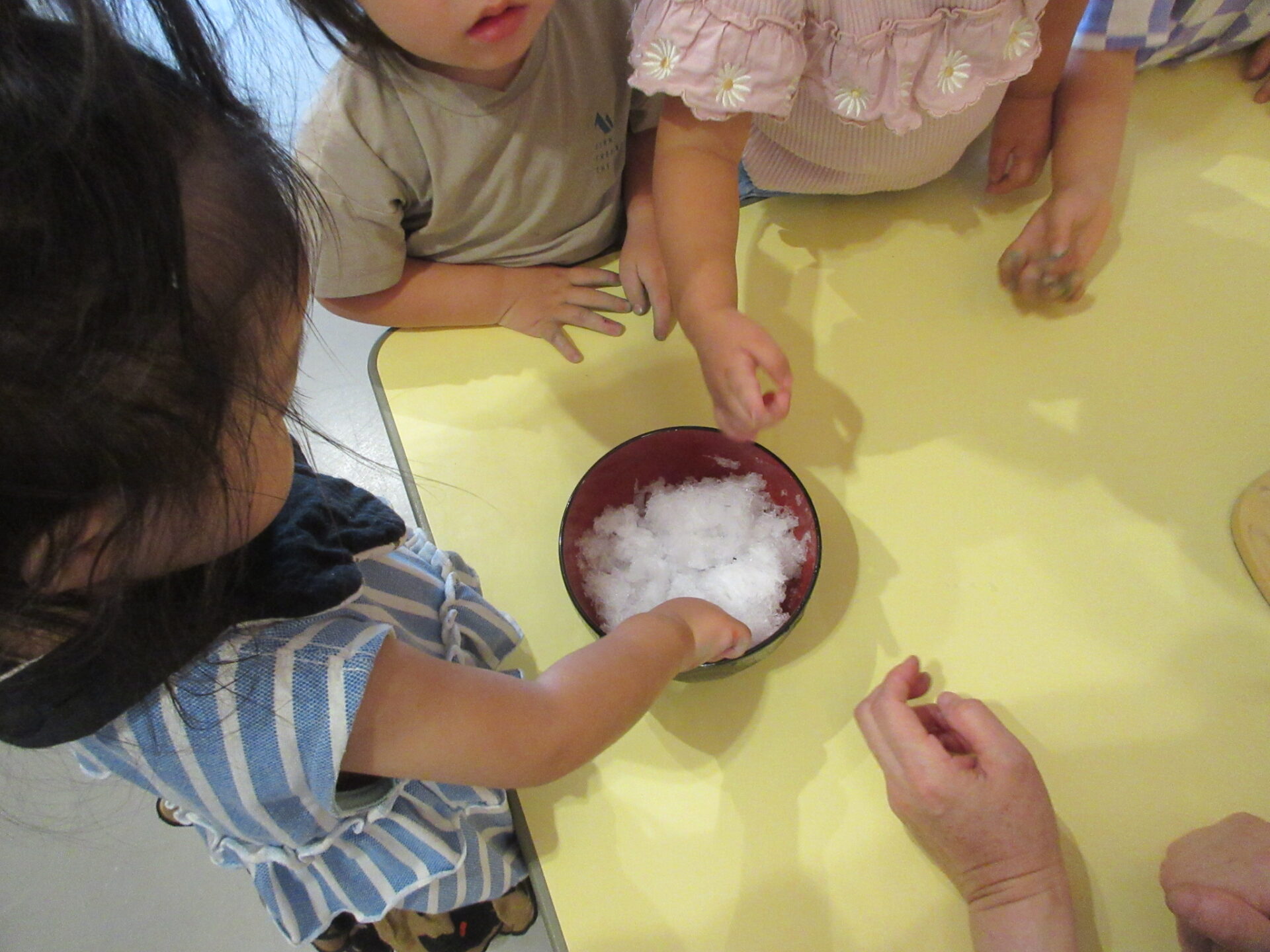 氷遊びも盛り上がり、最後は、かき氷を作ってみんなで食べました🍨