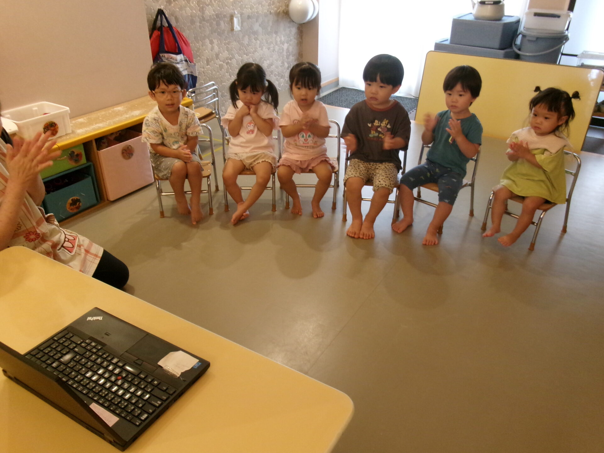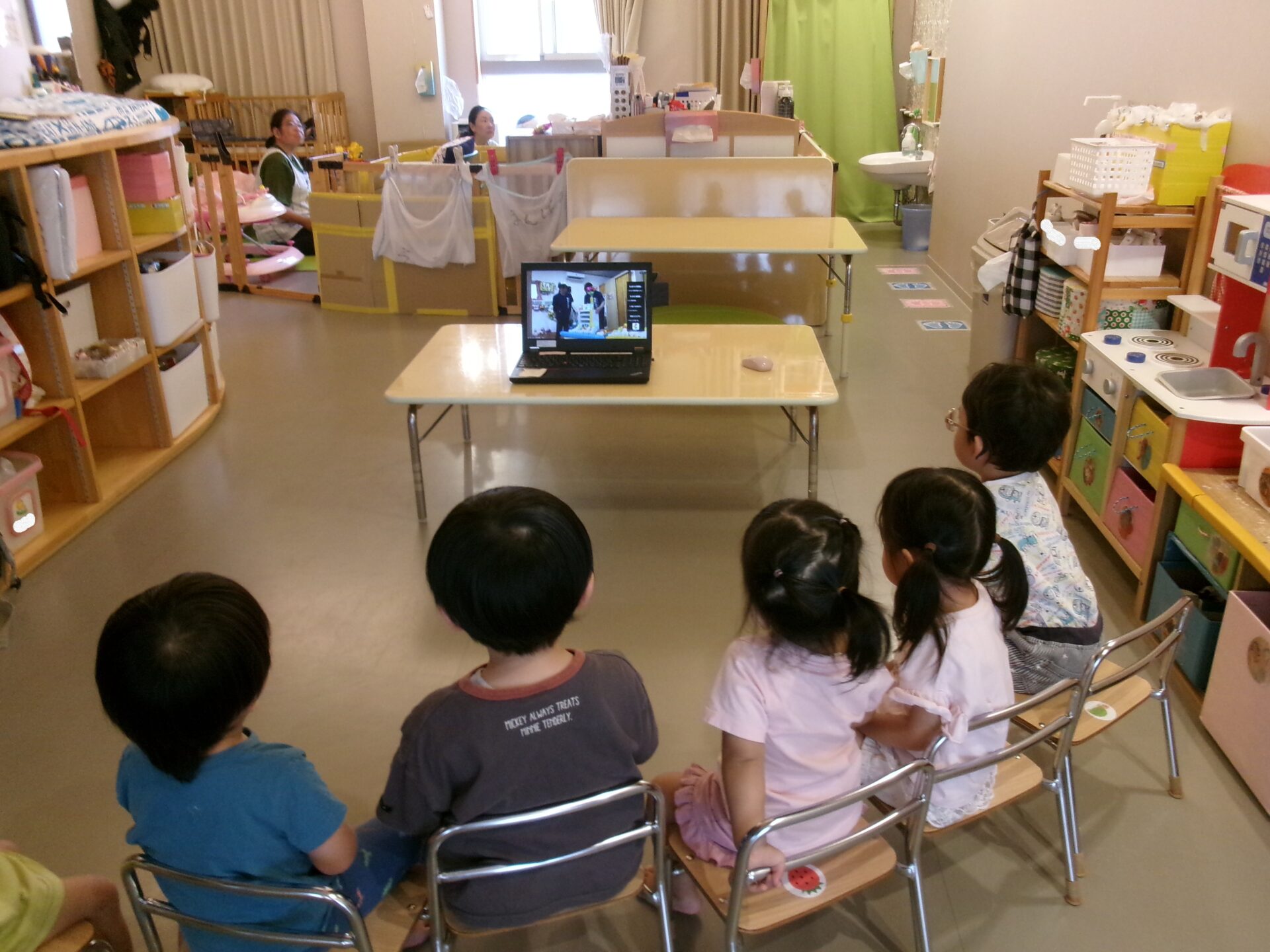 事前に、伊予ぺんぎん小規模保育園の歩みと園紹介の動画を見てから、お誕生日会に参加しました。