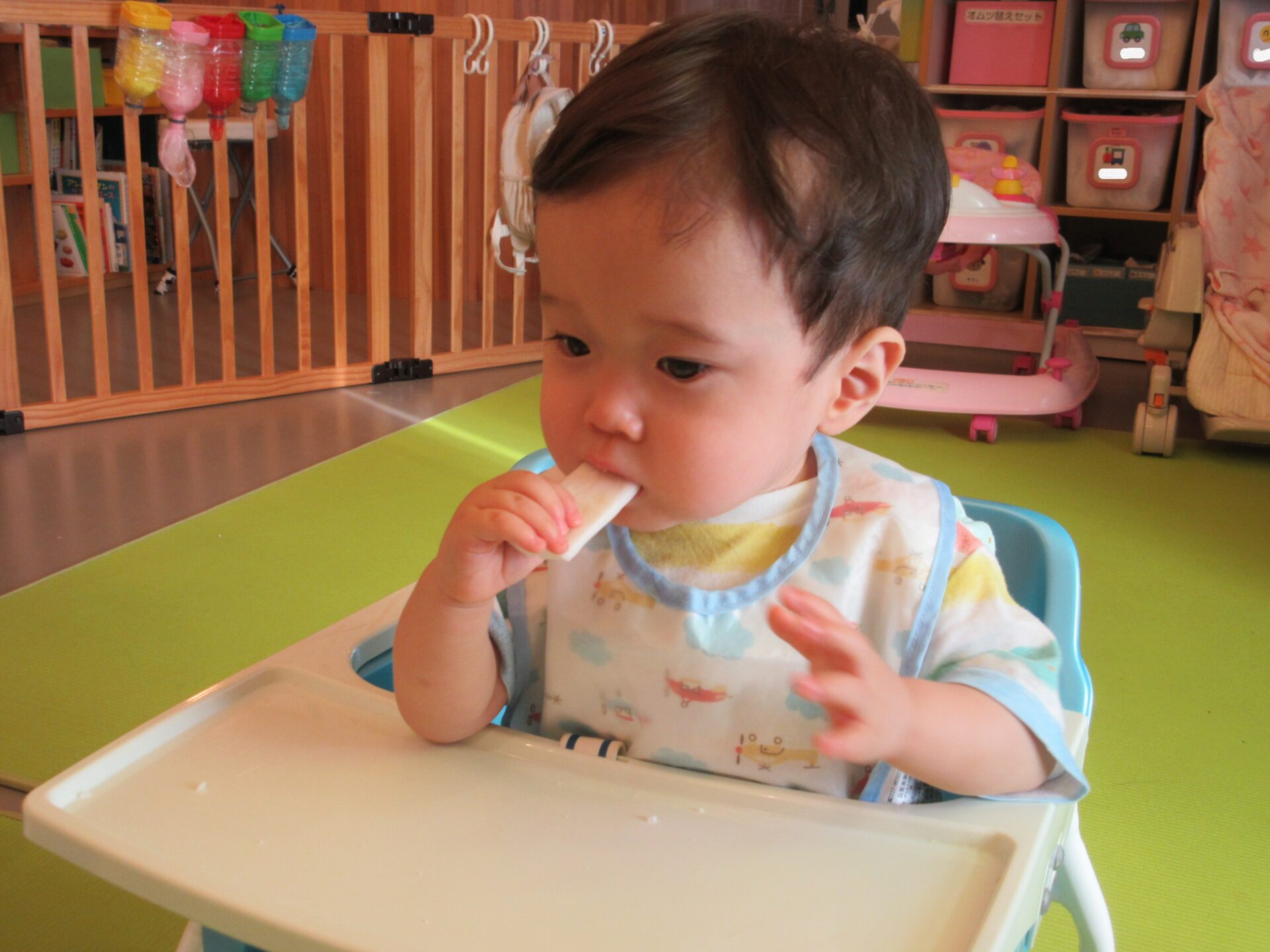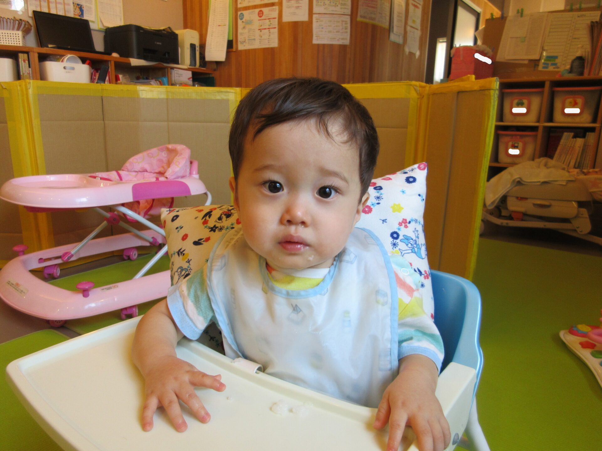 食べるのが大好きで、テーブル付き椅子に座ると、まだかまだかと待っています。