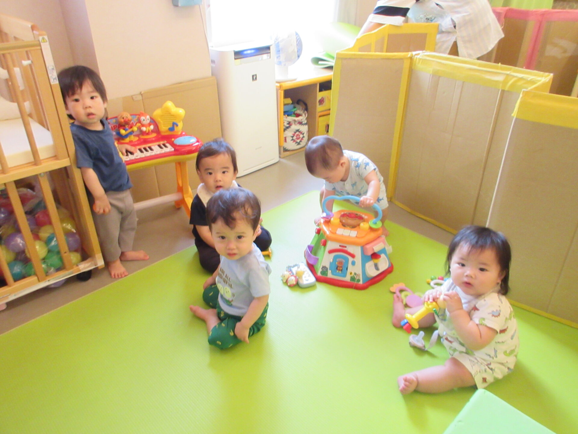 はじめての園生活は不安でいっぱいです。保護者から離れるのに泣いてしまっていましたが、大好きなおもちゃで楽しく遊べるようになりました。