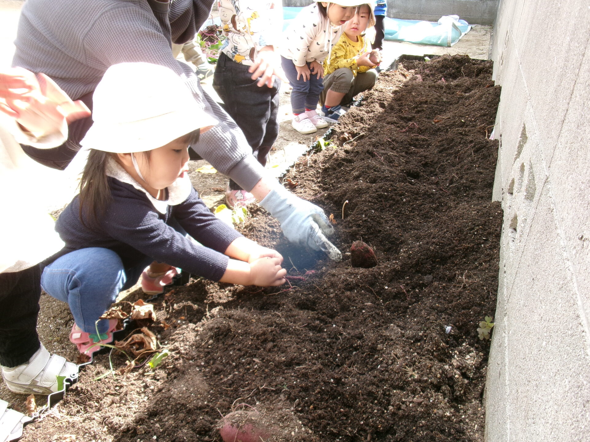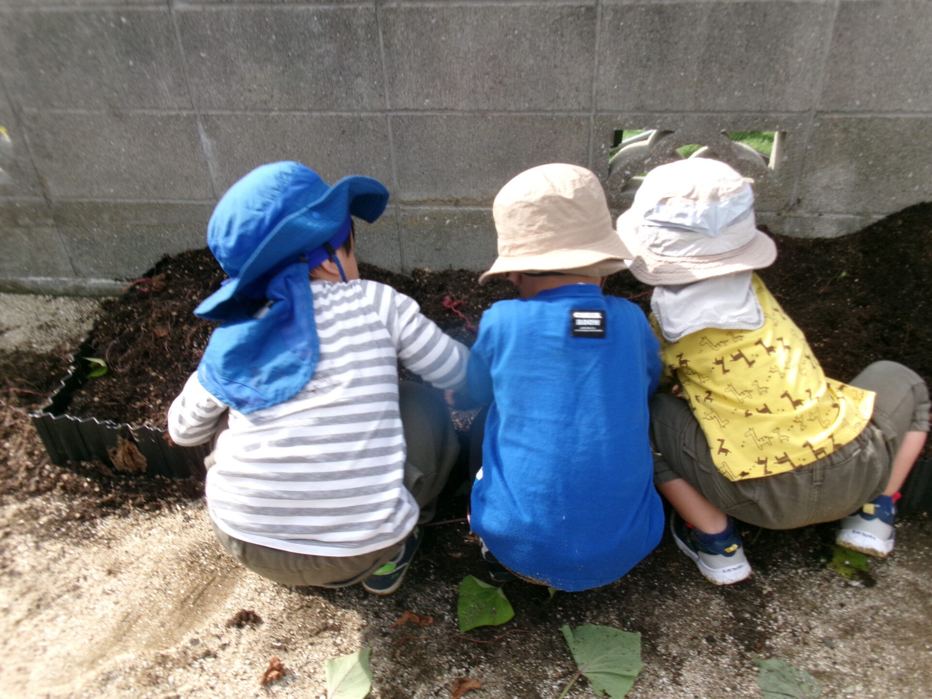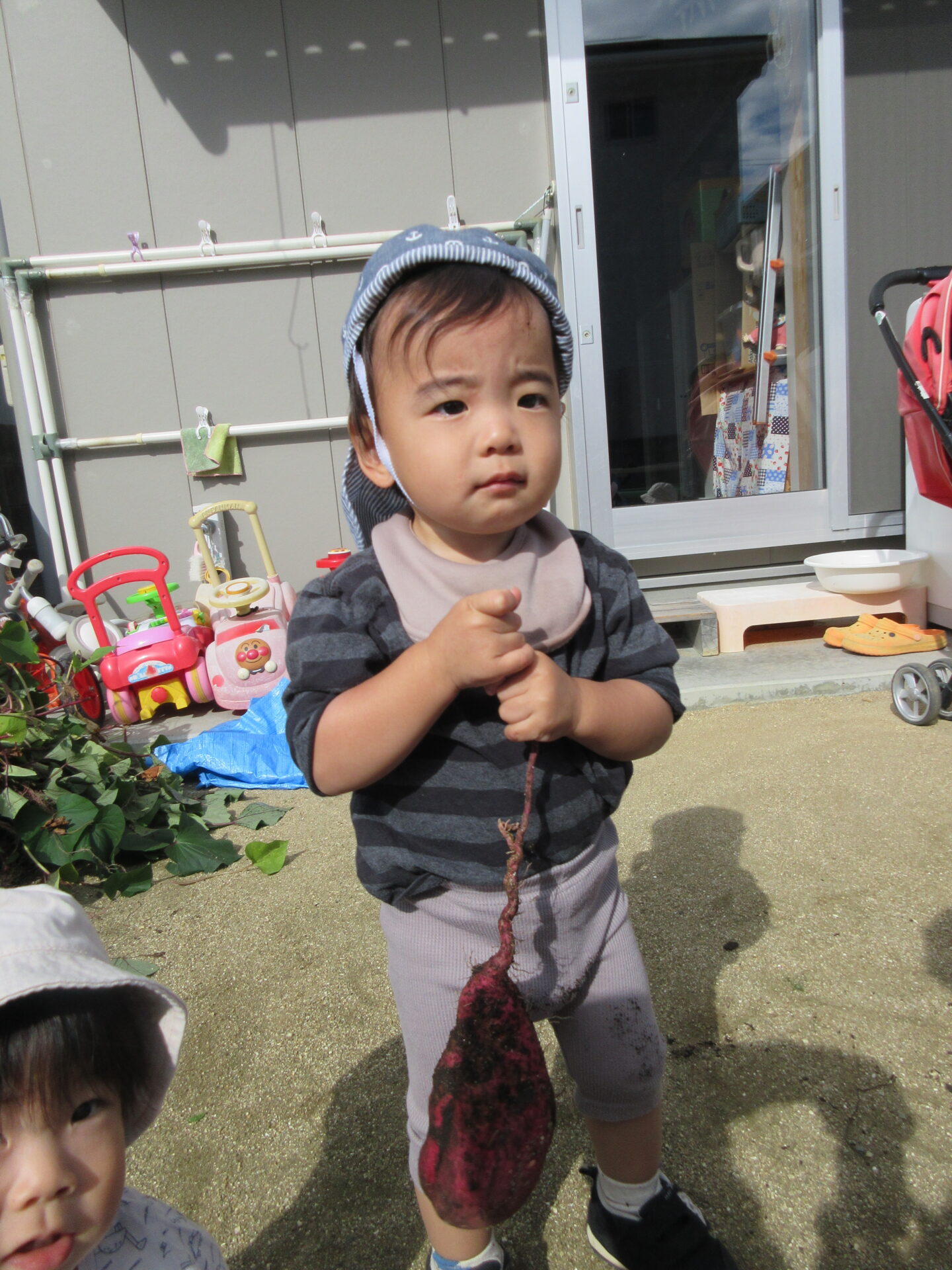 「おっき~い!!」「これ、ちっちゃ!」とそれぞれが見つけたさつまいもを見て大喜びでした😆