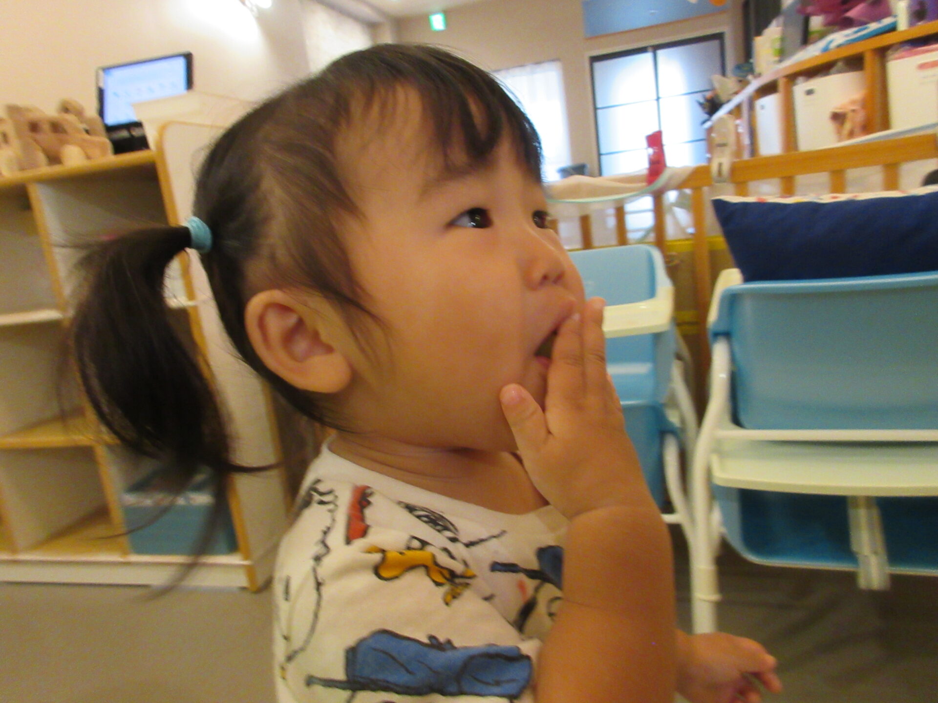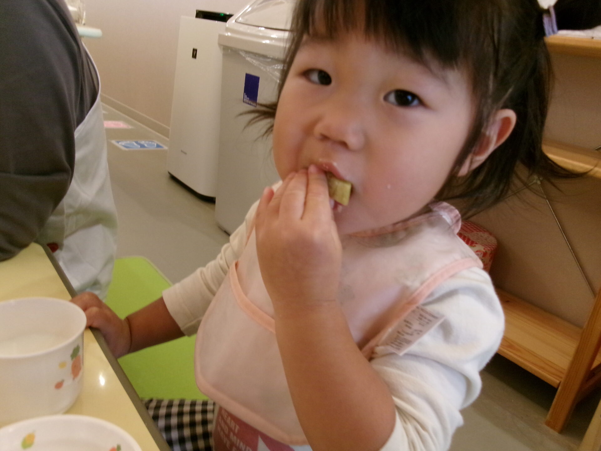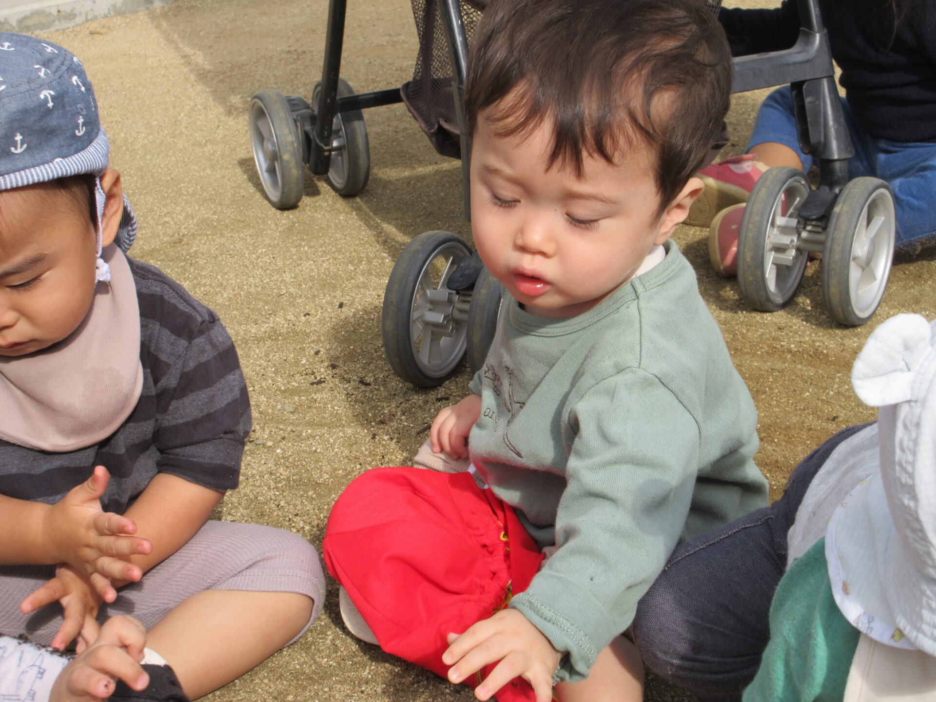 うみ組(0歳児)さんも、お芋をツンツン触って興味を示してくれました。
