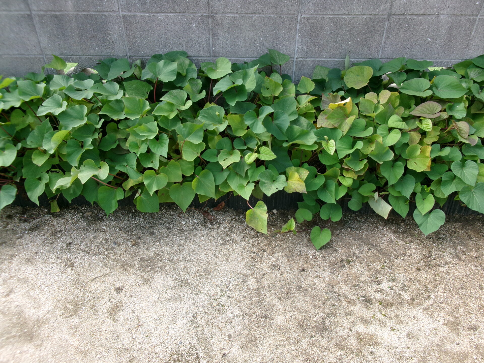 いざ外に出て、大きくなったハート型の葉っぱや葉っぱの下に隠れていたつるを実際に見てみました。