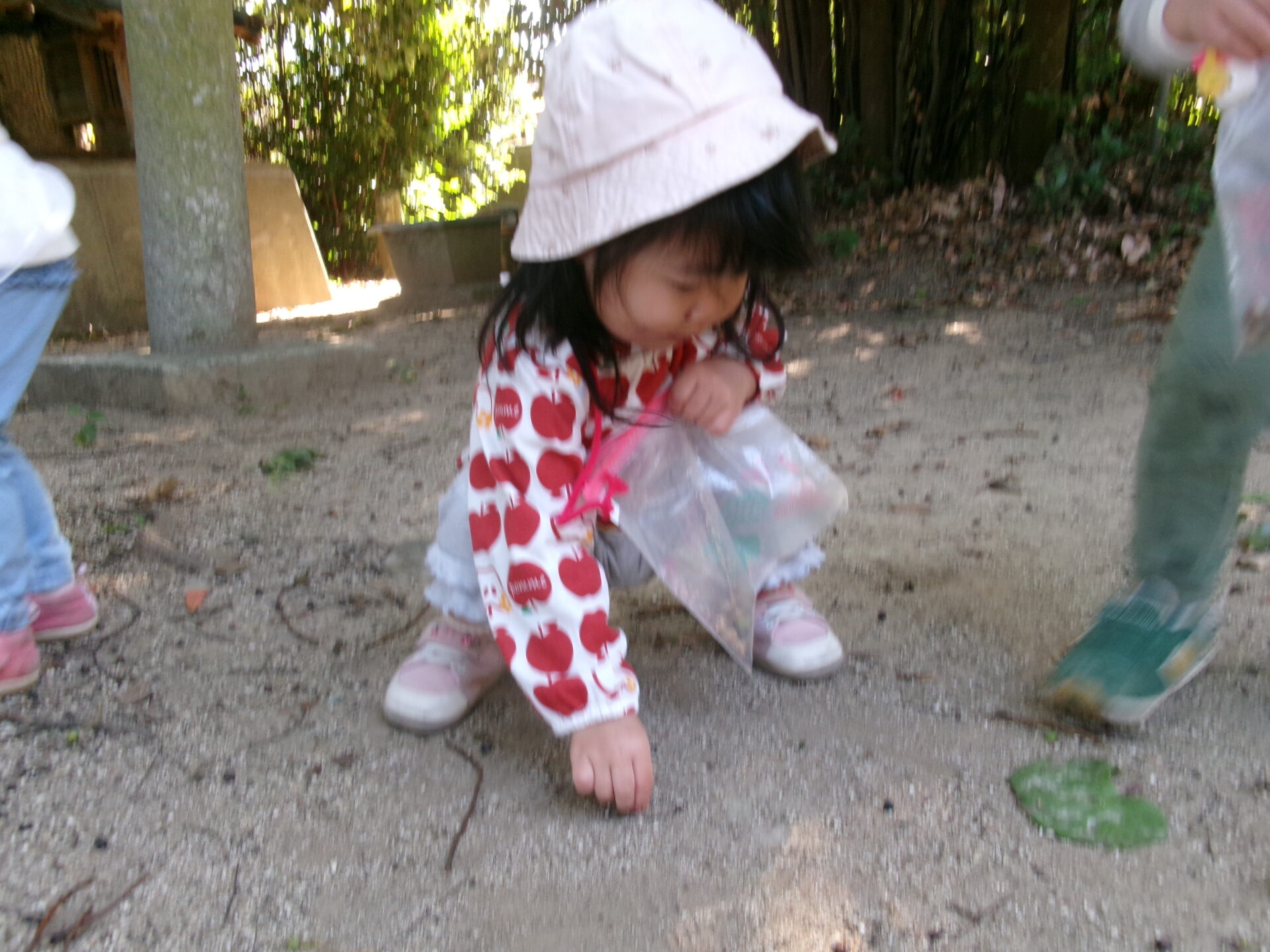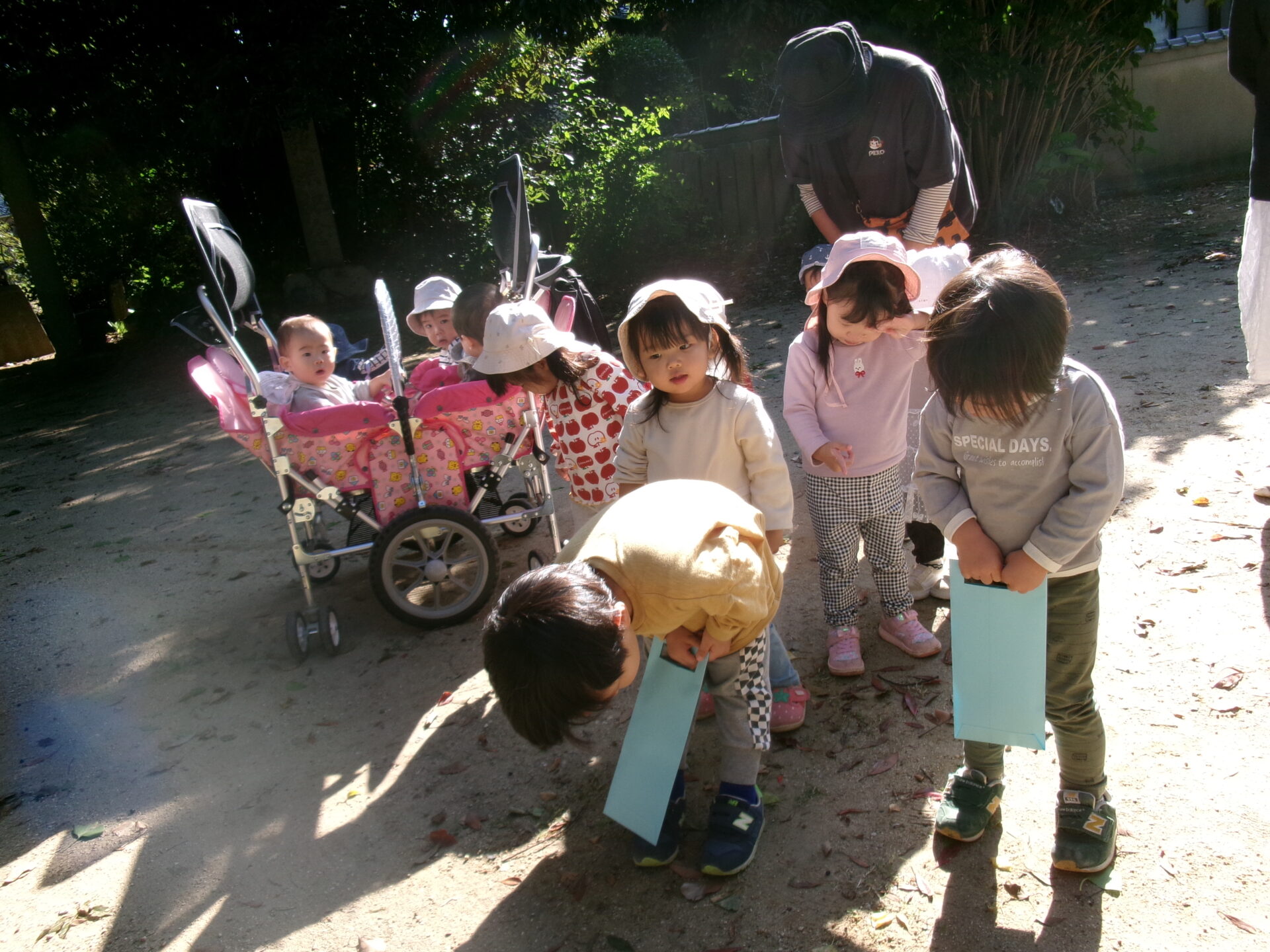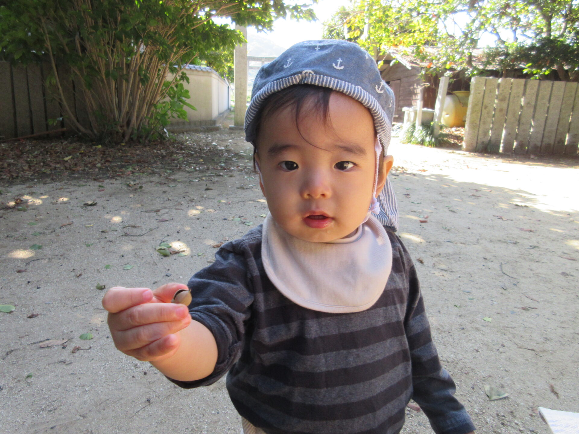 うみ組(0歳児)さんも、カートから降りてどんぐりを探していましたよ😊
