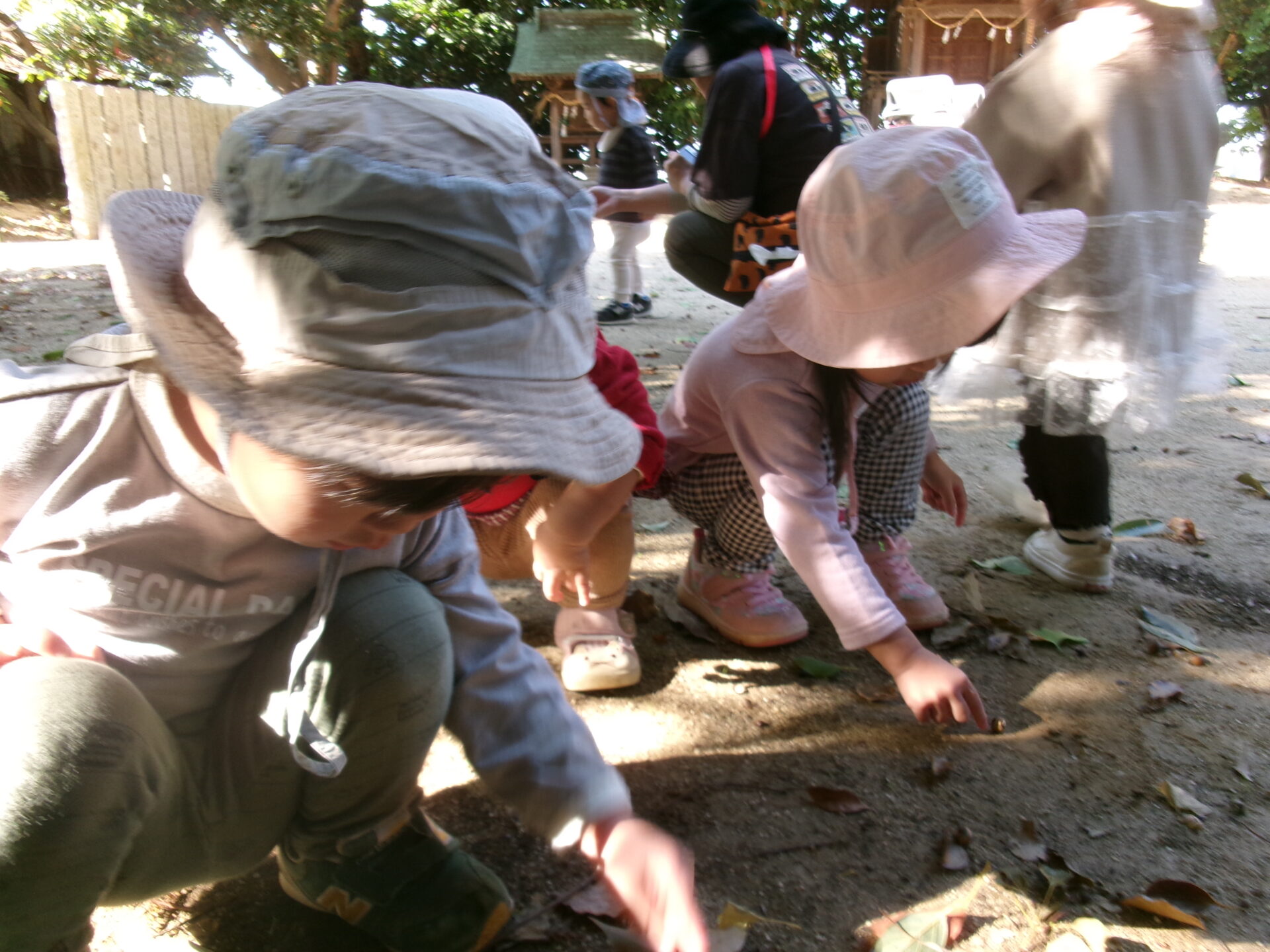 小さなどんぐりでしたが、たくさん落ちていて、「これ見て!!」「ここにもあった!!」と子どもたちも夢中で拾っていました。