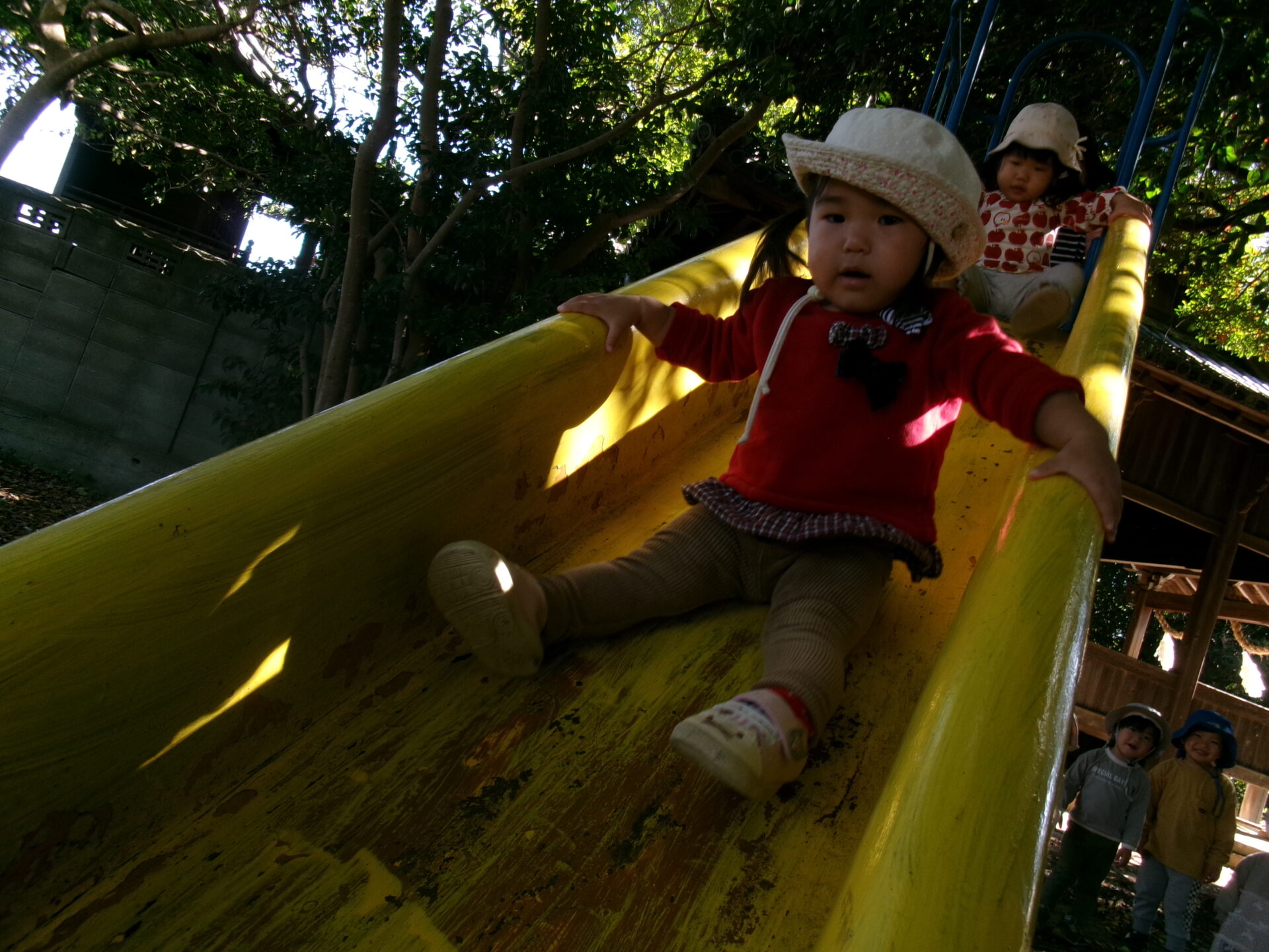 少し高めのすべり台ですが、怖がらずにどんどん階段を上がってくるくらいすべり台がしたくてたまらない子どもたち。