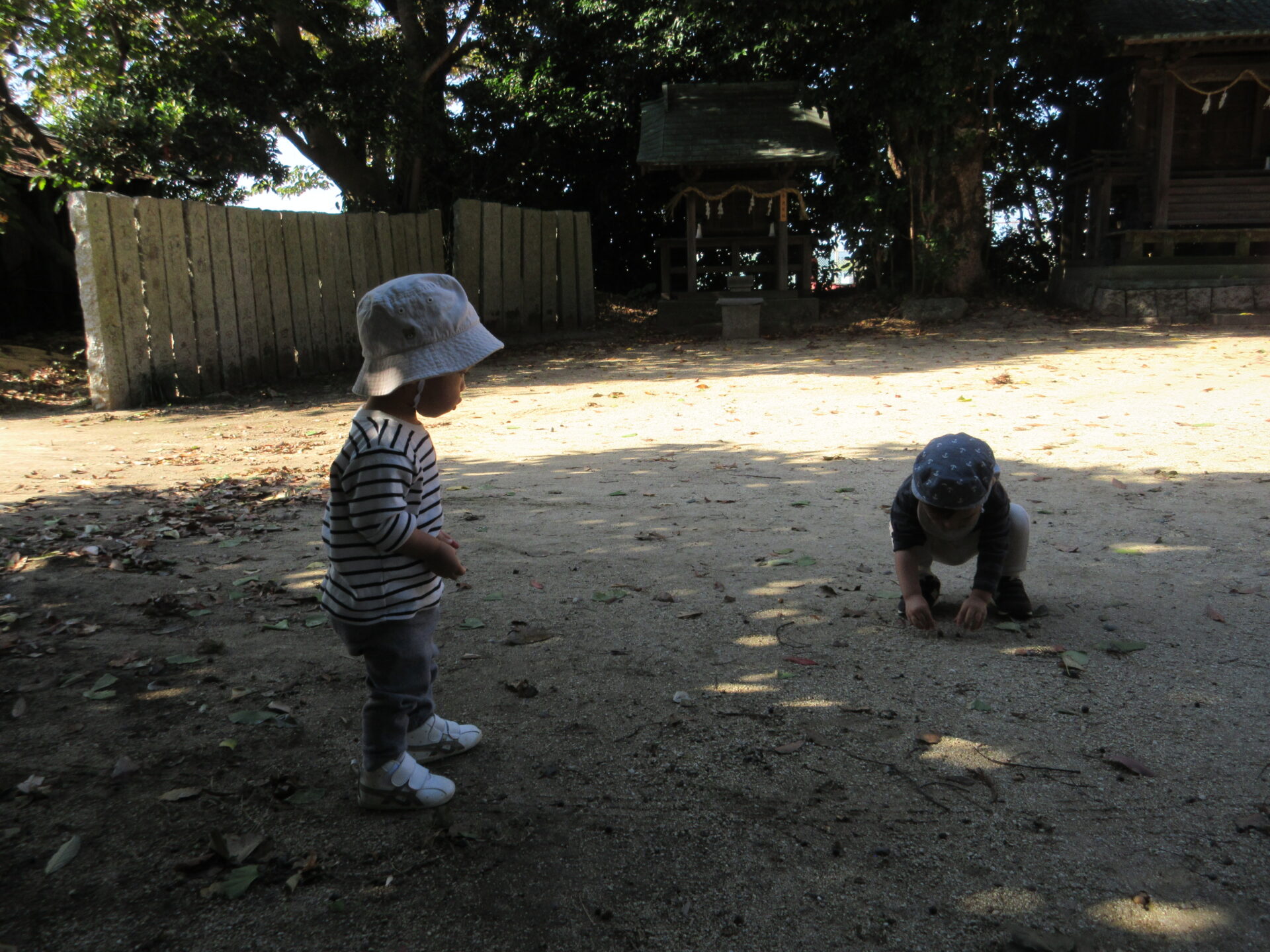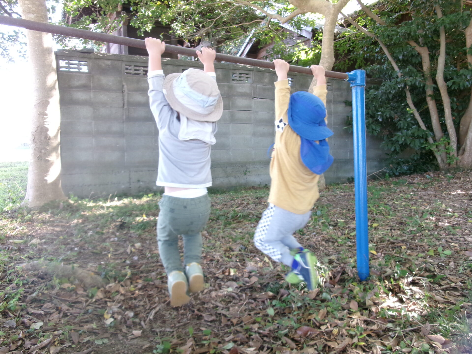 山崎神社には、すべり台や鉄棒もあるので、そこでも遊びました。