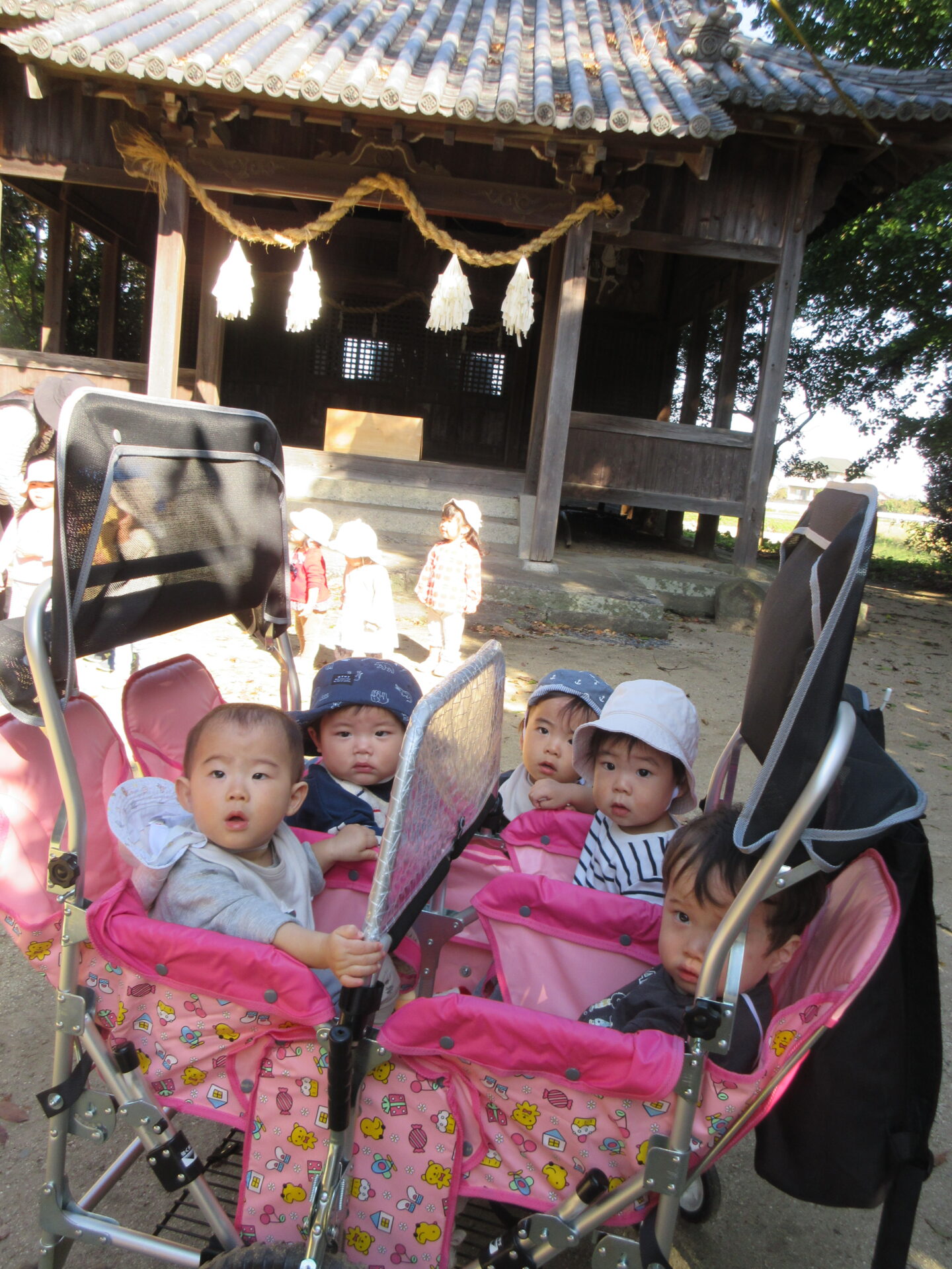 そこで、まんぼう組さんの七五三の参拝をしに、近くの山崎神社にみんなで行きました。