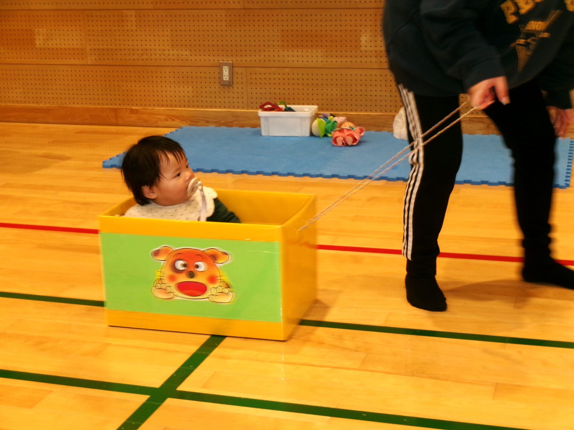 うみ組さんは、歩いたり箱に乗って引っ張ってもらったりしながら、進んでいきます。
