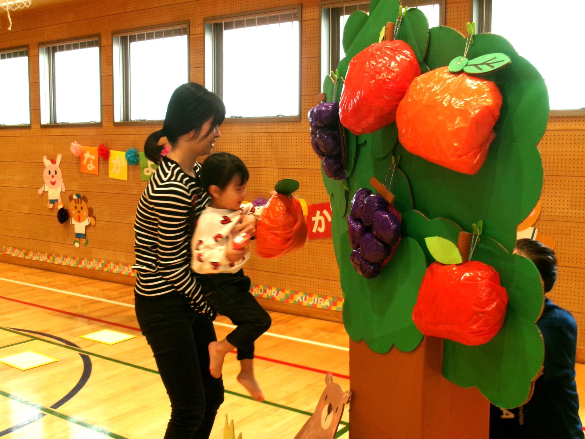 おうちの人に抱っこしてもらい、大きなくだものを運ぶ姿がかわいかったです❣️