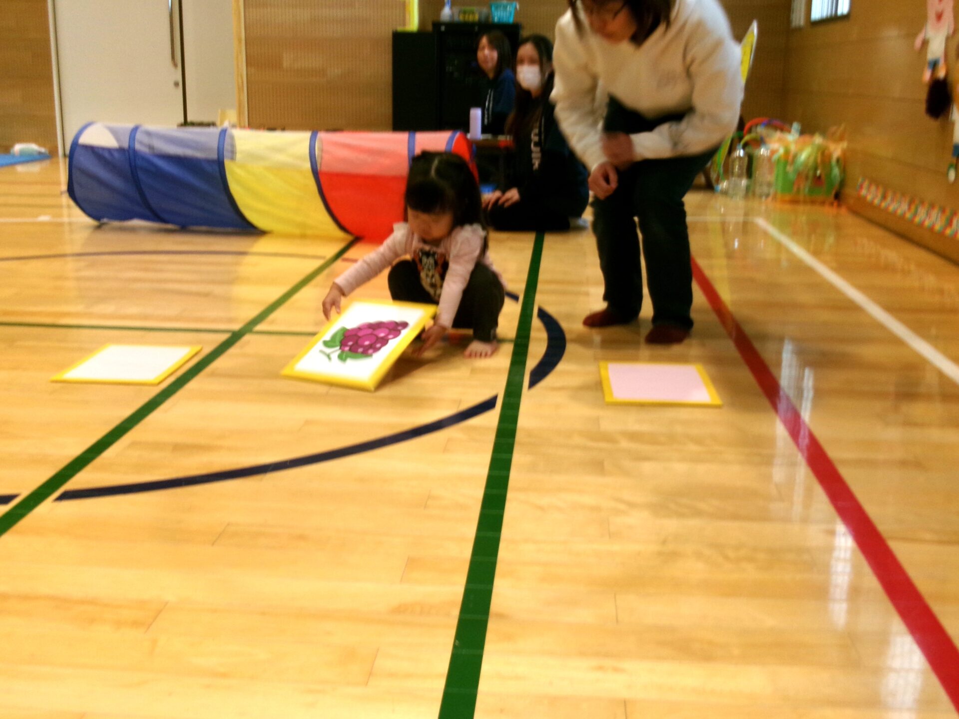 そら組さんは、平均台を渡りトンネルをくぐり、カードをめくります。
