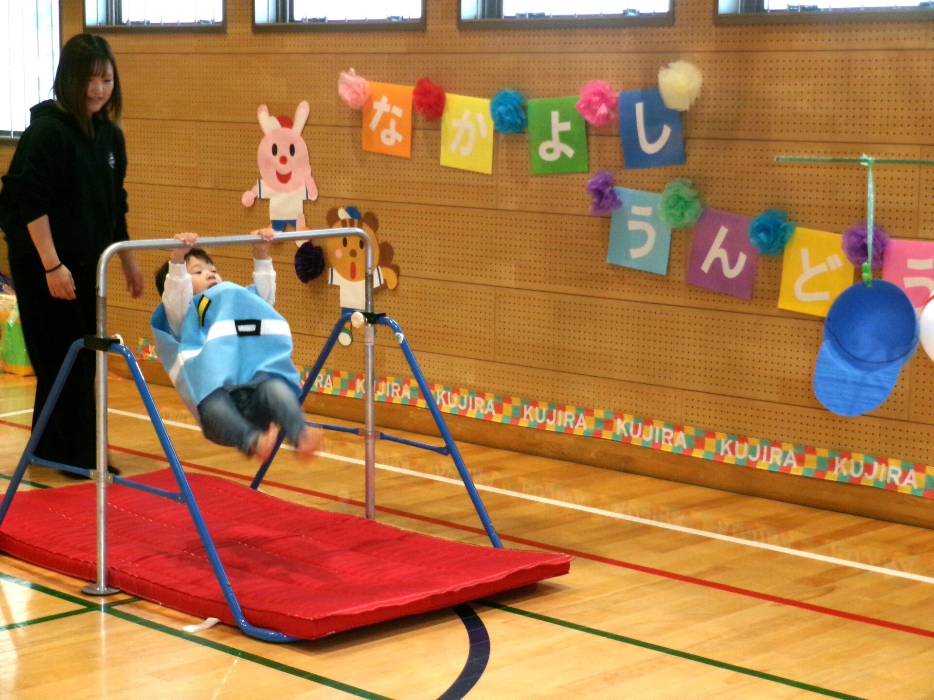 着替えたり、帽子をかぶったり、ぶら下がる、両足飛びなどできるようになったかっこいい姿を見てもらうことができました😄