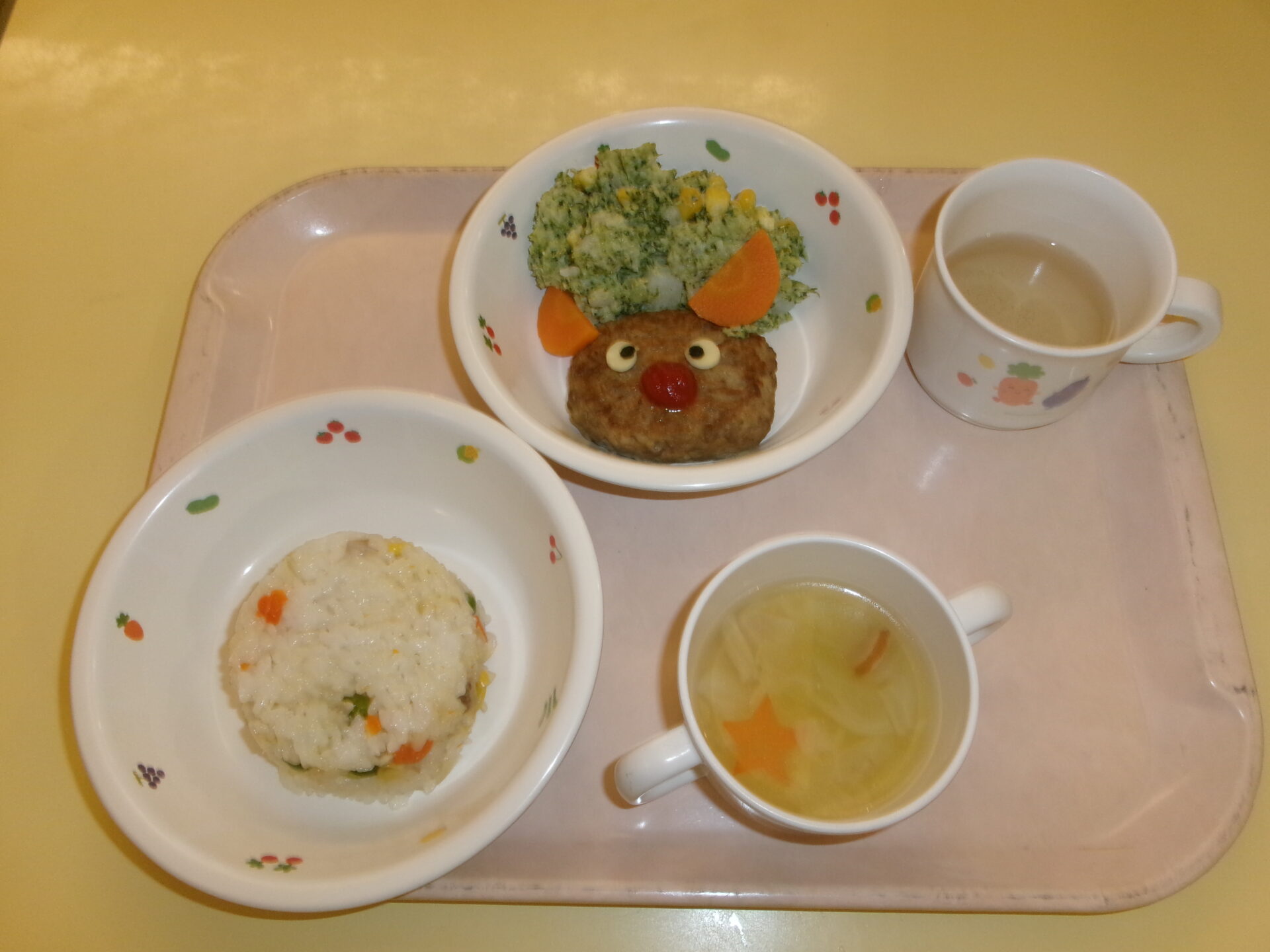 かわいいトナカイハンバーグ、子どもたちは大喜びでいただきました。