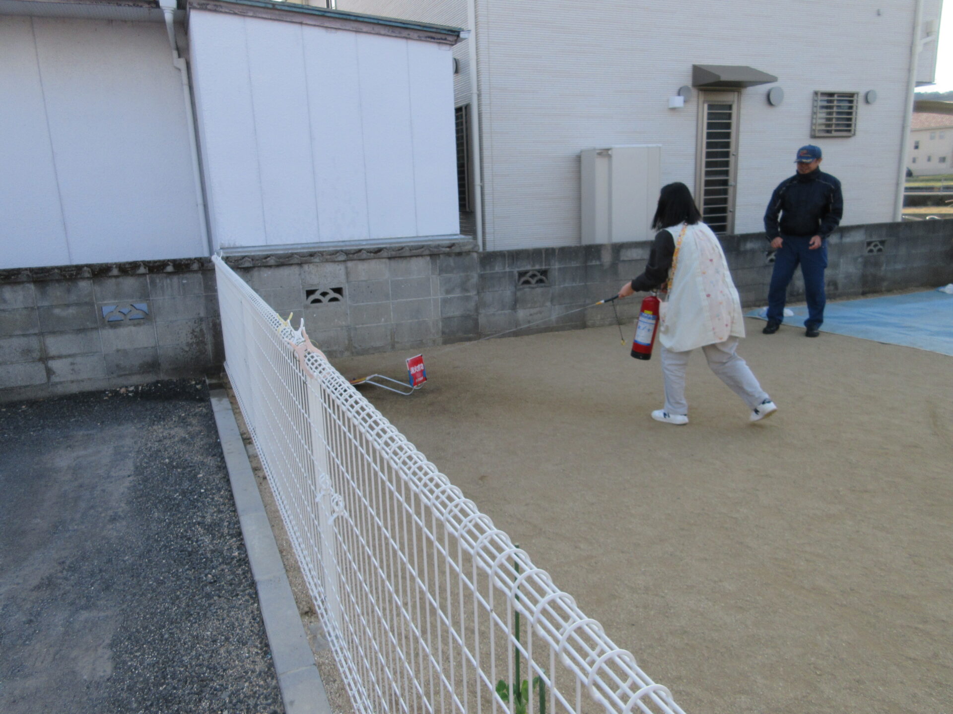 職員全員で、実際に消火訓練もしました。