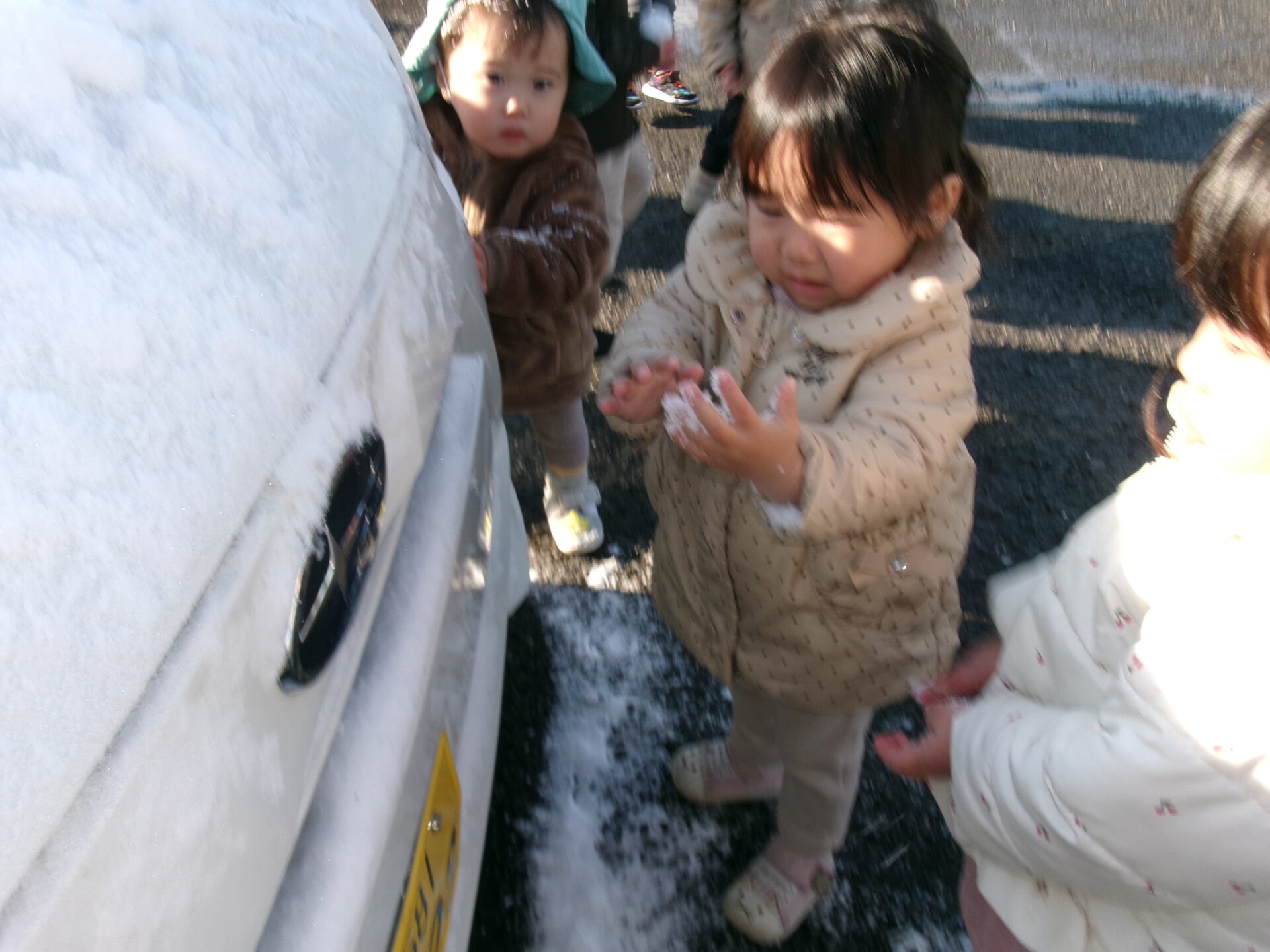 園庭に行くと、真っ白になっていて、子どもたちも「わぁ」と、いつもと違う園庭を見ていました。
