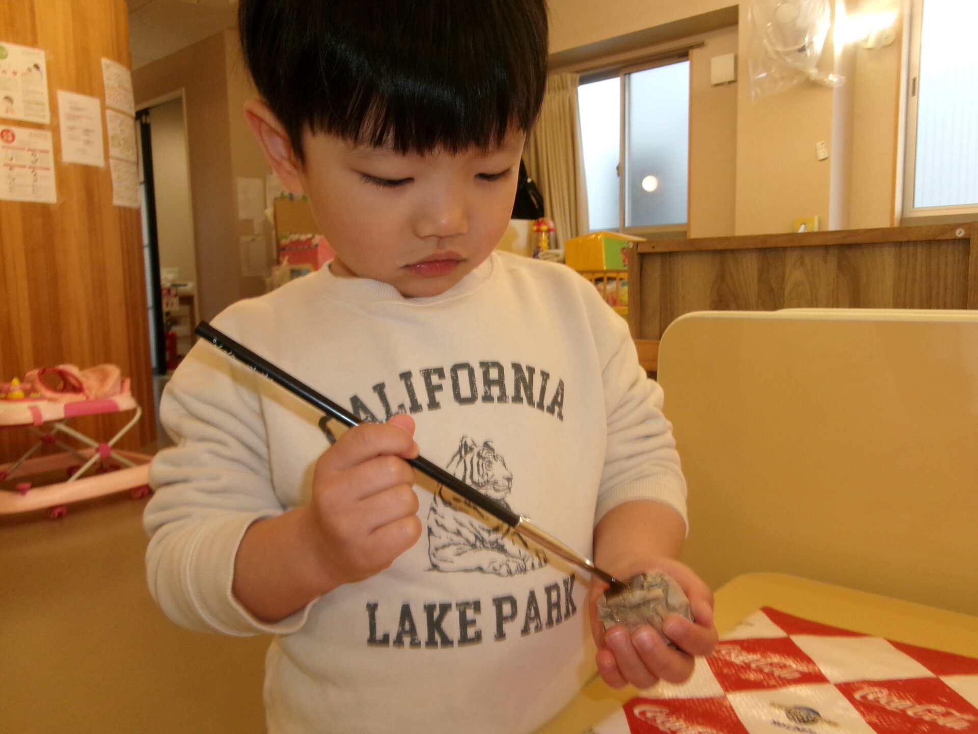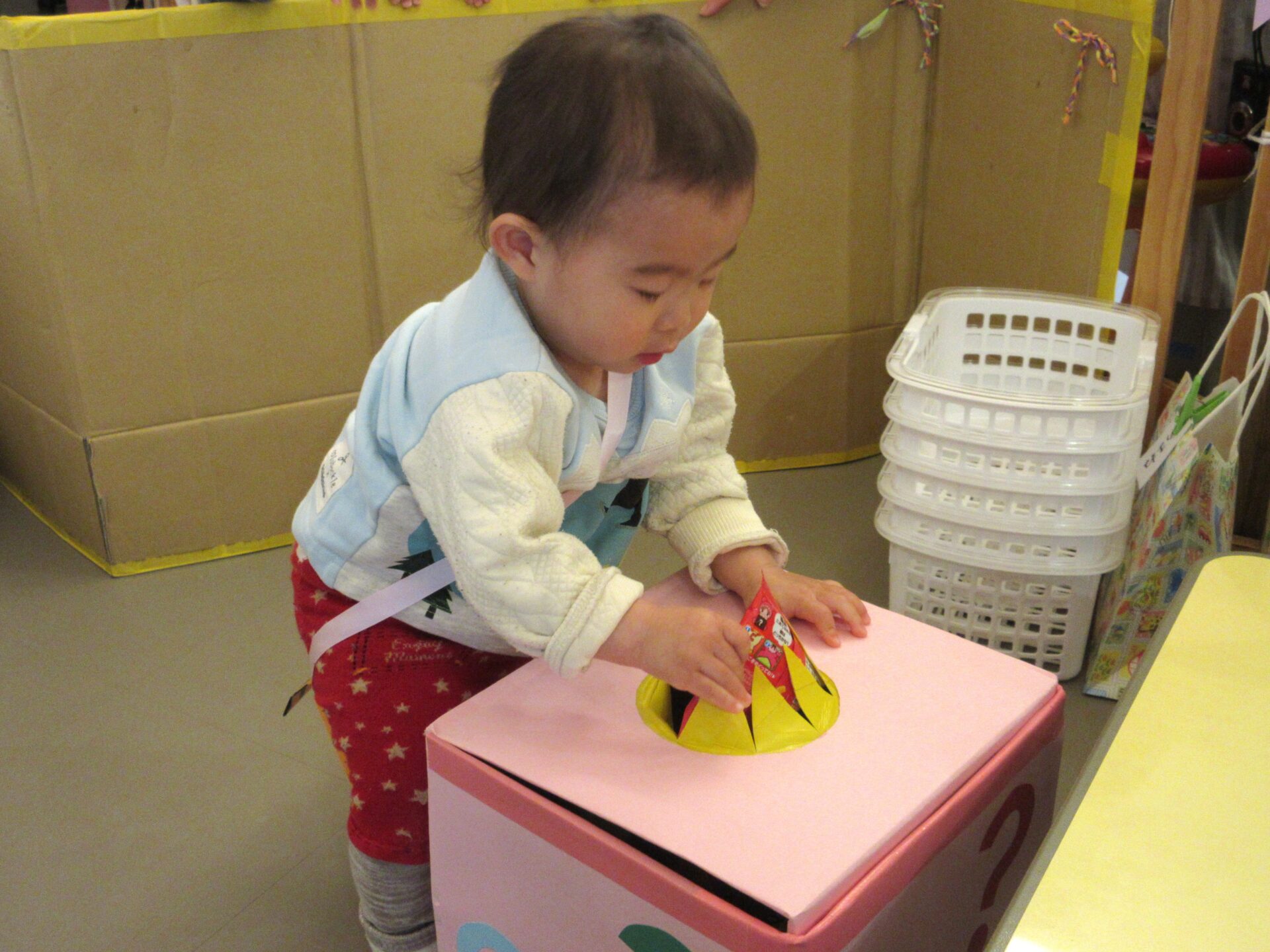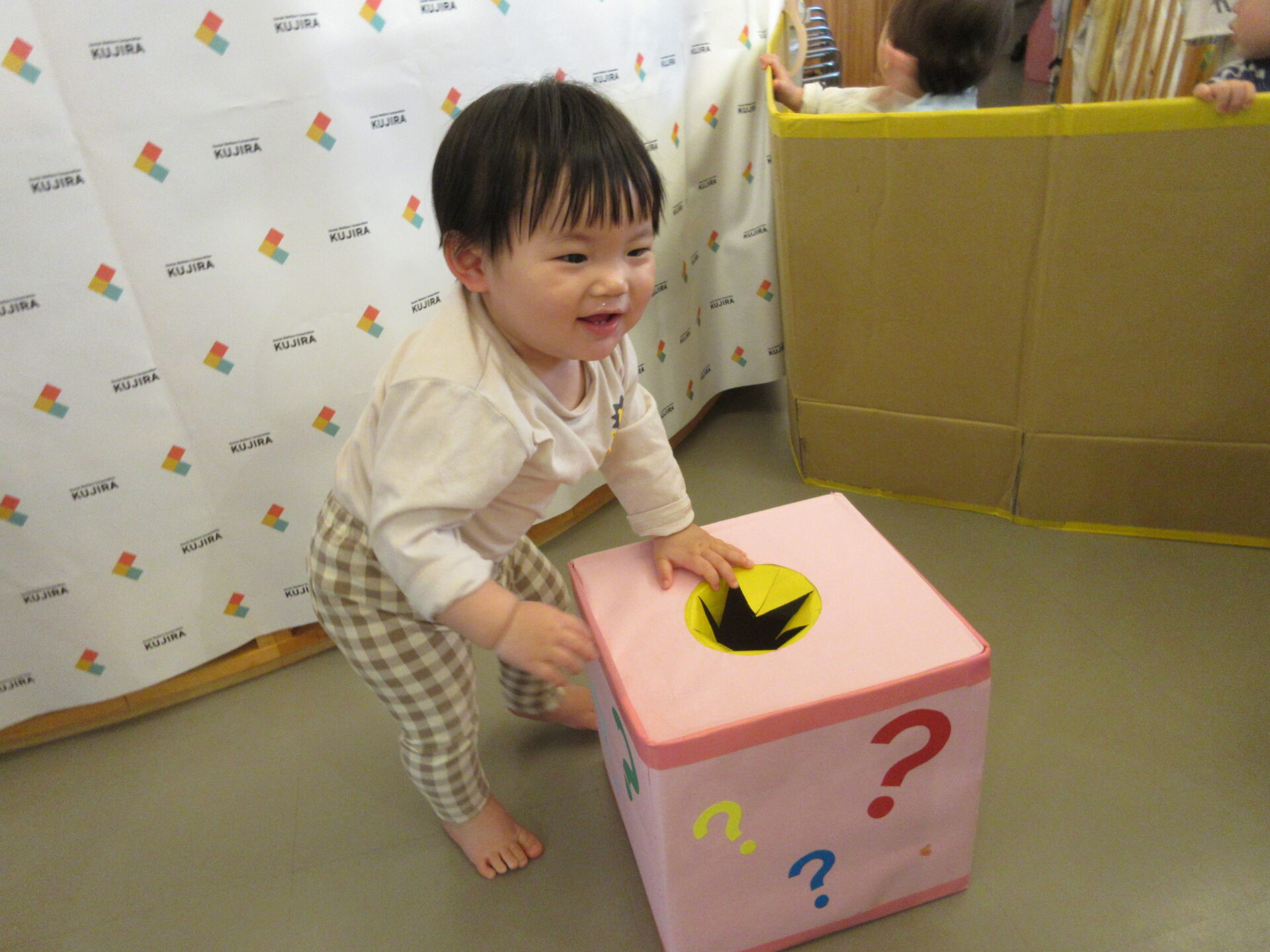 お楽しみボックスに手を入れて、良い物をもらって嬉しそうでした。