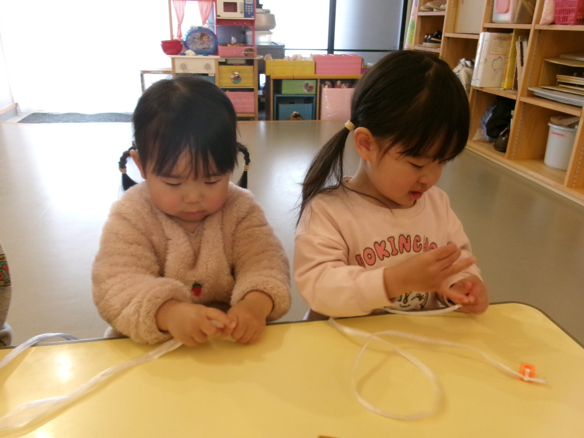 お買い物ごっこ②では、そら組(1歳児)、まんぼう組(2歳児)の様子をお伝えします。