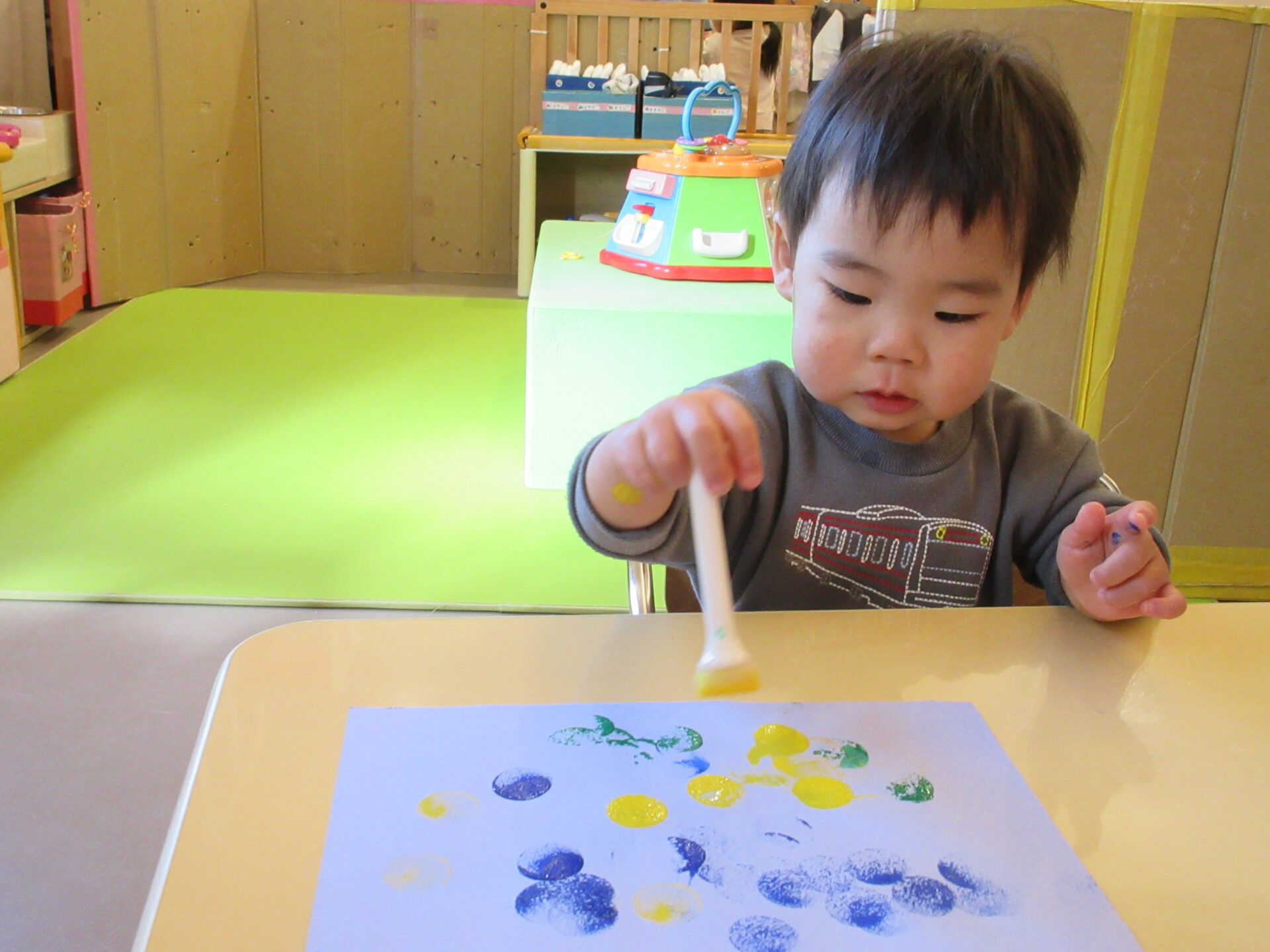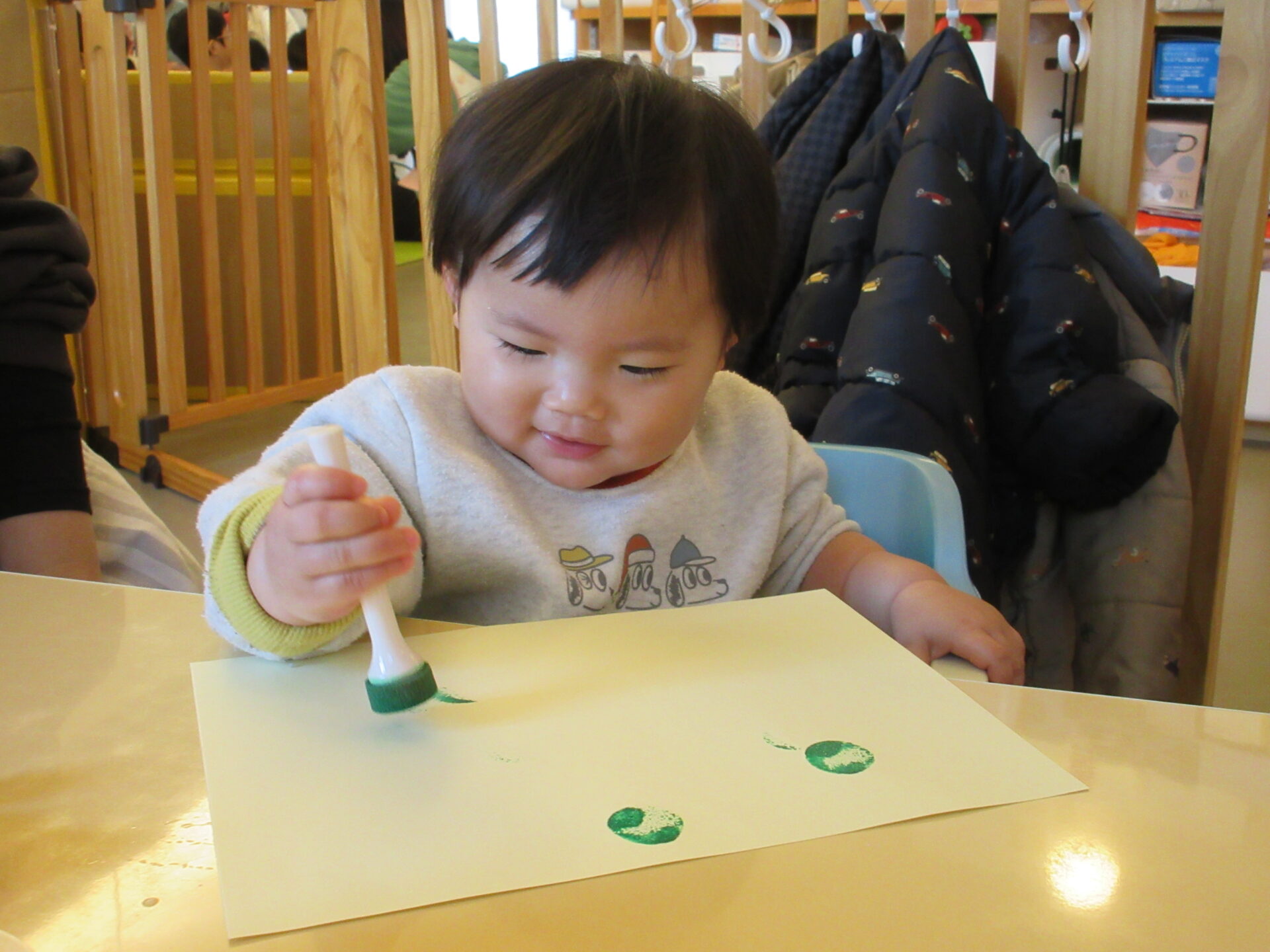 友だちが買い物をいている間、他のうみ組(0歳児)のお友だちは、どんな様子か見ていましたよ。