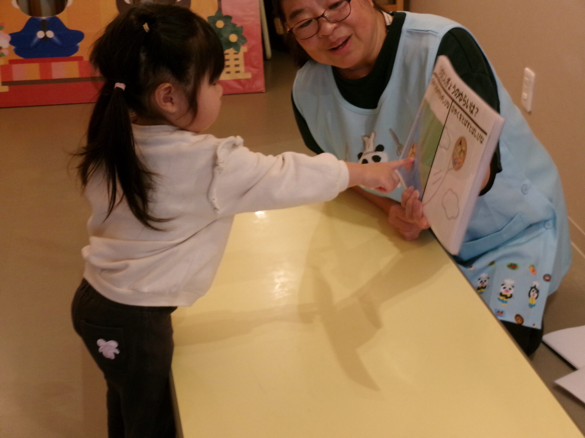 「これ、わかる人?」とたずねると「はーい」と手をあげてくれました。